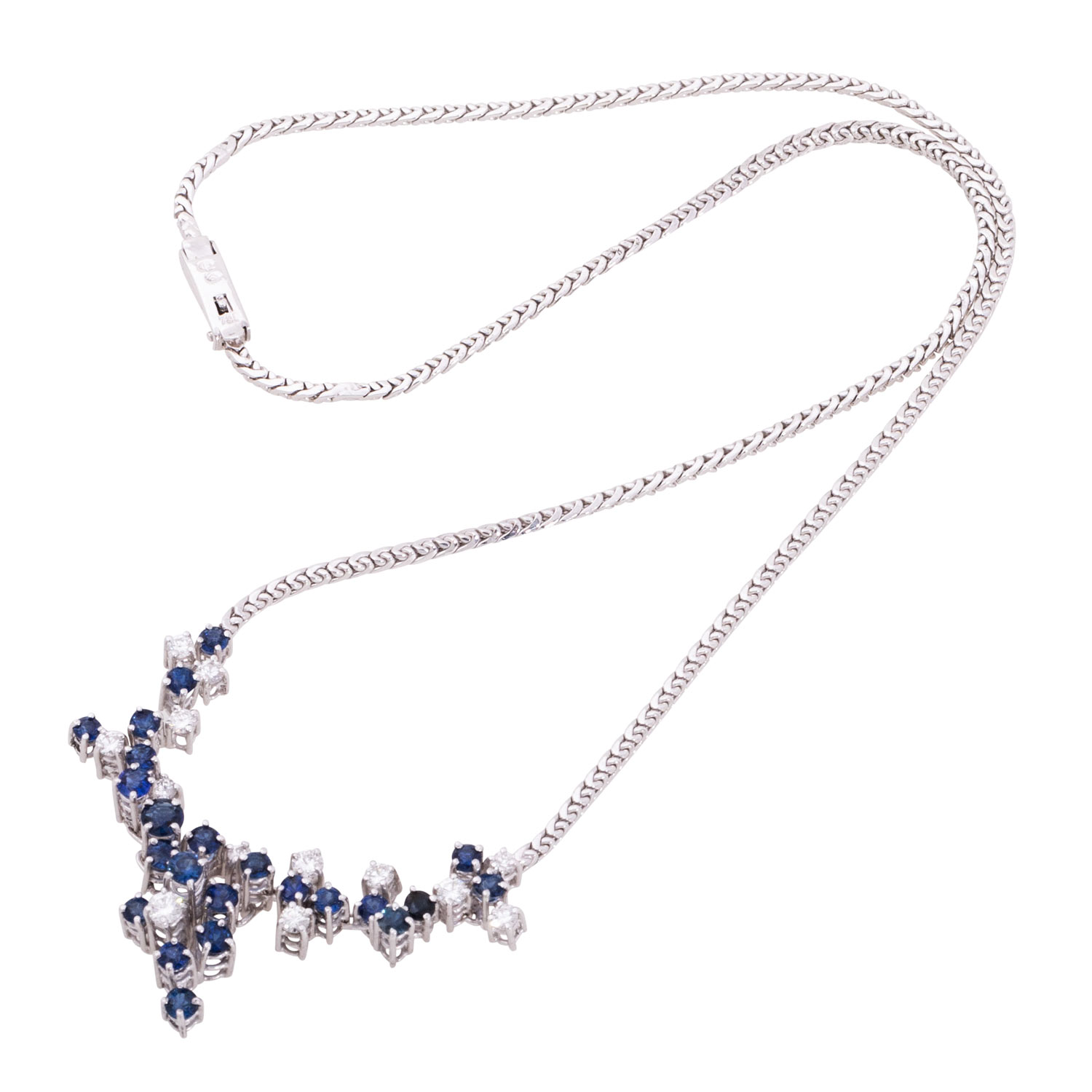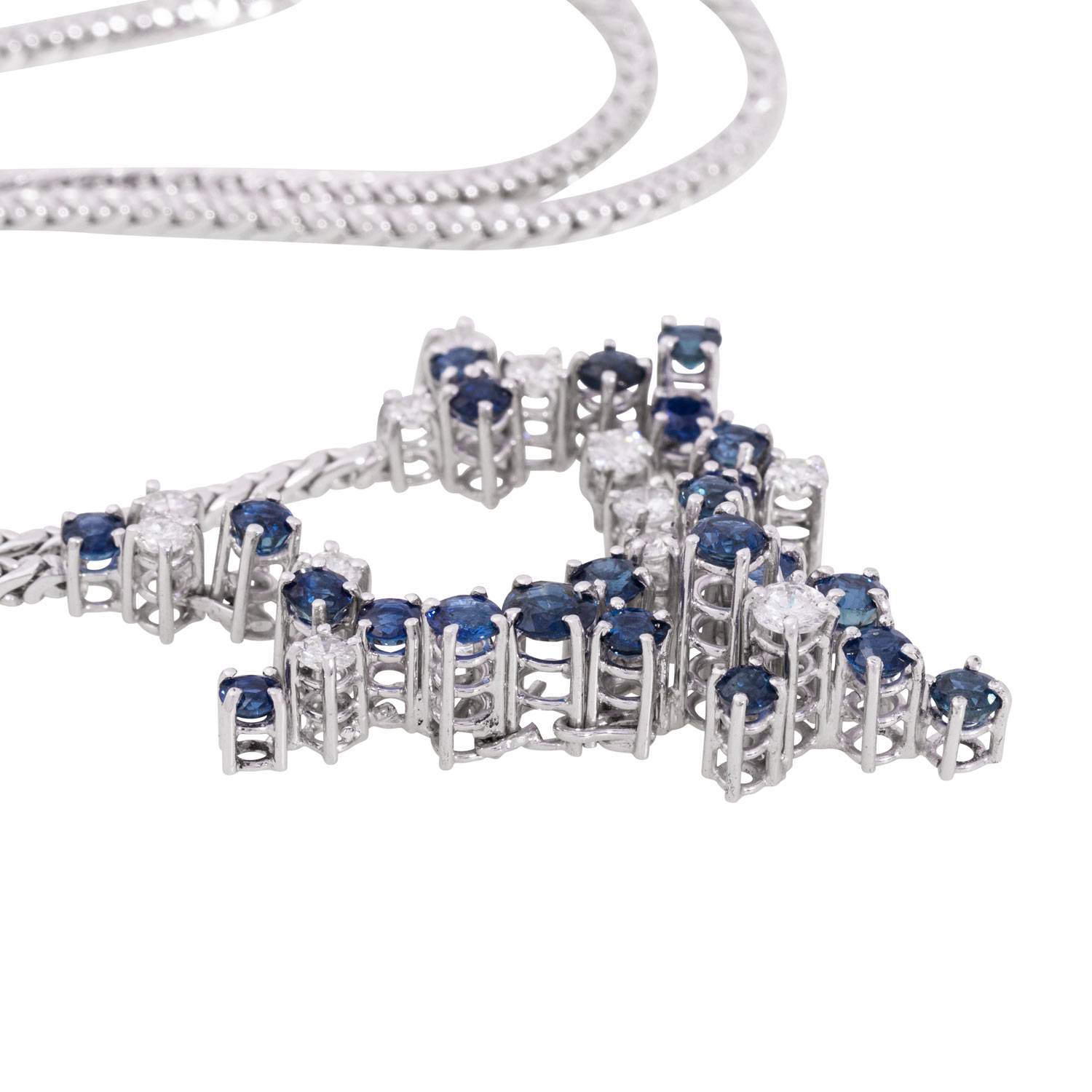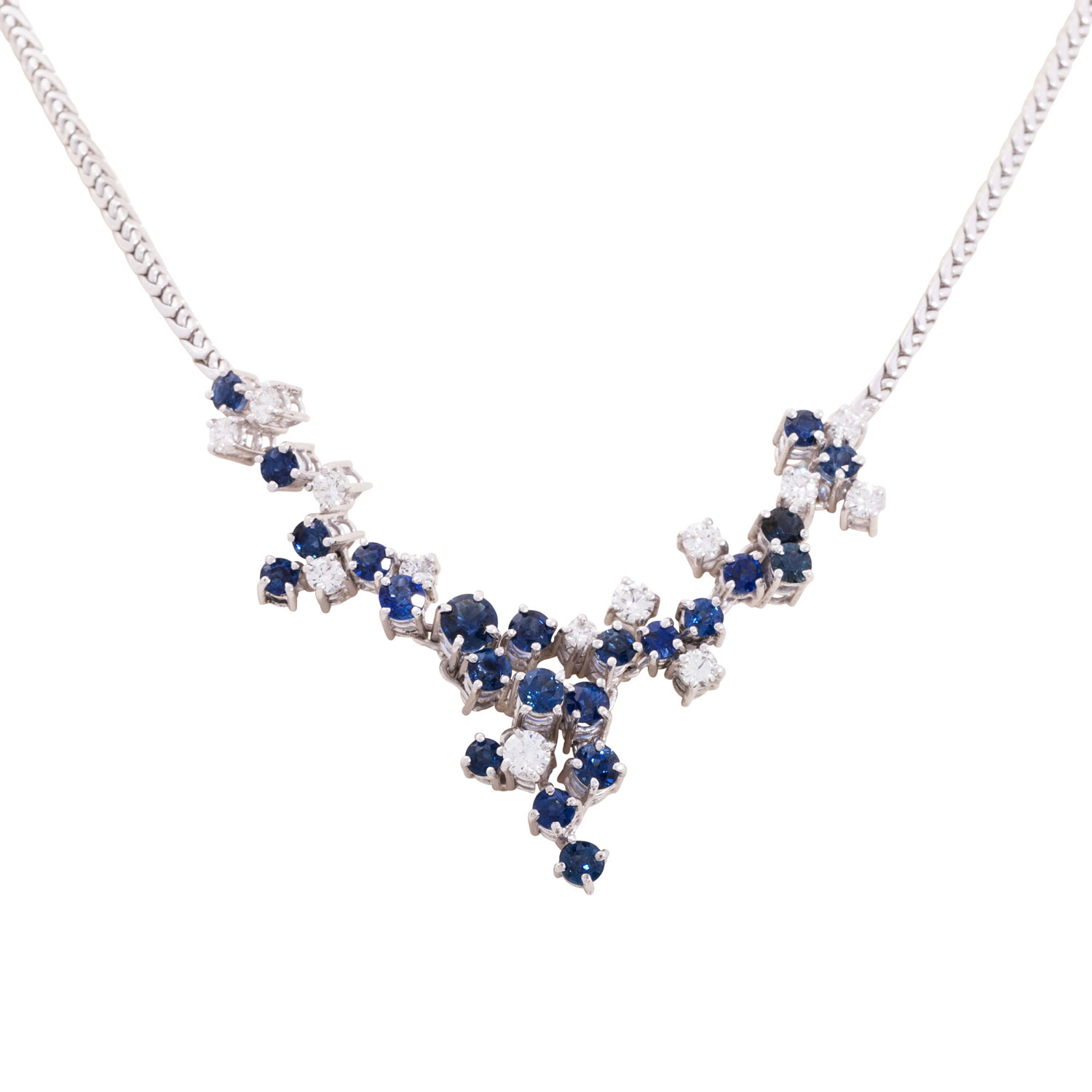 Necklace with saphires and brilliant- cut diamonds, totalling ca. 0,60 ct, of good colour and clarity. 18K WG 18,2g. Length ca. 42 cm, 2nd half of 20th century, minor signs of wear.