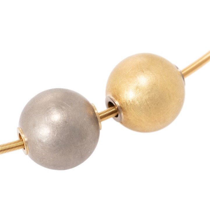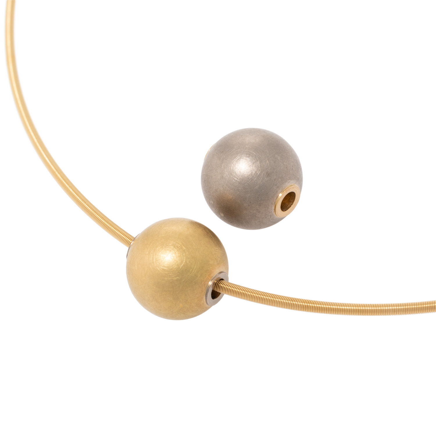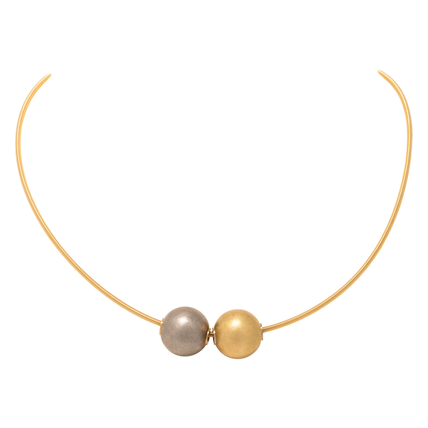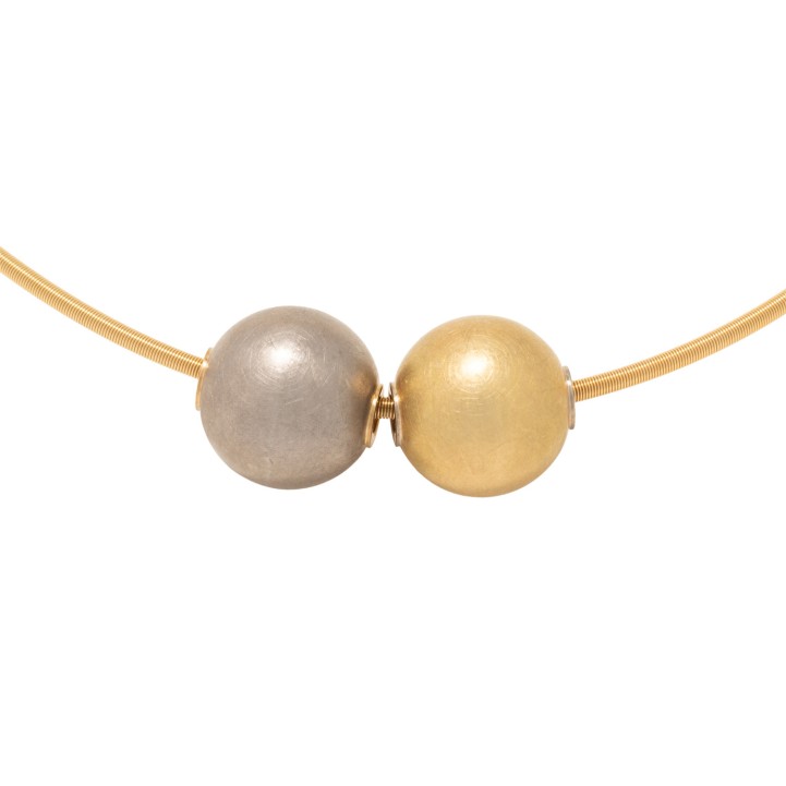 2 ball pendants for pulling through, D: 14 mm, with NIESSING choker necklace L: 45 cm, 18K yellow and white gold, 39.1 g, 20th/21st century, minor signs of wear, necklace with maker's signature.
