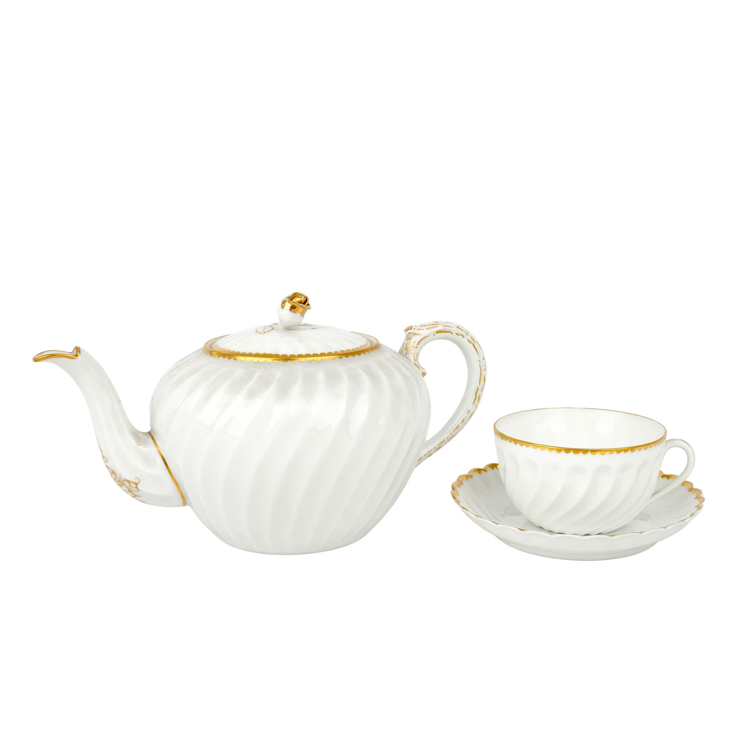 NYMPHENBURG tea service for 6 persons 'Wave ribbed, gold edge', 20th century