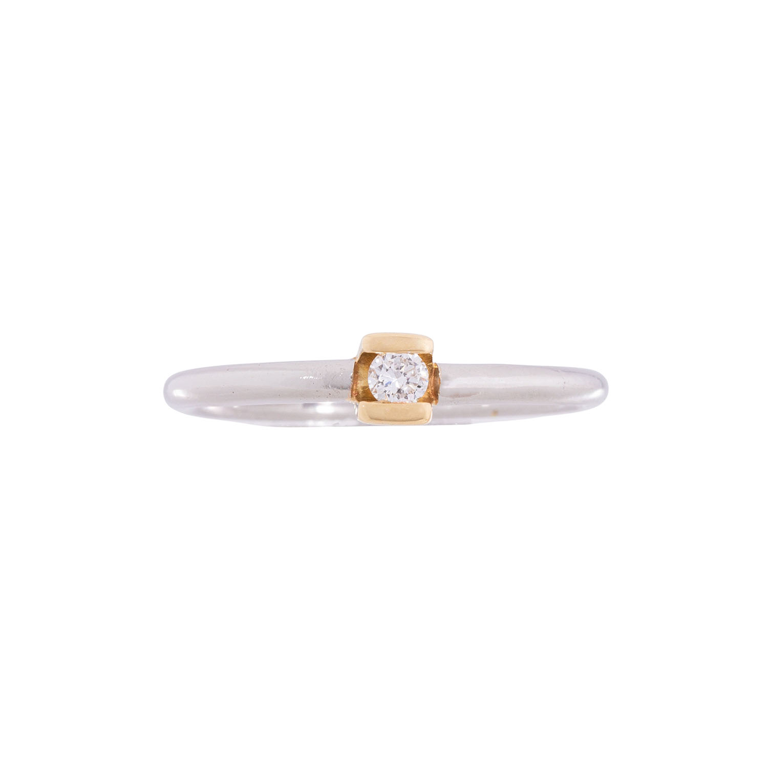 OEDING-ERDEL Ring with brilliant cut diamond, ap. 0.07 ct, good colour, piqué, chipped, platinum and 18K yellow gold, 3.3 g, ring size 54, late 20th century, minor signs of wear.