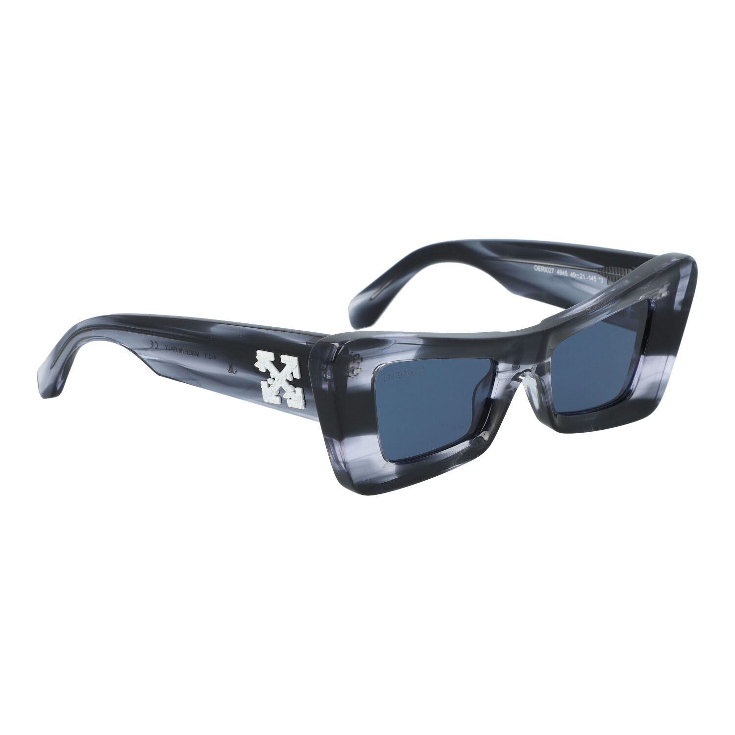 PRE-LOVED ITEM BY @SOFIAGHASAOFFICIAL - OFFWHITE sunglasses 'OERI027 4945'. Retail price 220,-€. Slightly transparent plastic frame in black/grey with colour gradient and tinted lenses. Distinctive shape. Slight signs of wear.