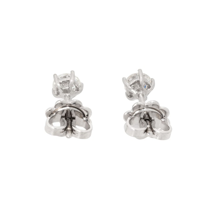 Pair of solitaire studs with 2 brilliant-cut diamonds,