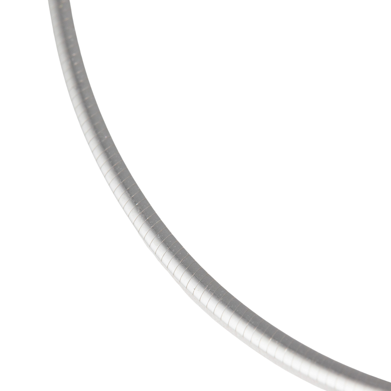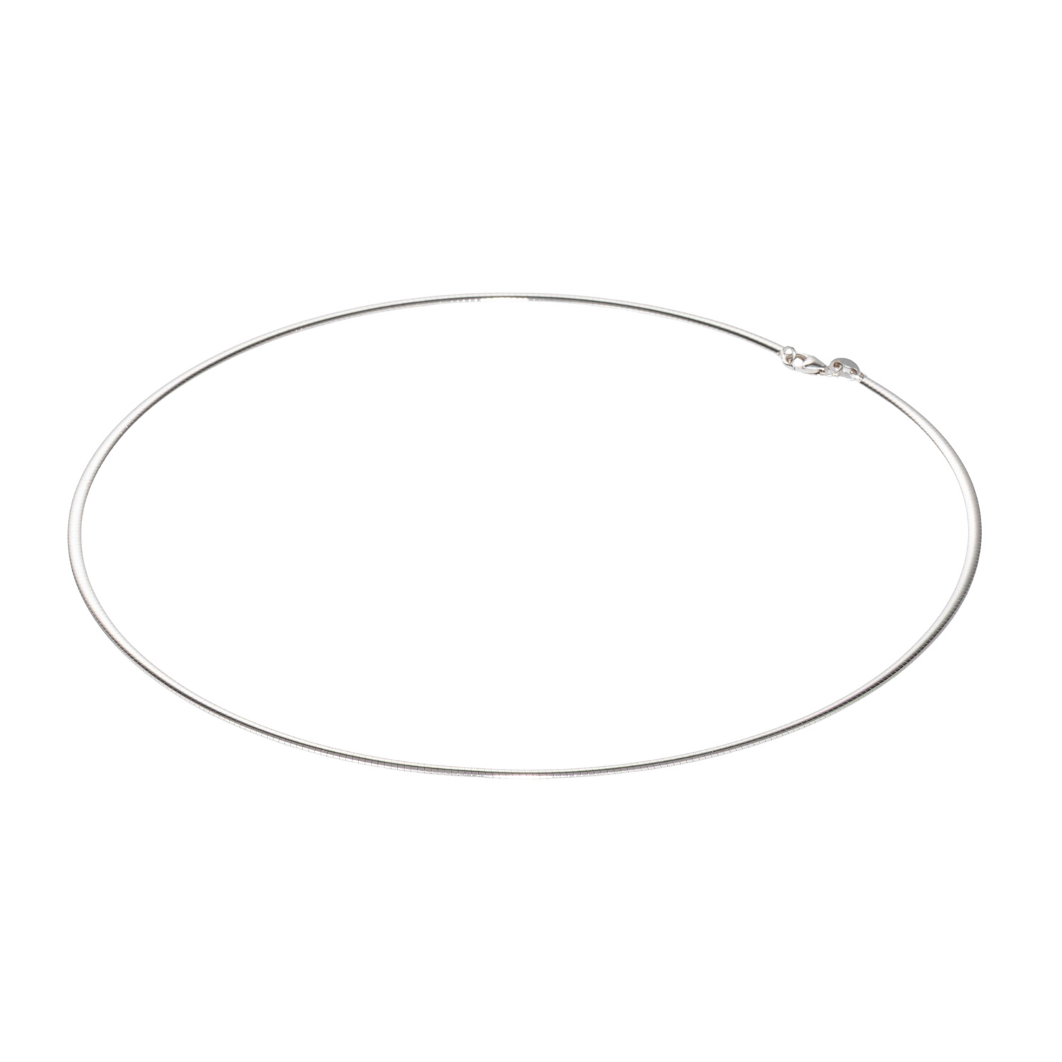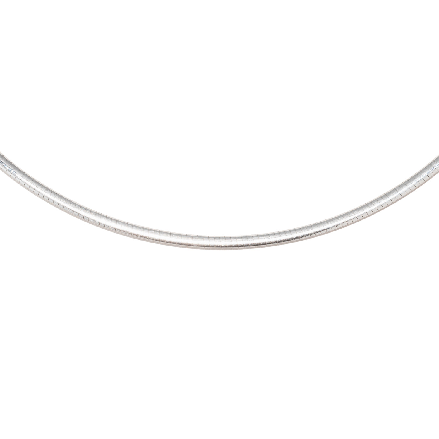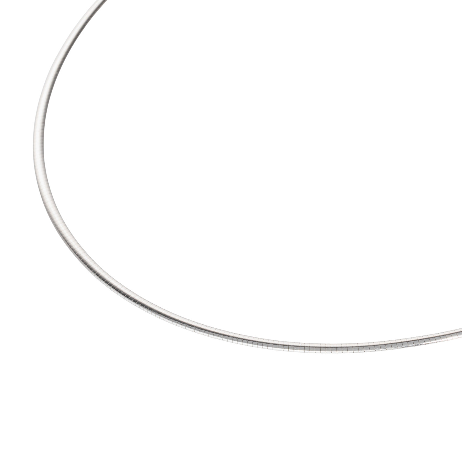 Omega-nacklace, satin finished/polished, 14K white gold, 10.7 g, L: approx. 44.5 cm, W: approx. 2.4 mm, 20th/21st century, minimal signs of wear, with hallmark 'D+W'.
