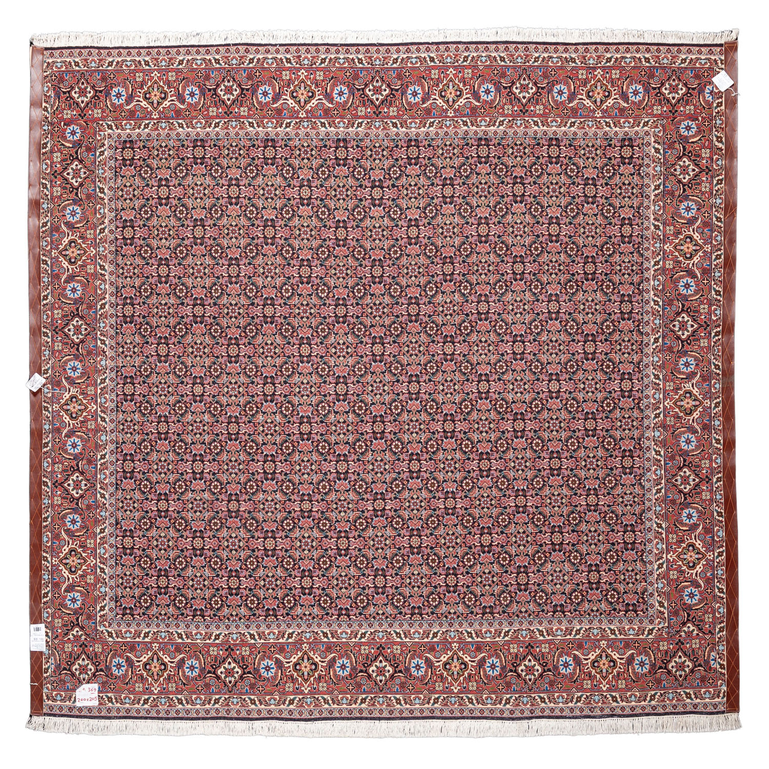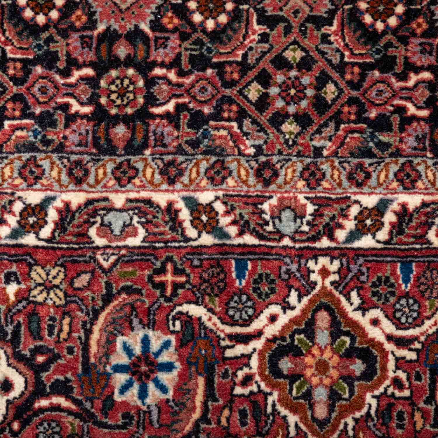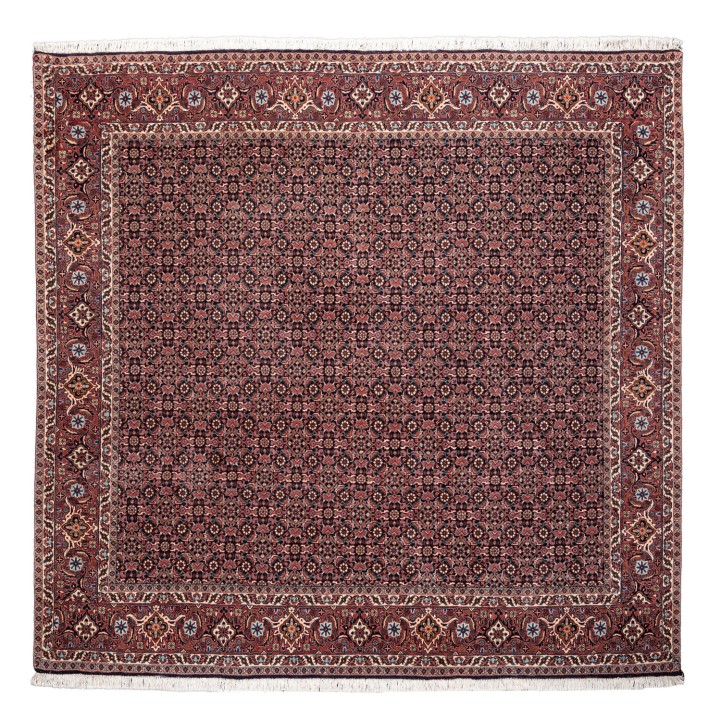 Oriental carpet. BIDJAR/PERSIA, 20th century. 205x200 cm. The dark blue field is patterned with a Herati diamond pattern. The muted red main border is patterned with a tortoiseshell pattern. NO SHIPPING TO THE USA