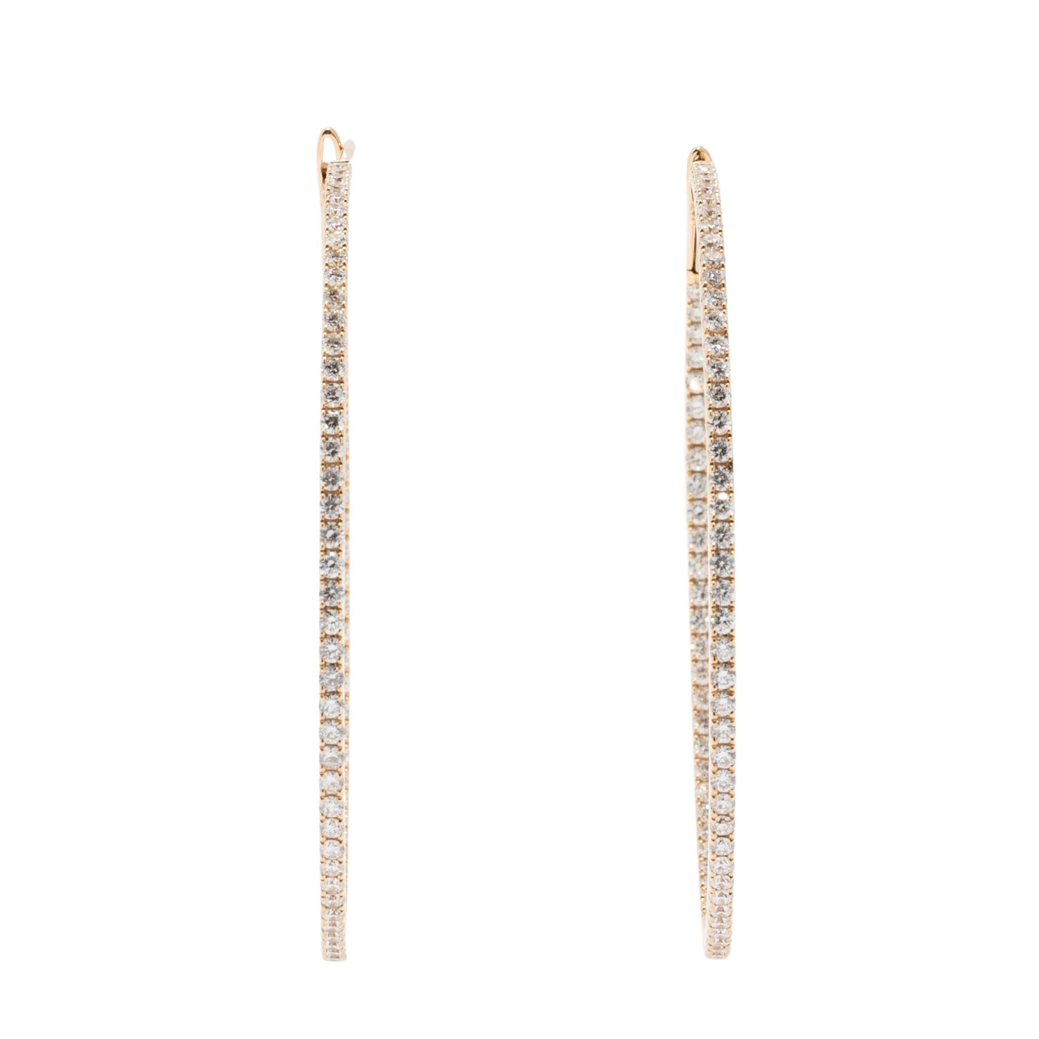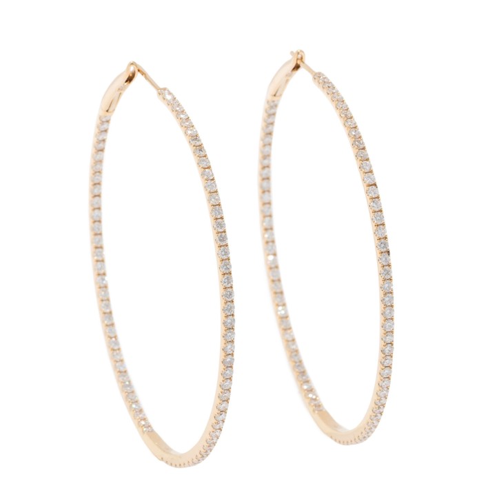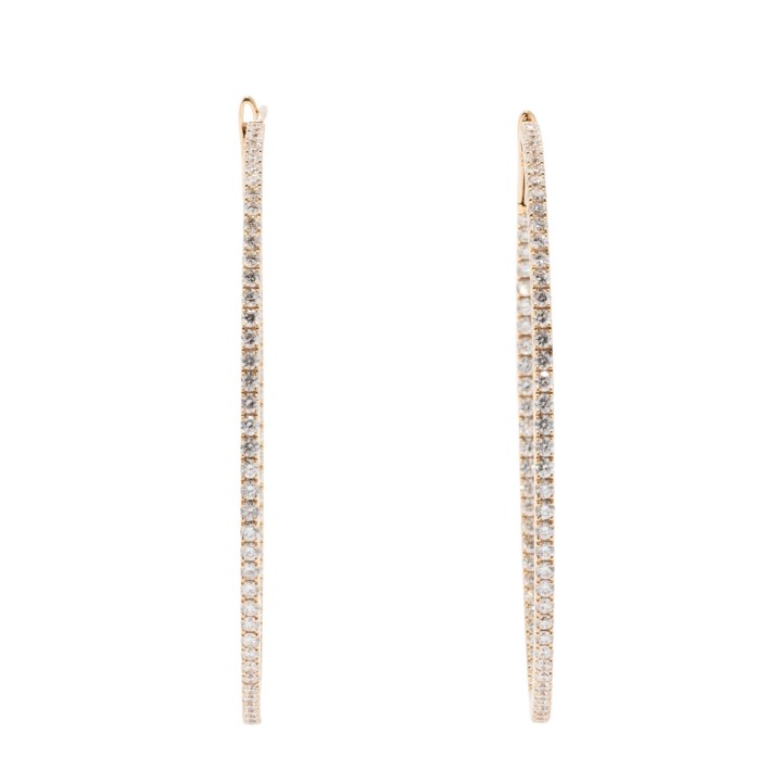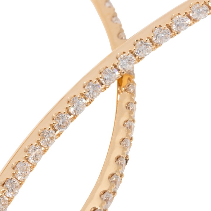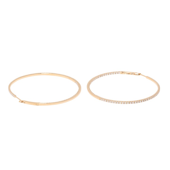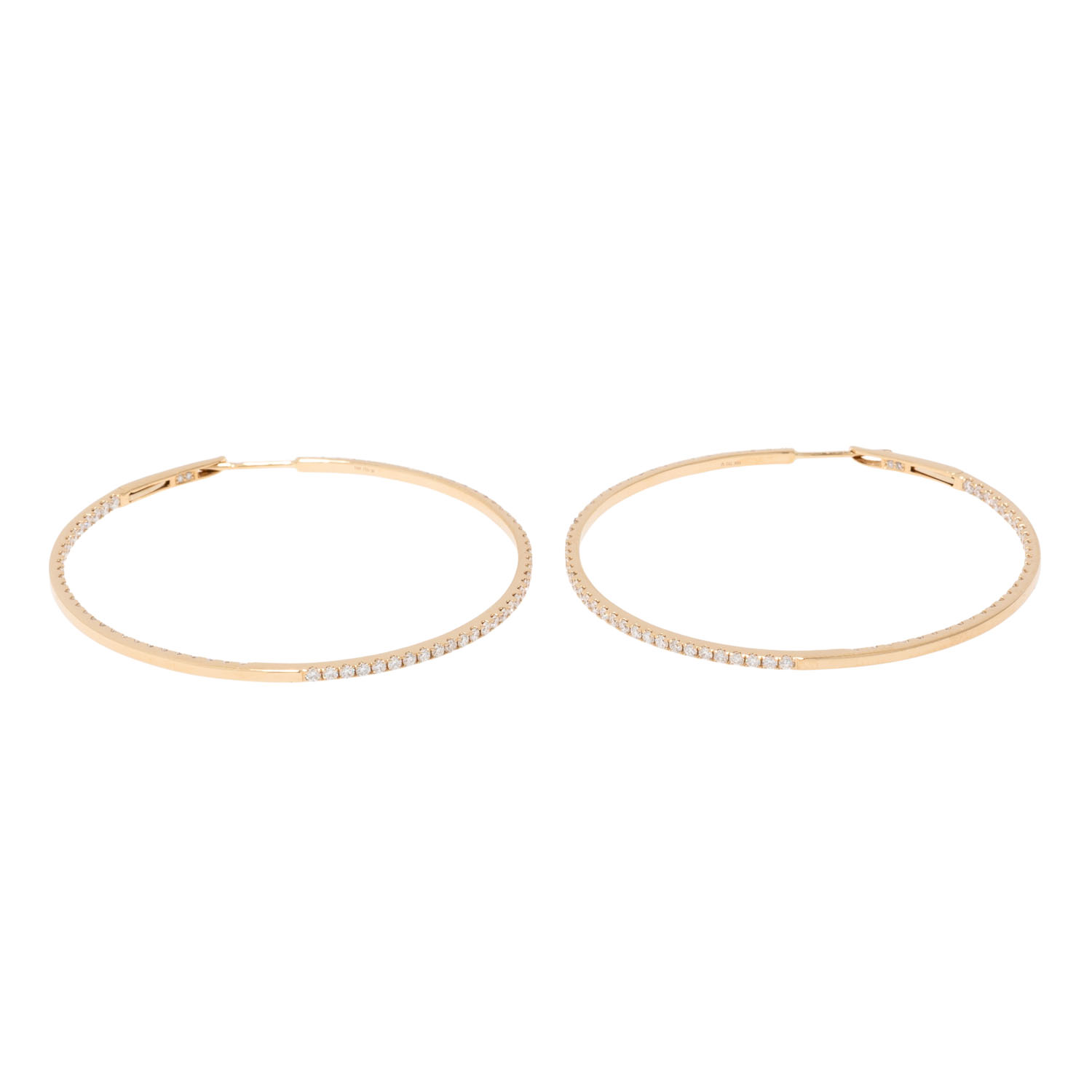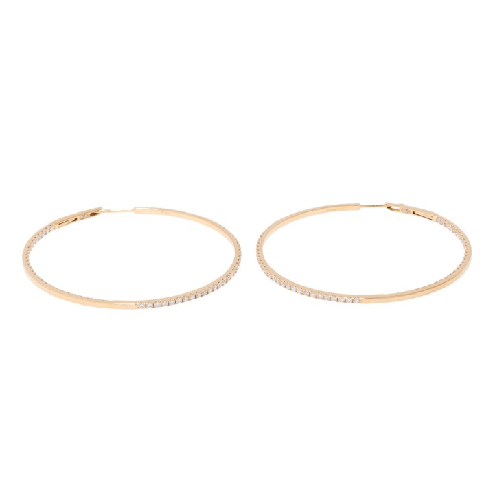Pair of hoop earrings with 150 brilliant-cut diamonds totalling 2.36 ct, YG 18 K, 8.5 g, D: 55 mm, 21st century, mint condition.