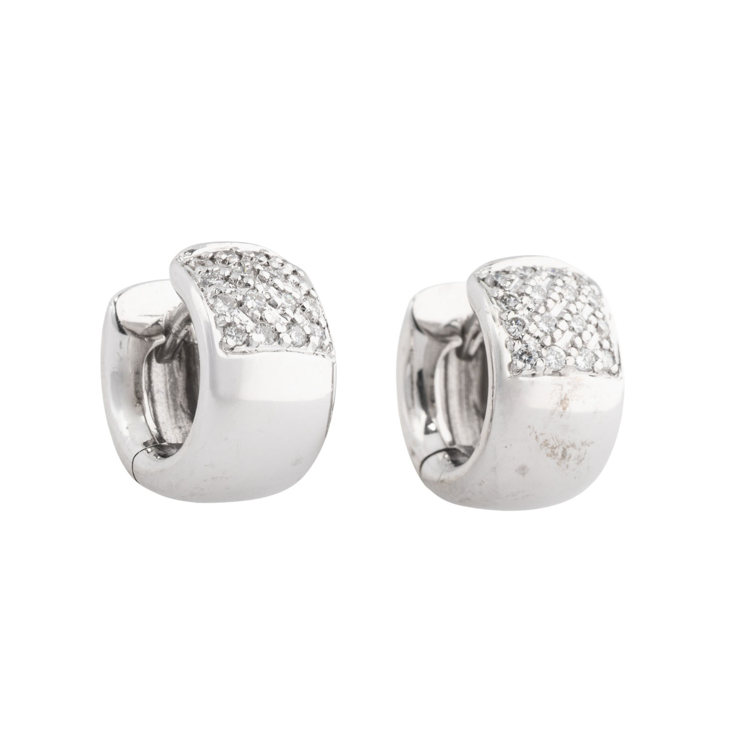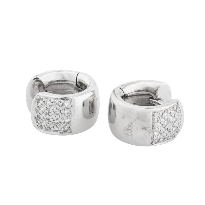 Pair of hinged hoop earrings with 32 brilliant-cut diamonds,