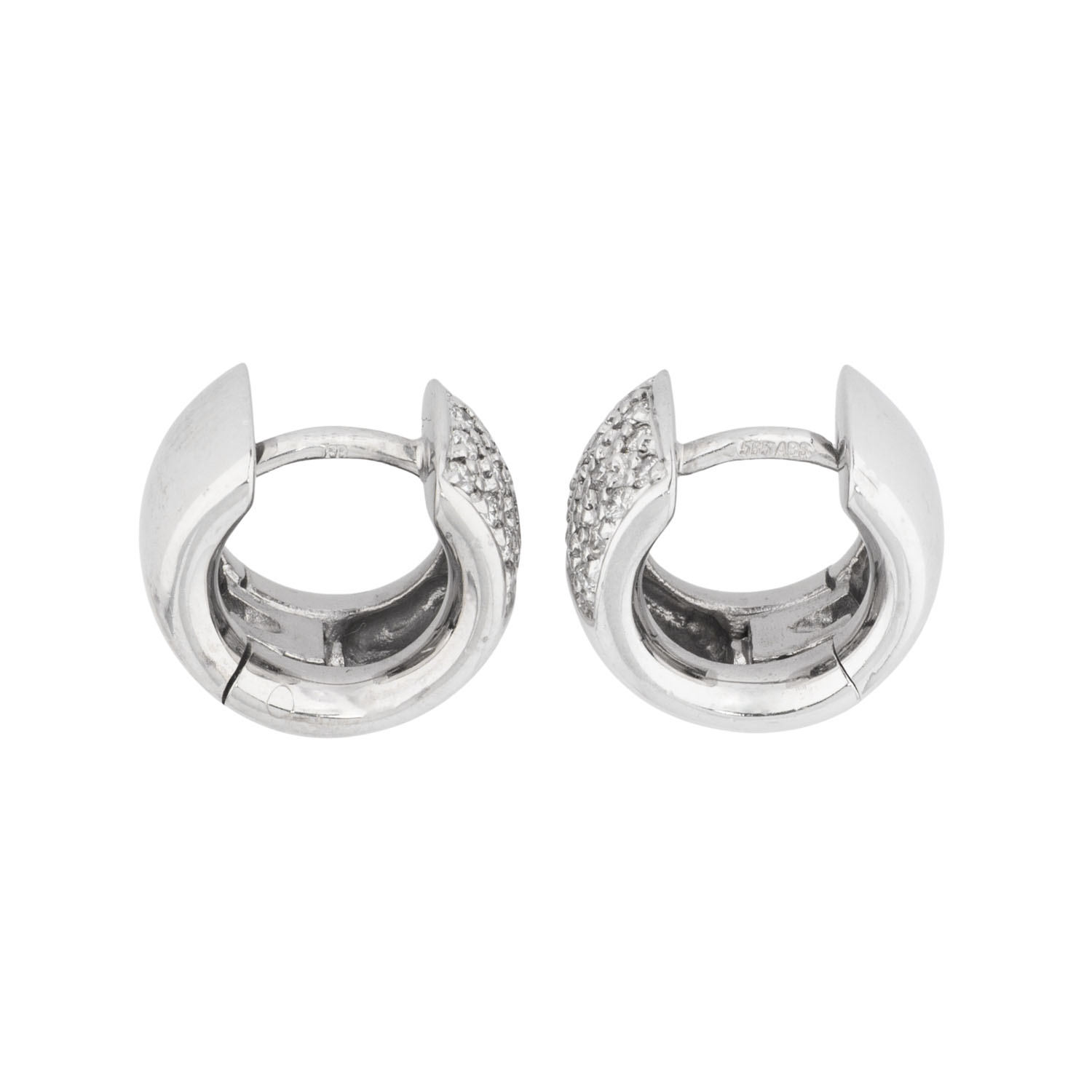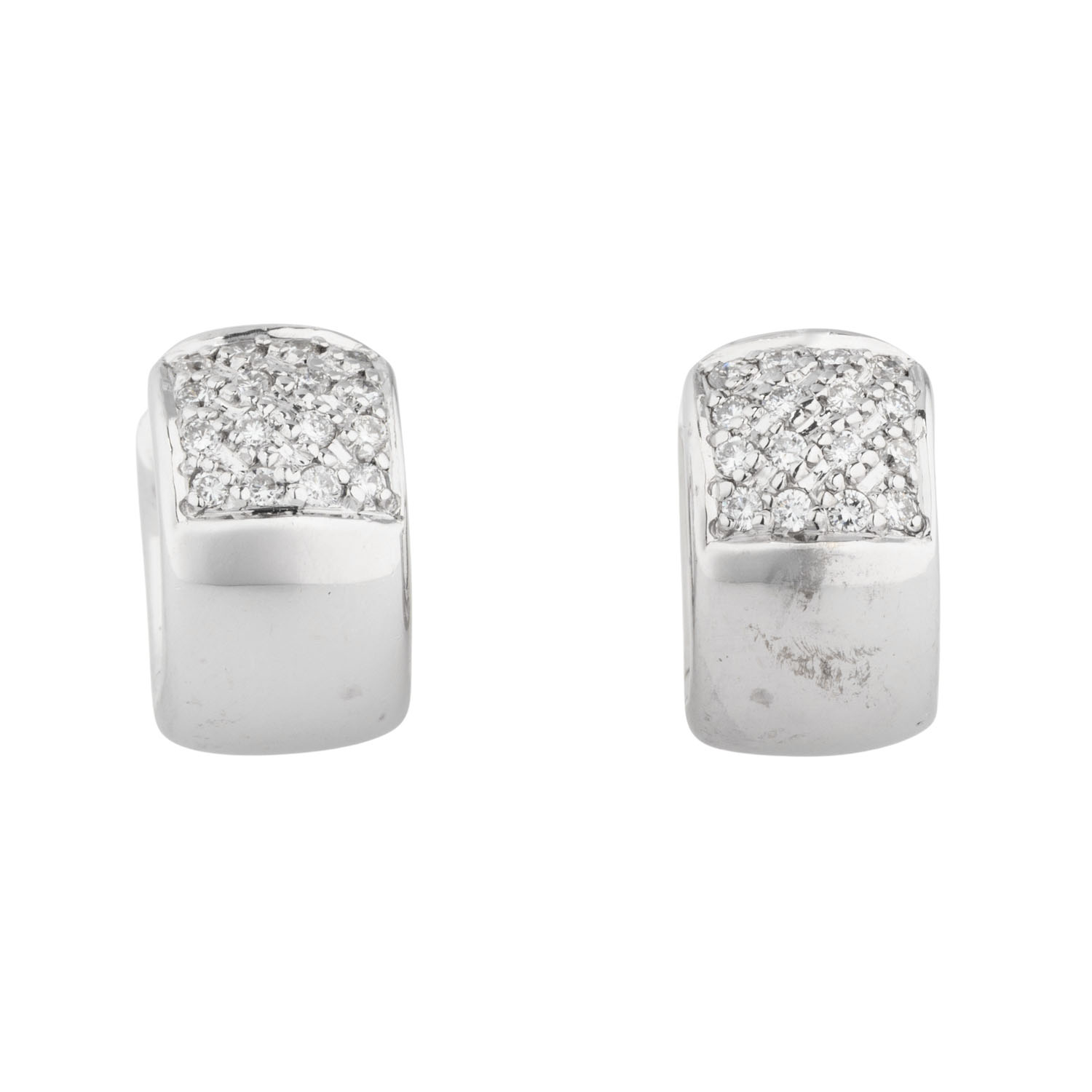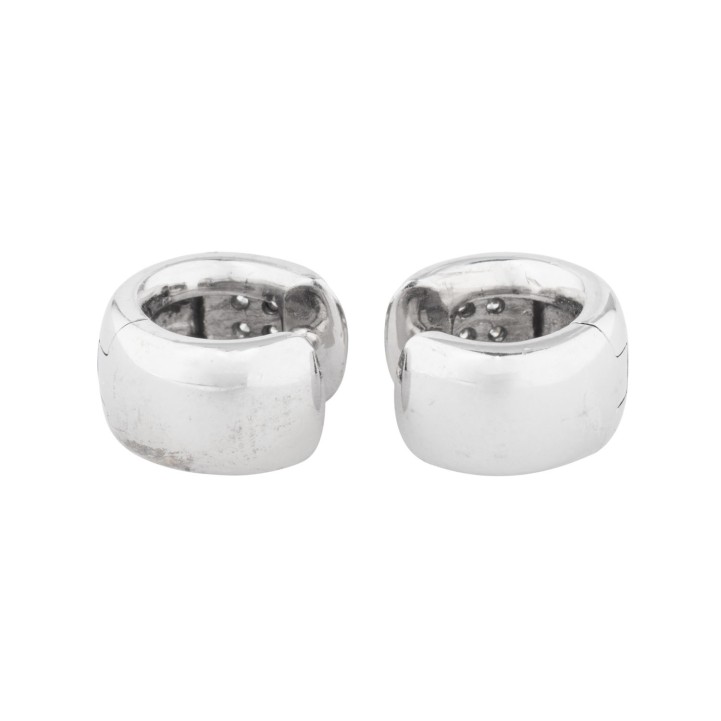Pair of folding hoop earstuds with 32 brilliant cut diamonds, totalling ap. 0.19 ct, 14K yellow gold rhodium plated, 5.6 g. L x W: 11 x 7 mm, 20th/21st century, minor signs of wear.