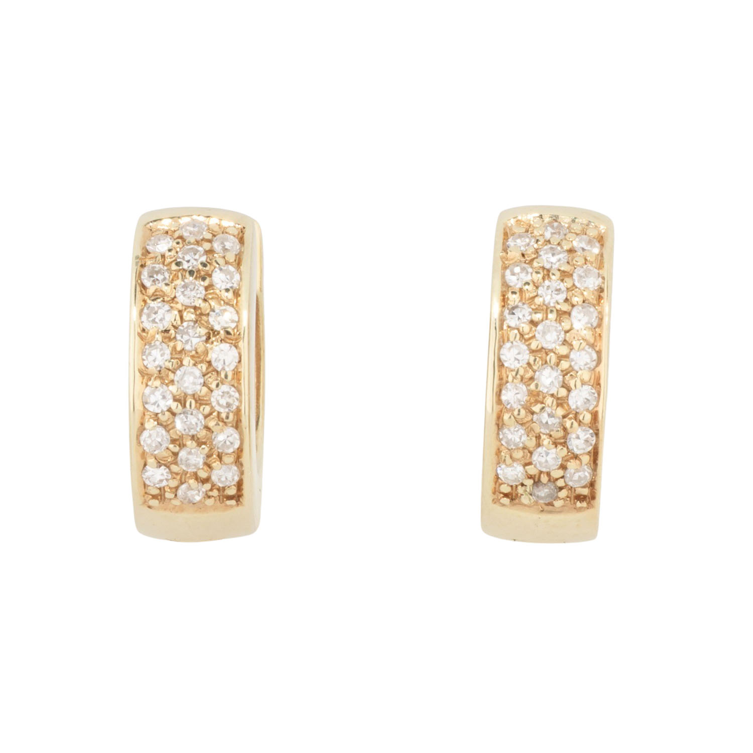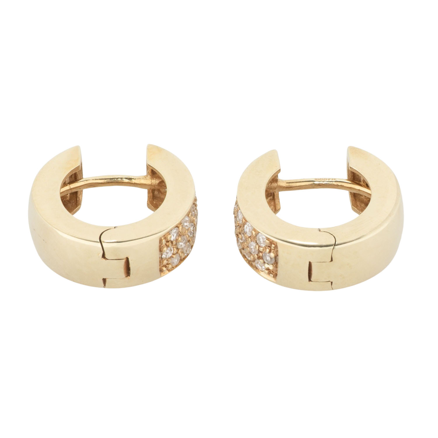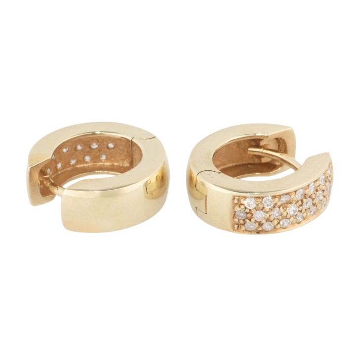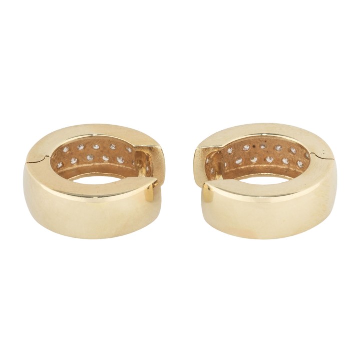 Pair of folding hoop earrings with 44 single cut diamonds, totalling ap. 0.4 ct, 14K yellow gold, 5.2 g, L x W: 14 x 5 mm, late 20th century, minimal signs of wear.