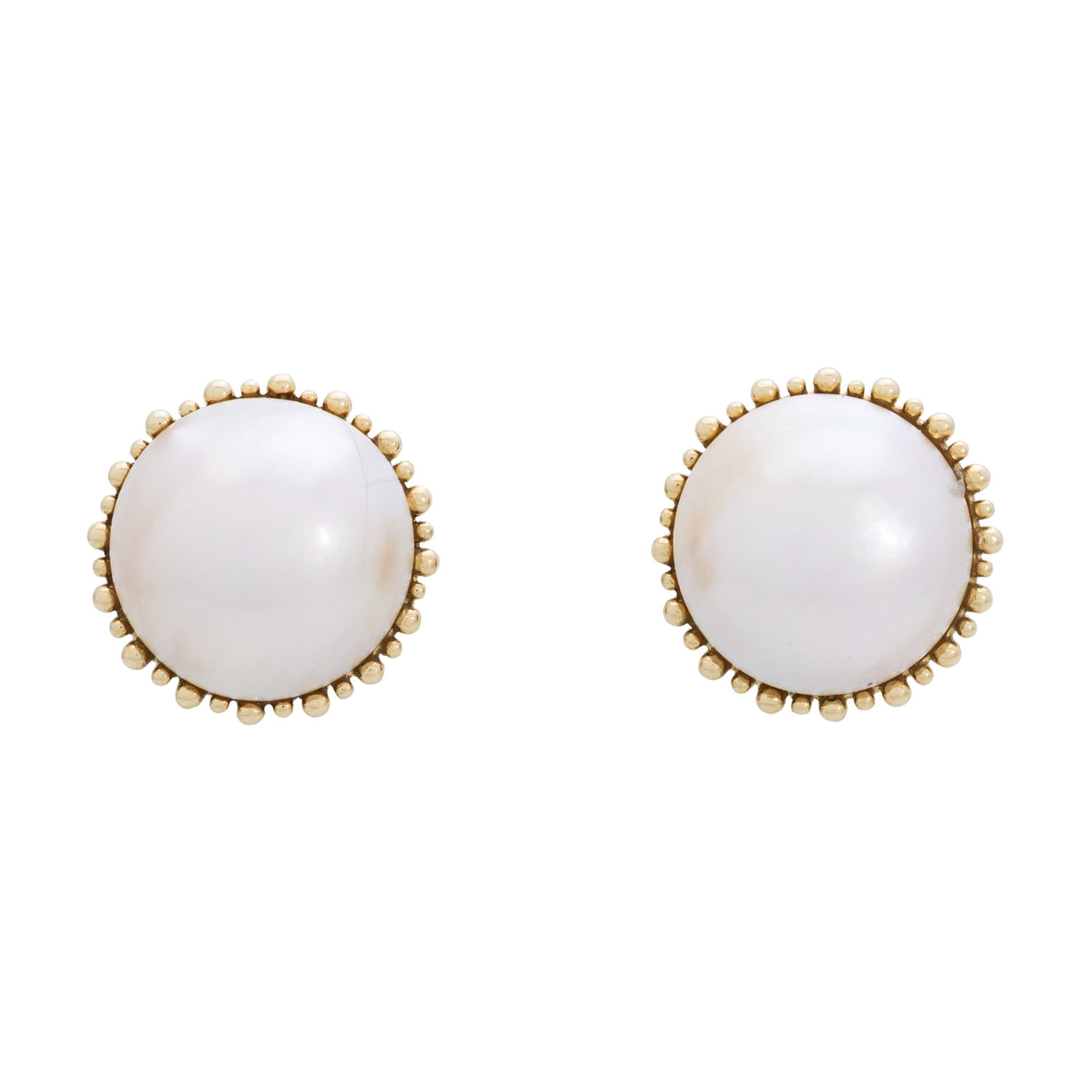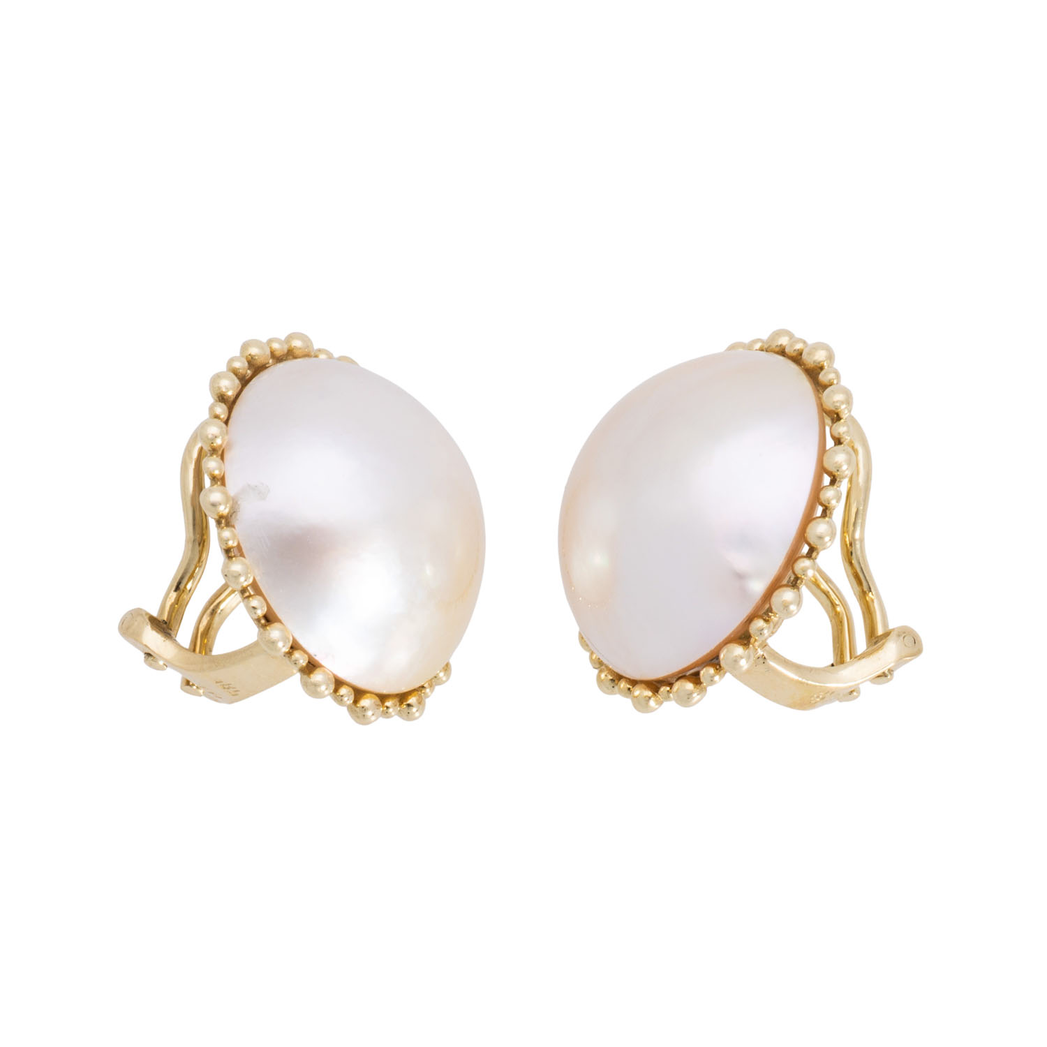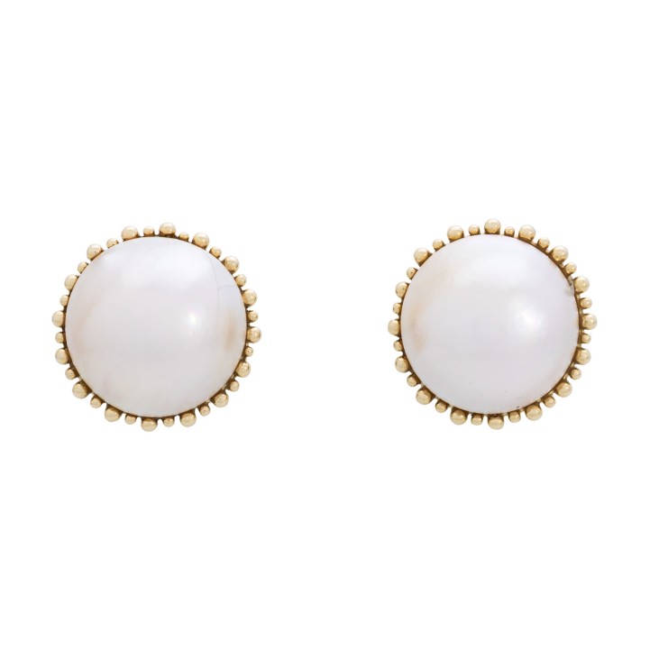 Pair of stud earrings with clip, 2 Mabe pearls,