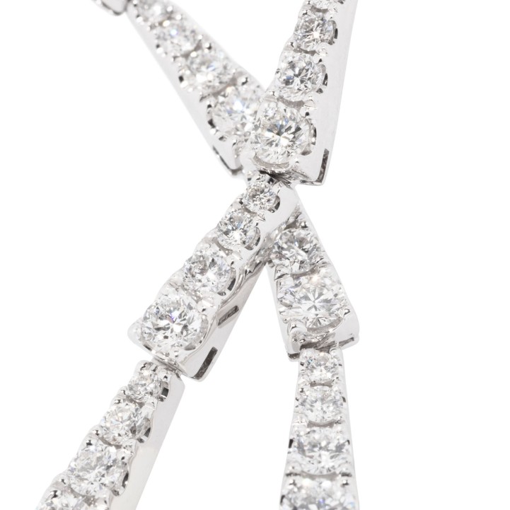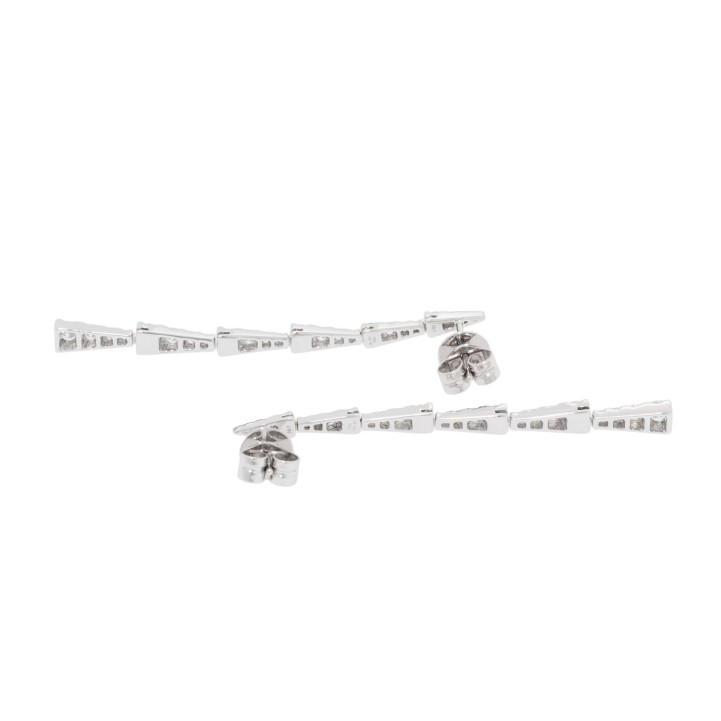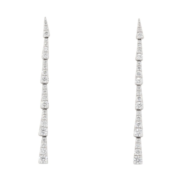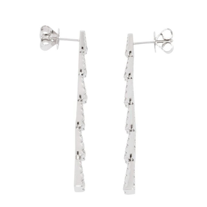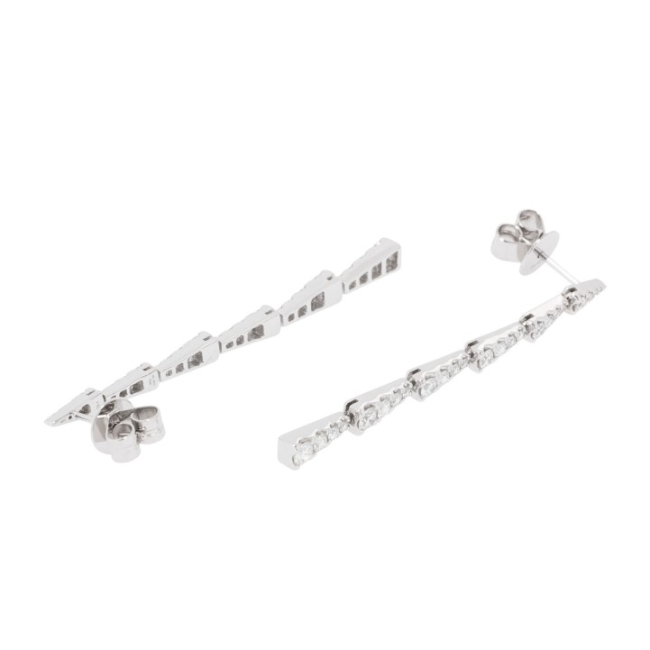 Pair of pendant earrings with 48 brilliant-cut diamonds totalling 1.16 ct, good color and clarity, WG 18 K, 5.3 g, L: 48 mm, 21st century, mint condition.
