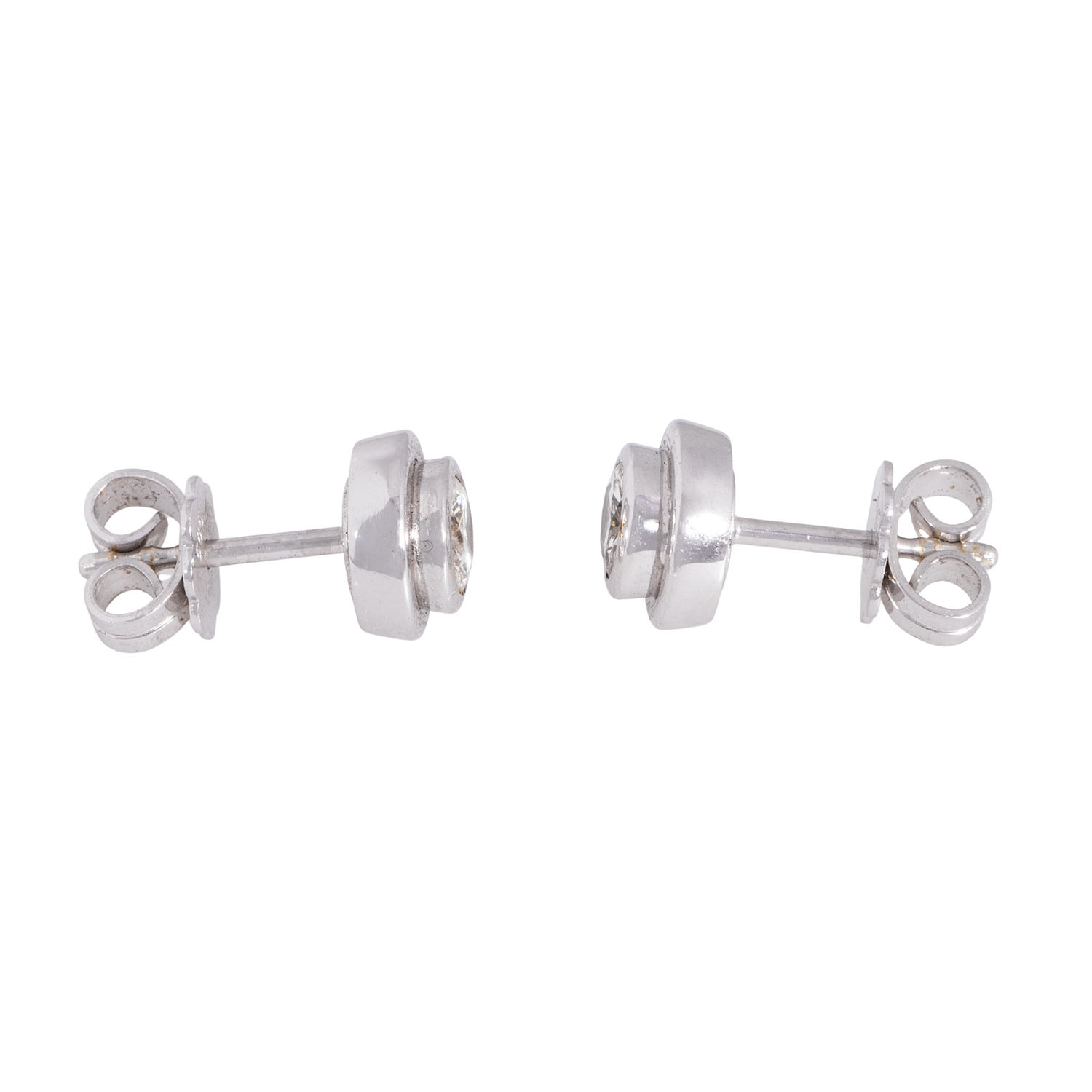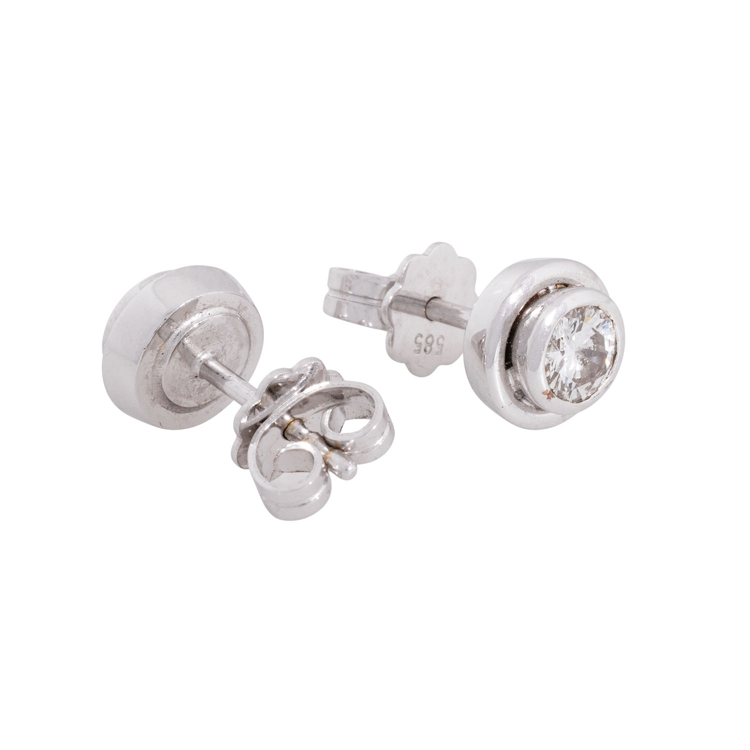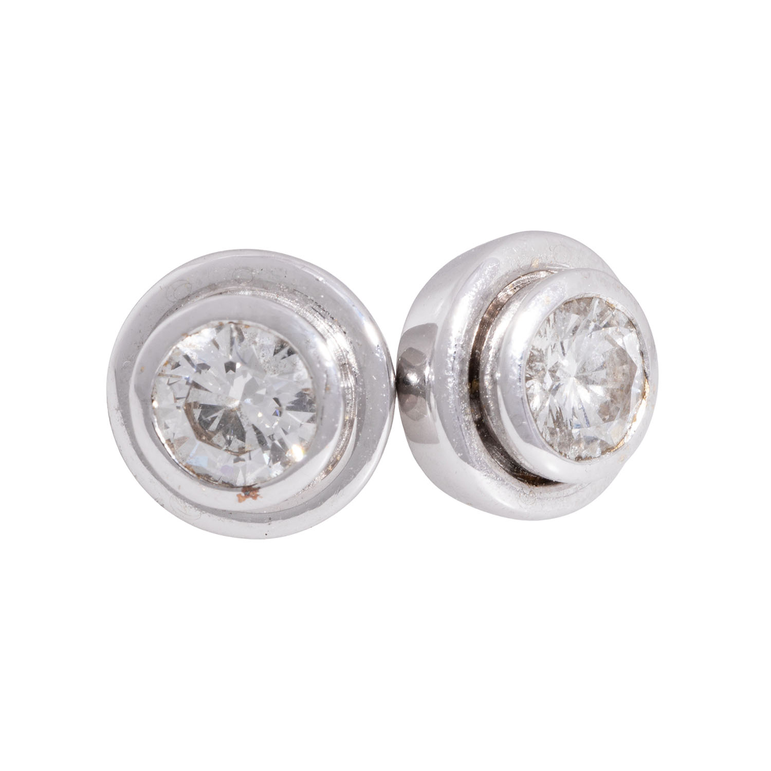 Pair of solitaire ear studs with 2 brilliant-cut diamonds totaling ca. 1.2 ct.