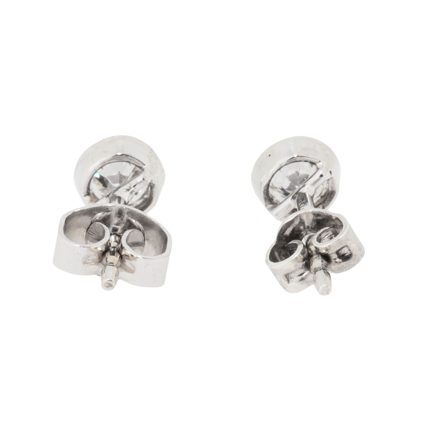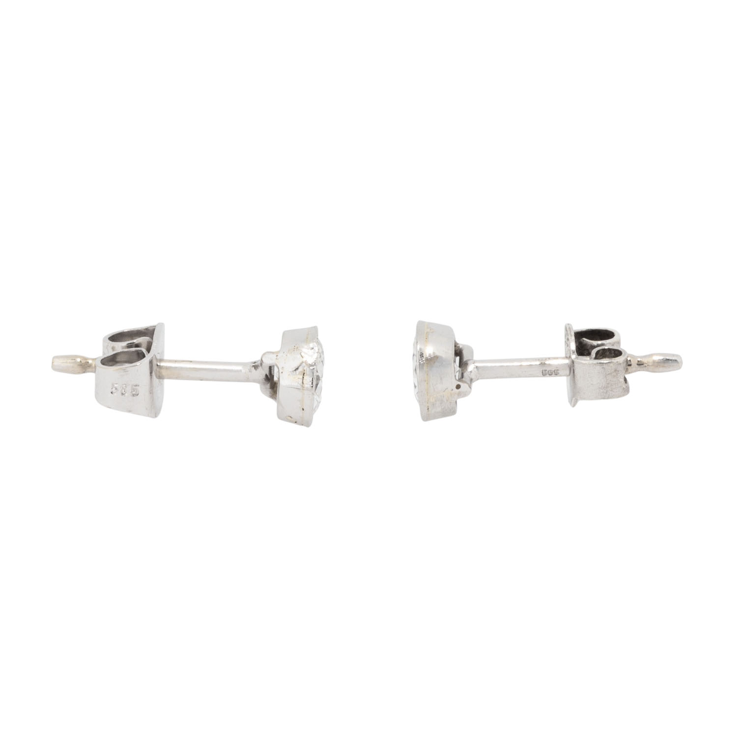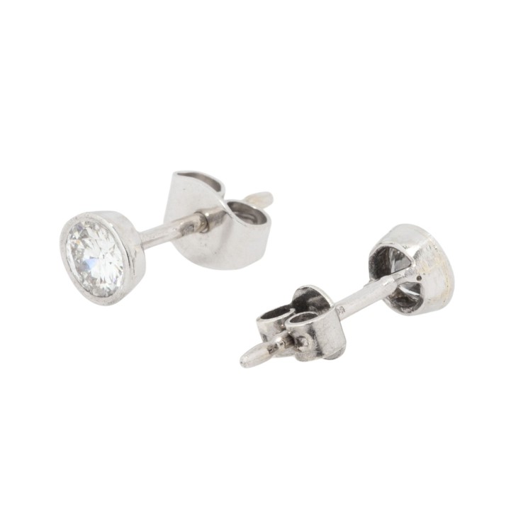 Pair of stud earrings with brilliant-cut diamonds, totalling ca. 0.5 ct, ca. WHITE (H)/SI, 14K white gold, 0.8 g, 2nd half of the 20th century, uneven ear nuts, 1 stud earring with blowholes, visible signs of wear.
