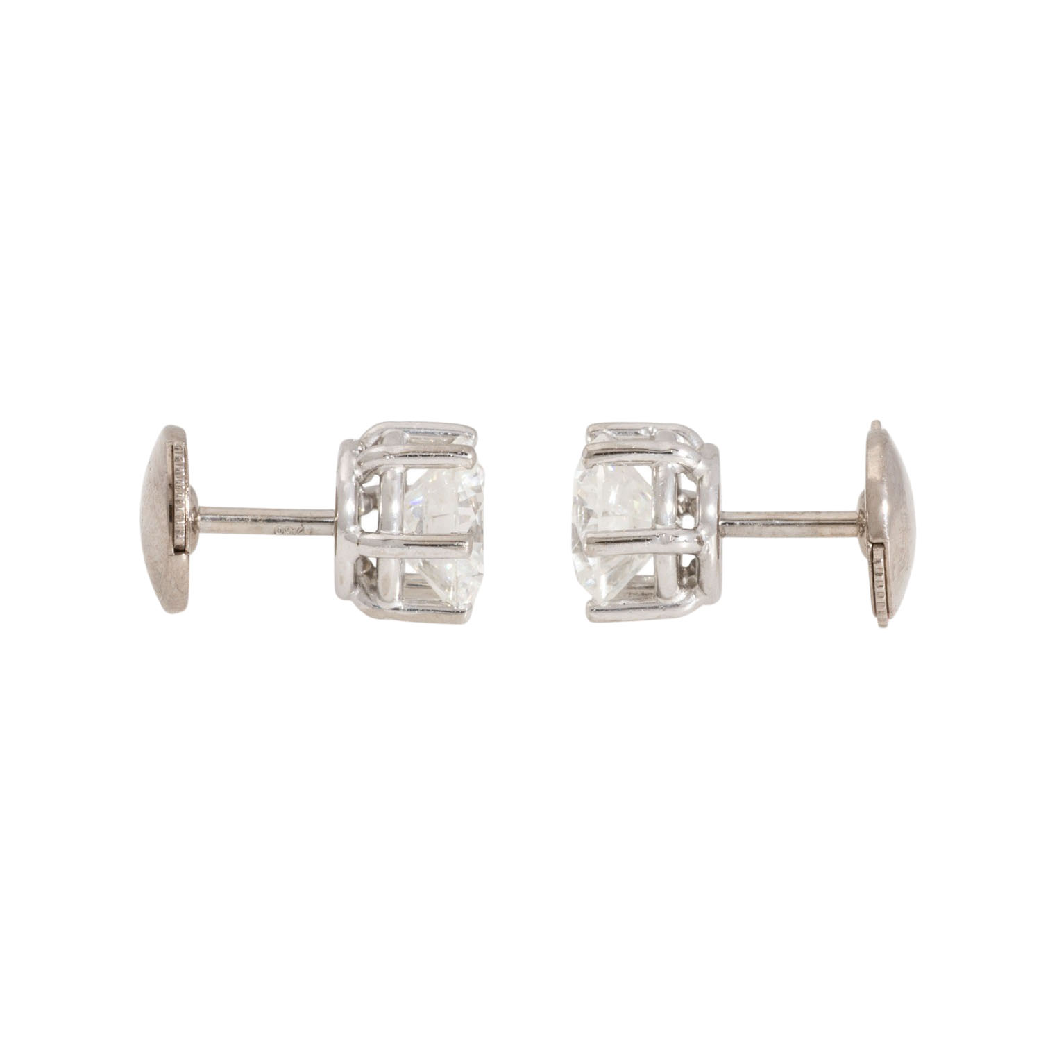Pair of stud earrings, each with one brilliant-cut diamond,