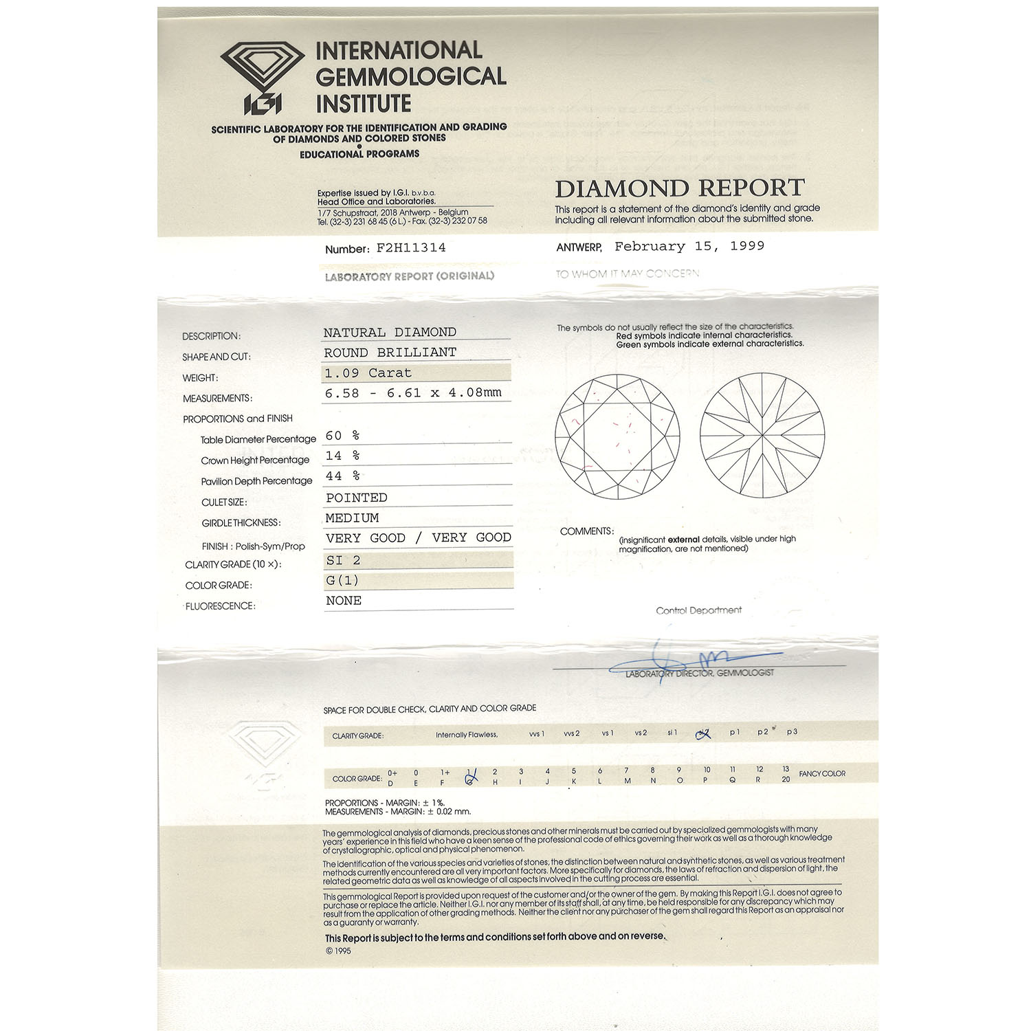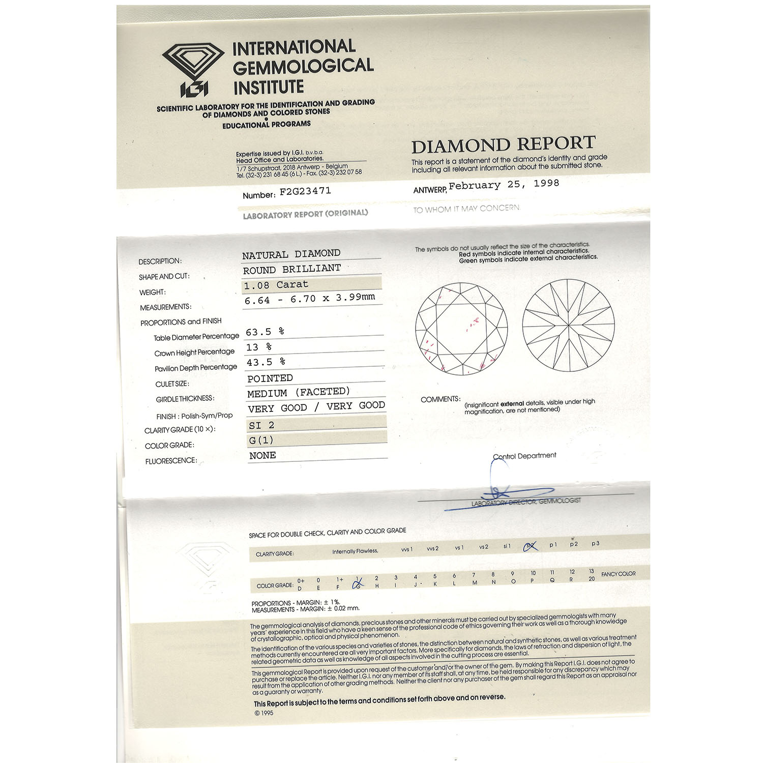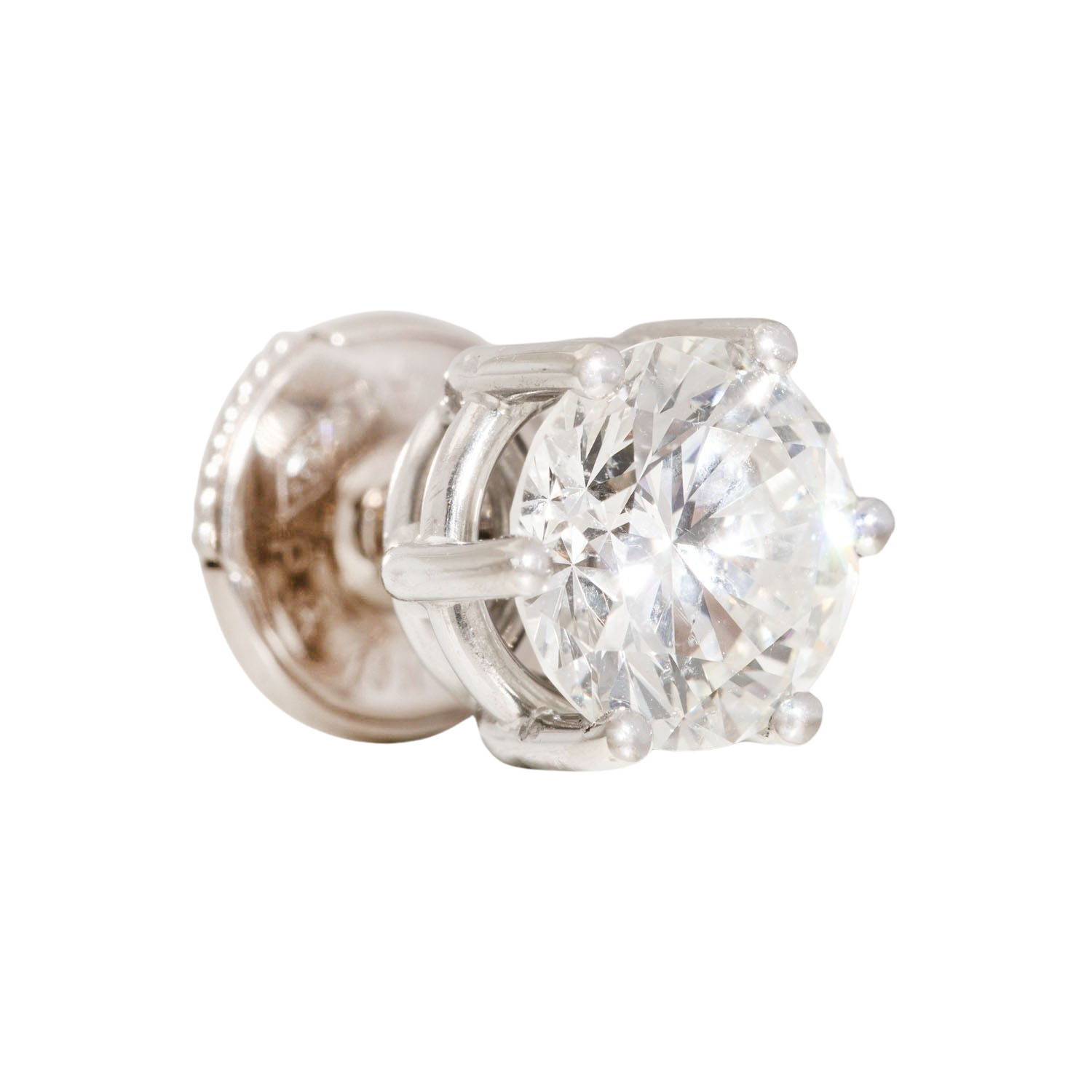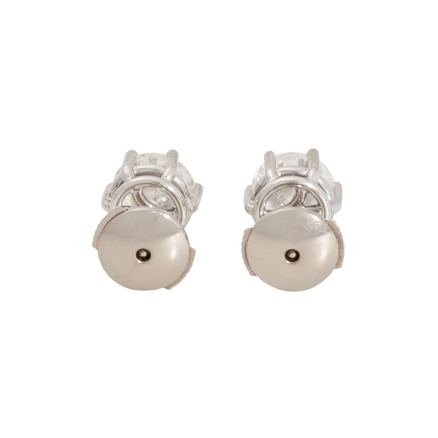 Pair of ear stud each set with 1 brillant-cut diamond totalling approx. 2.17 ct, RW (G)/SI2, current repalcement value: approx. 15,000 €, 18K WG, 2,9 g, 20th/21st century, slight signs of wear, diamond reports IGI F2H11314 and F2G23471.