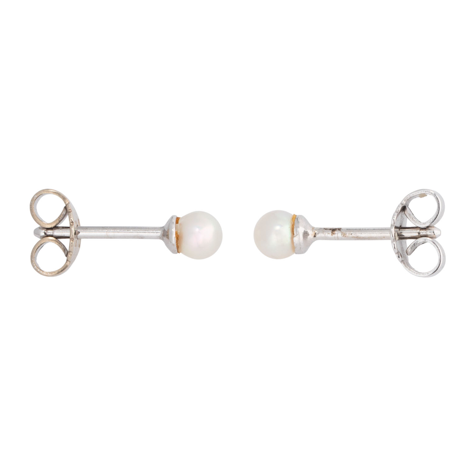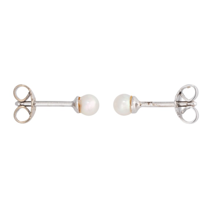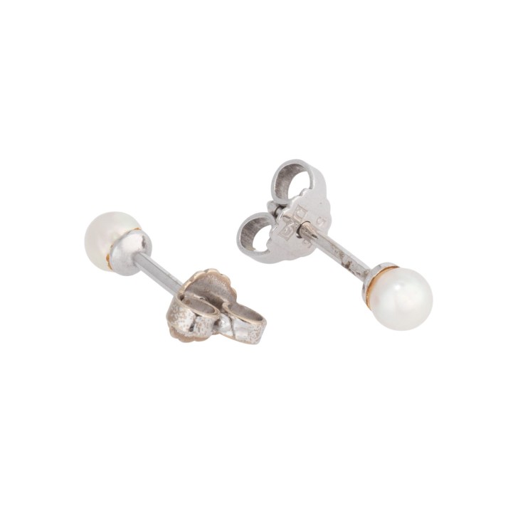 Pair of earstuds, 2 cultured pearls, cream coloured, D: 3.7 mm, good lustre, 14K white gold, 0.8 g, late 20th century, minimal signs of wear.