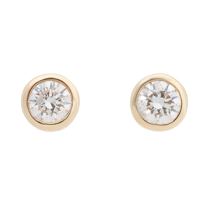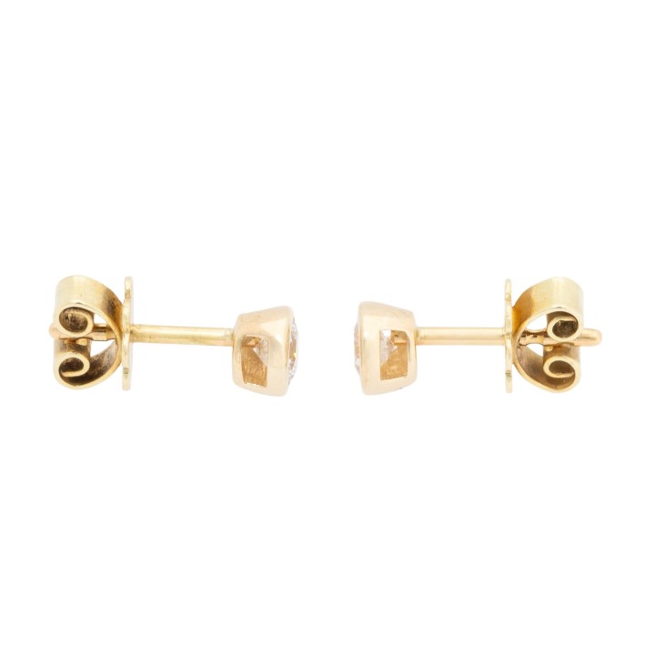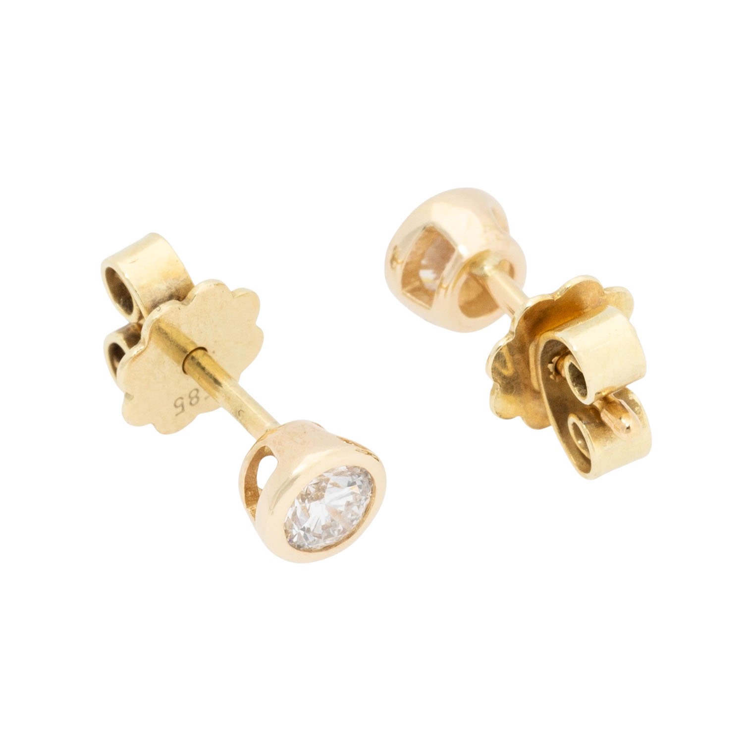 Pair of solitaire stud earrings with 2 brilliant-cut diamonds totalling ca. 0.4 ct, RW (G)/VS-SI, YG 14K, 1.5 g, 21st century, good condition.