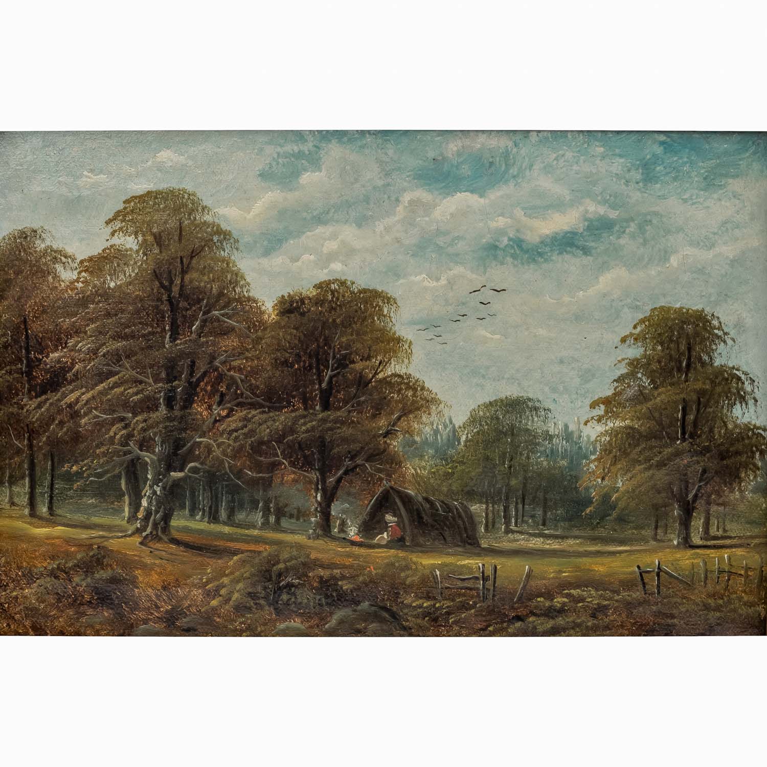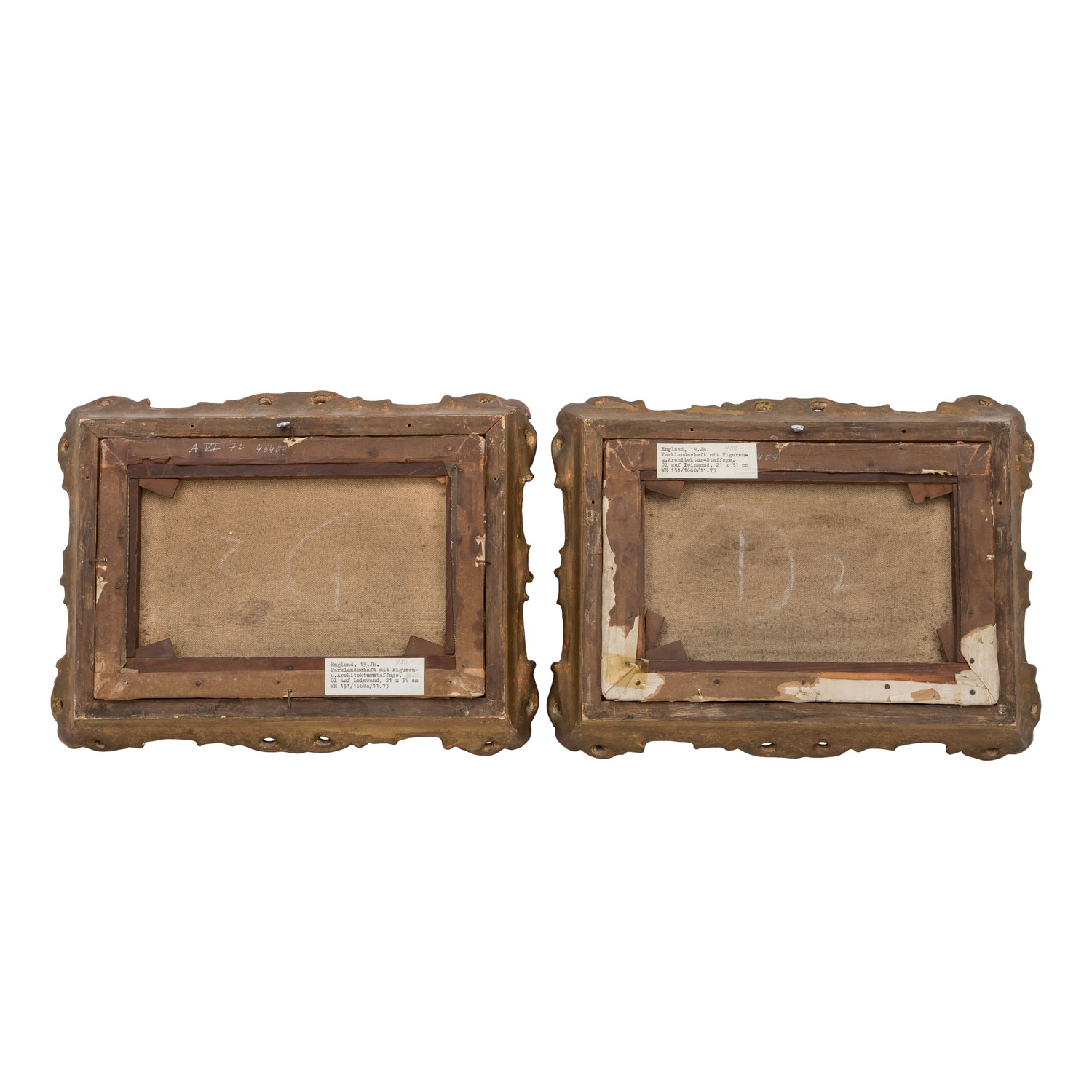 PAINTER 19th century, probably England, a pair of landscapes, each oil/canvas, HxW: each approx. 20.5x31 cm (30x40 cm with frame). Depending on age and wear, craquelure, depending on old restored and part. retouched. Each with frame (partly slightly damaged).