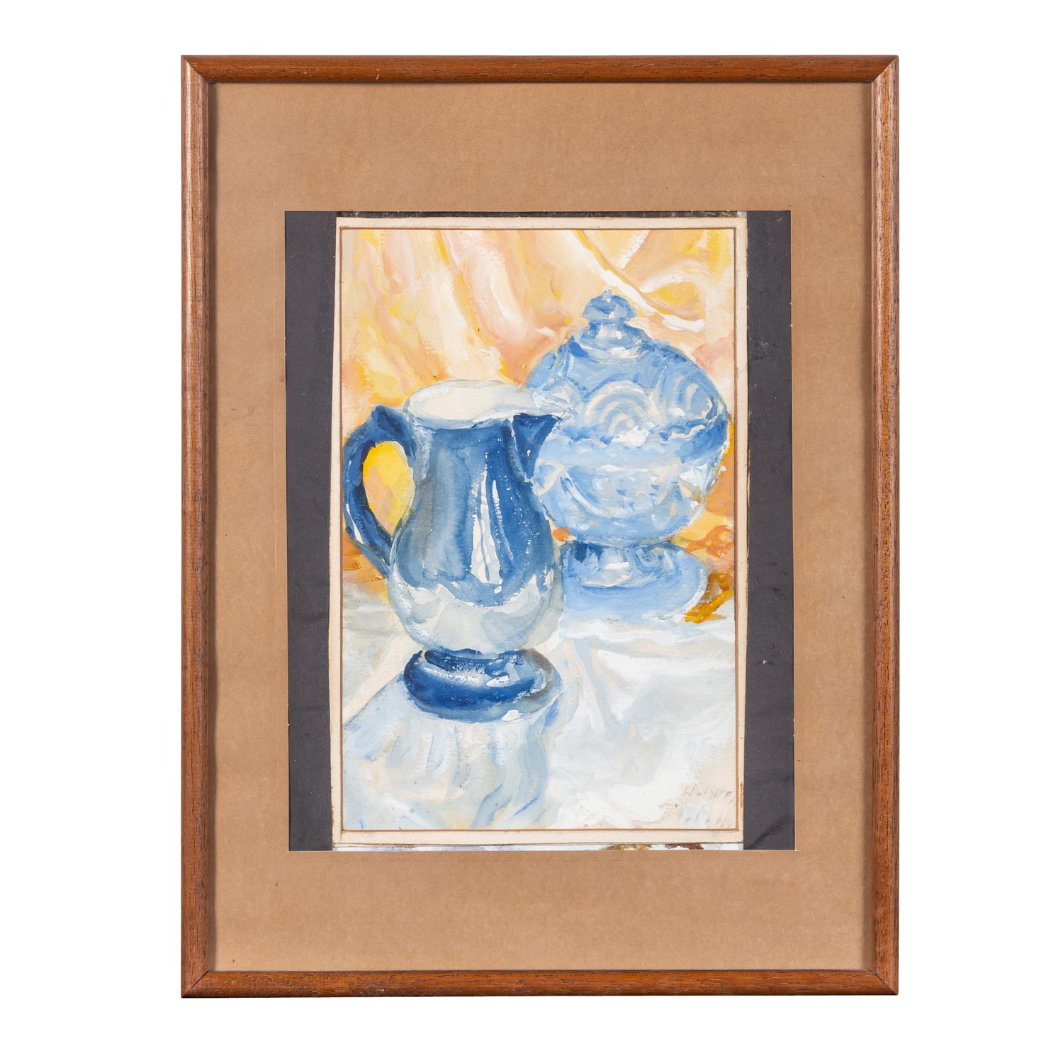PAINTER OF THE 20th CENTURY 'Carafe and bonbonniere of cut crystal glass'.