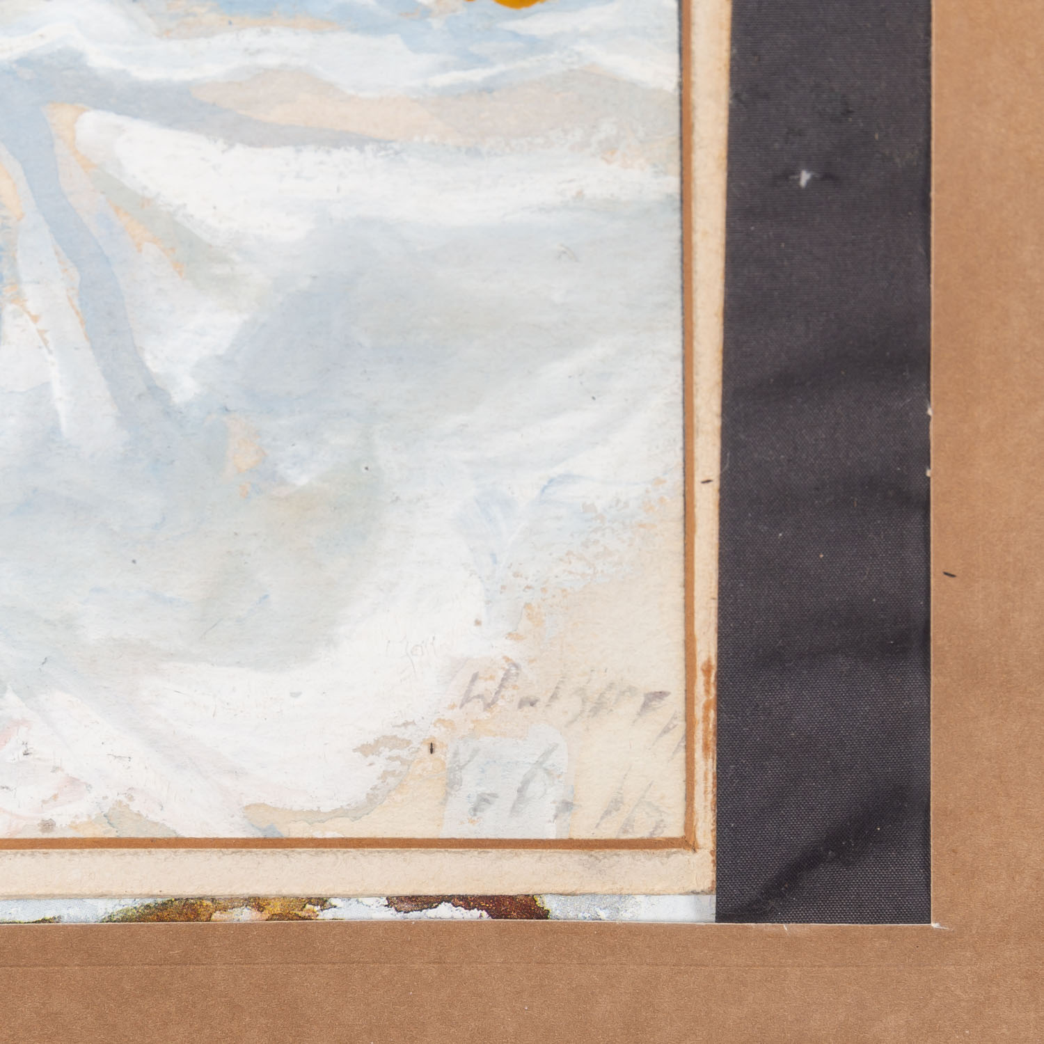 Watercolour on paper, illegibly signed, HxW: 28/18 cm. Signs of age.frame. HxW: 42/32 cm.