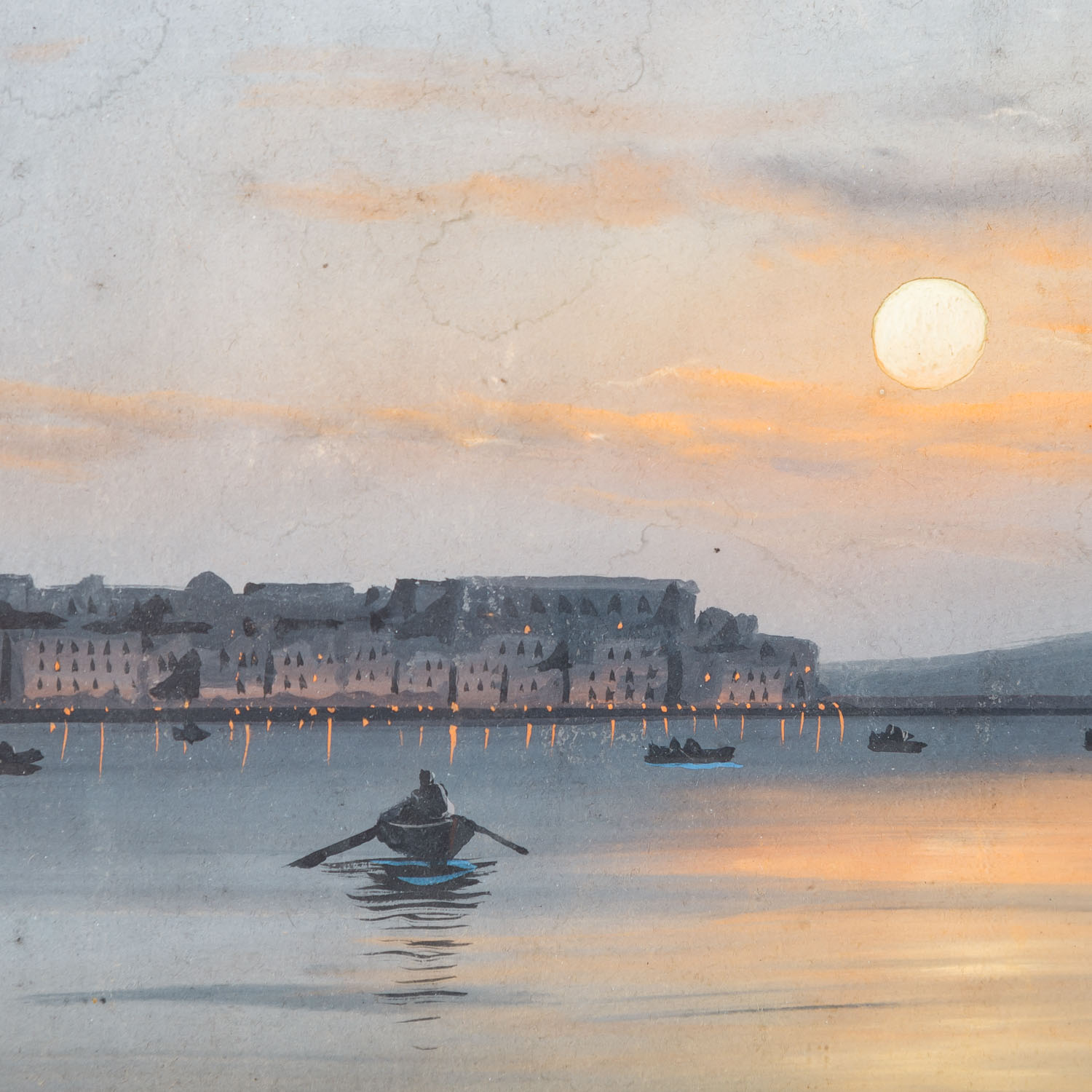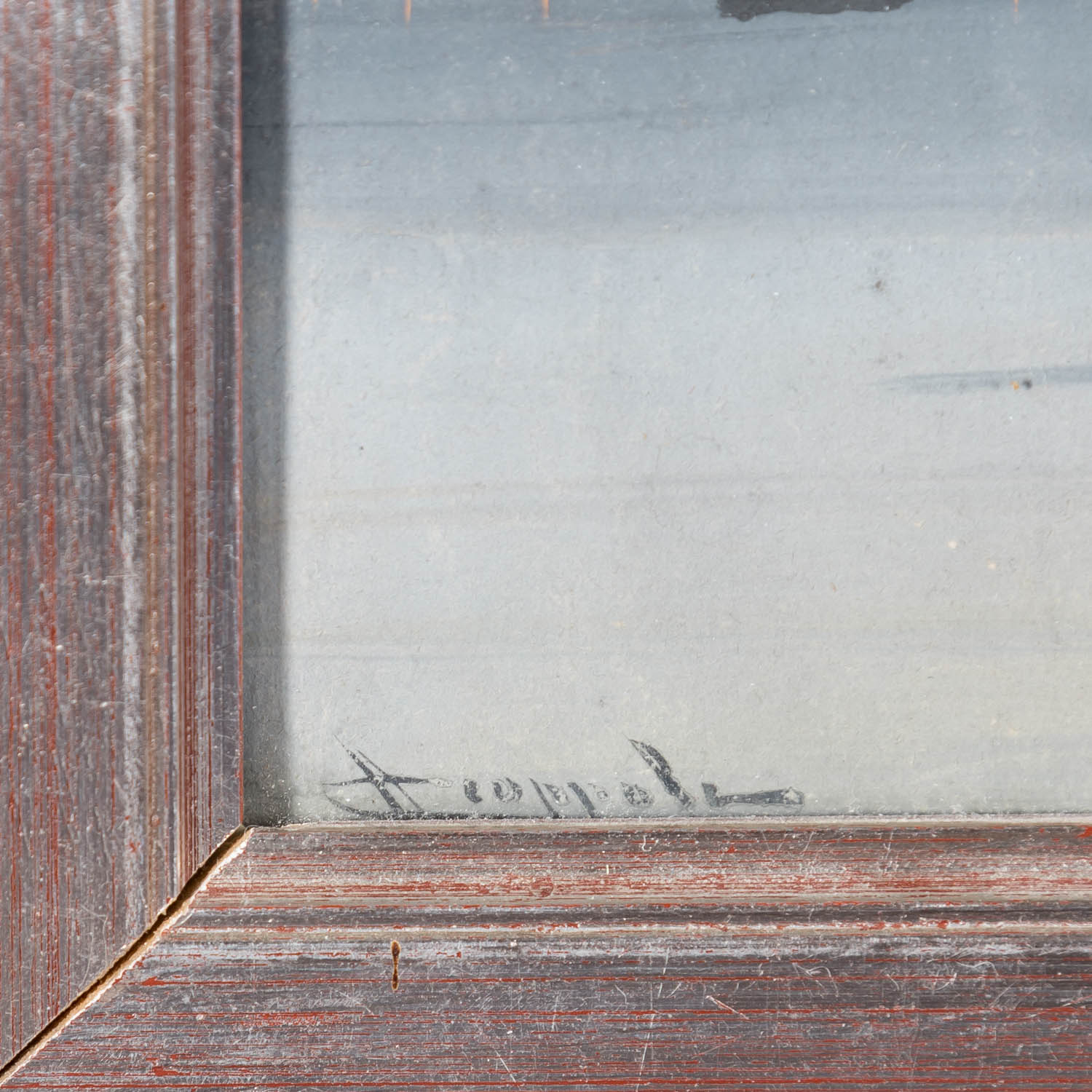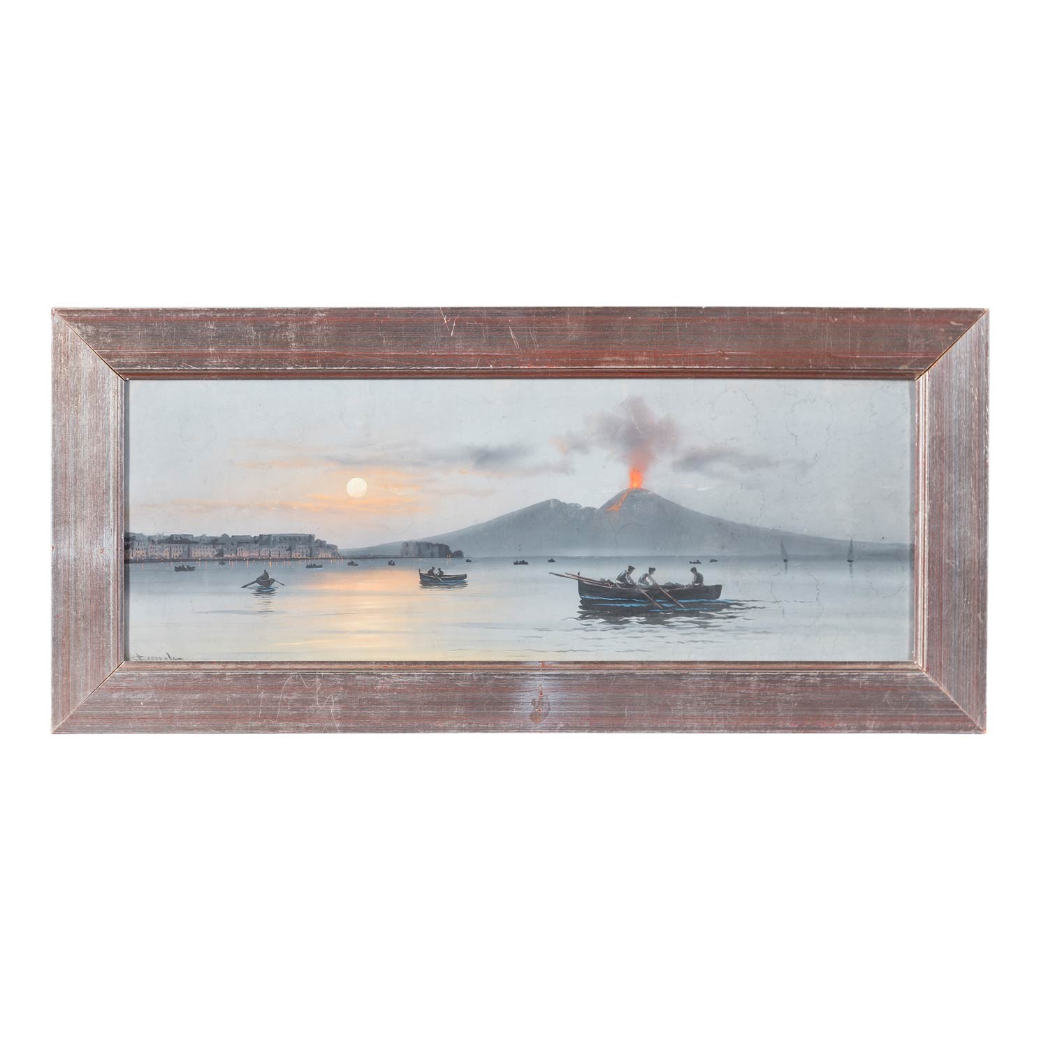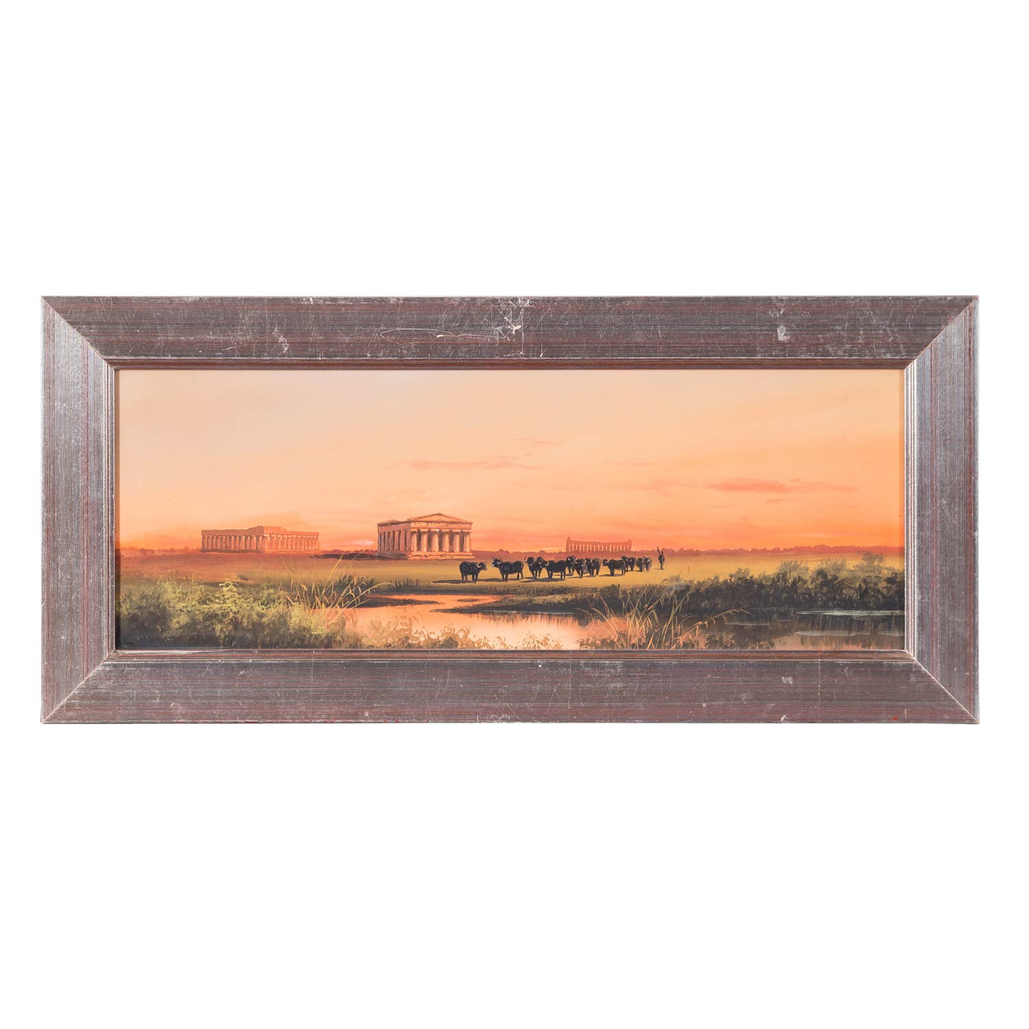 Gouache, illegibly signed, HxW: 19/50 cm. Signs of age, partly soiled, framed behind glass, HxW: 27/57 cm.
