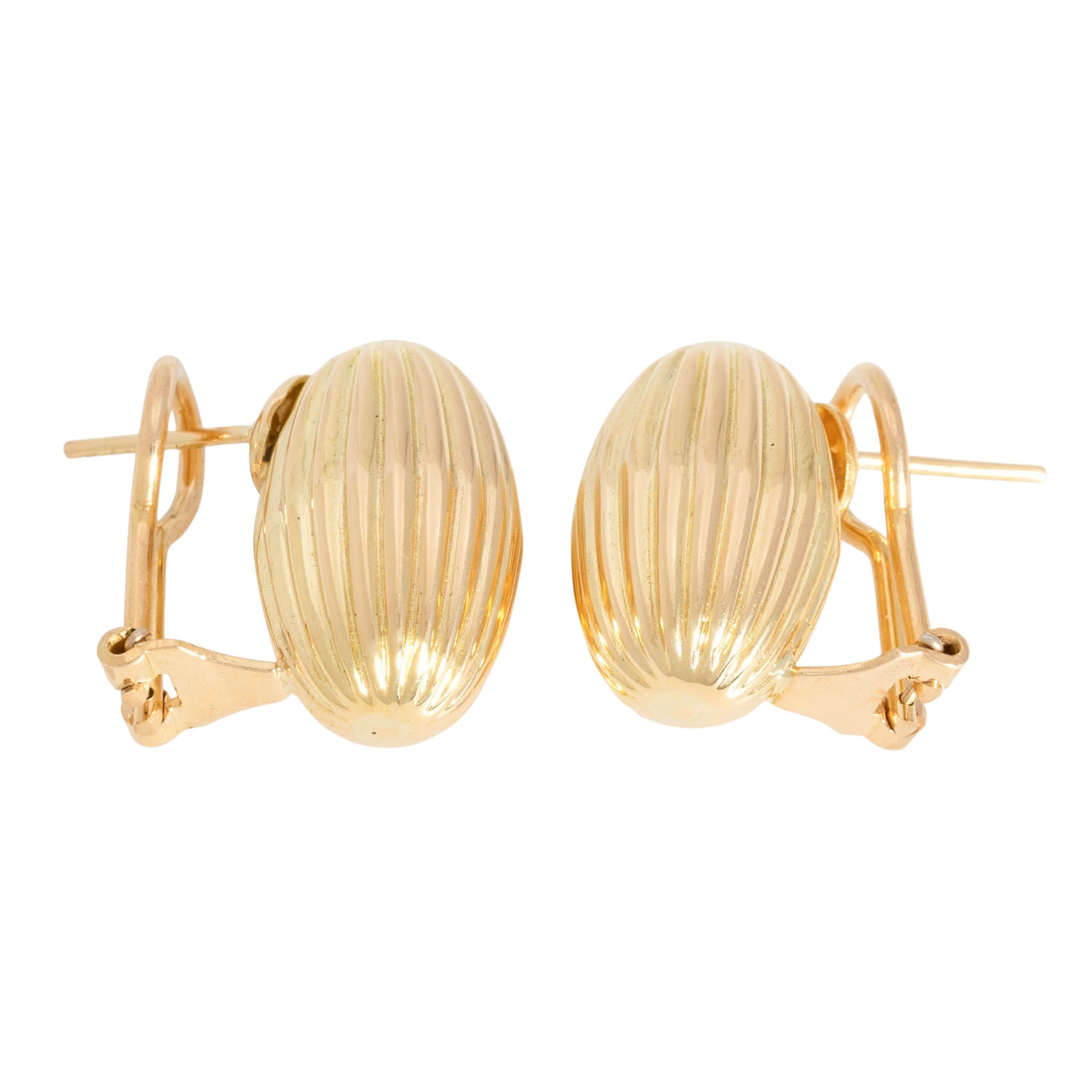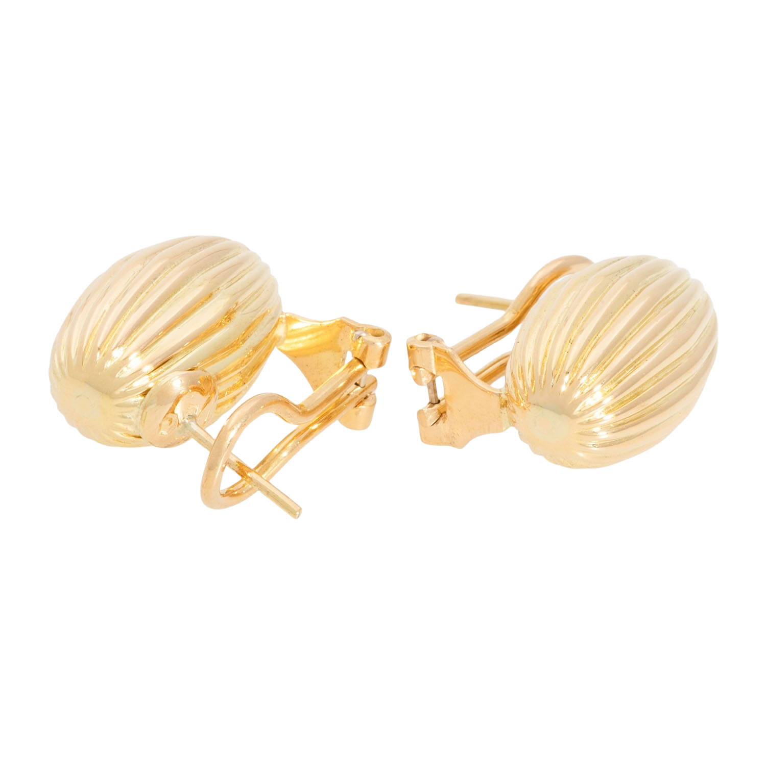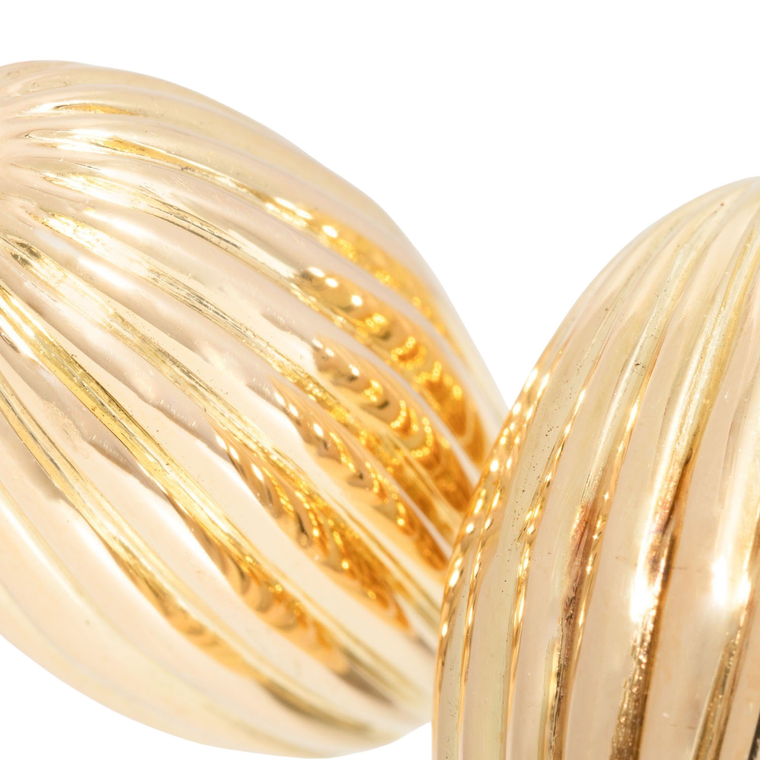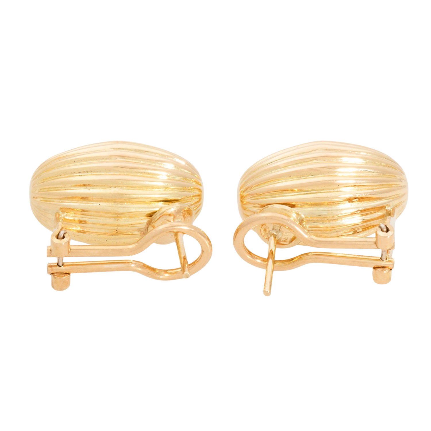 Pair of clip ear studs 'Grooved Olive', 18K yellow gold, 10.8 g, L x W: 21 x 13 mm, with clip pad out of silicon, 20th, 21st century, minor signs of wear.