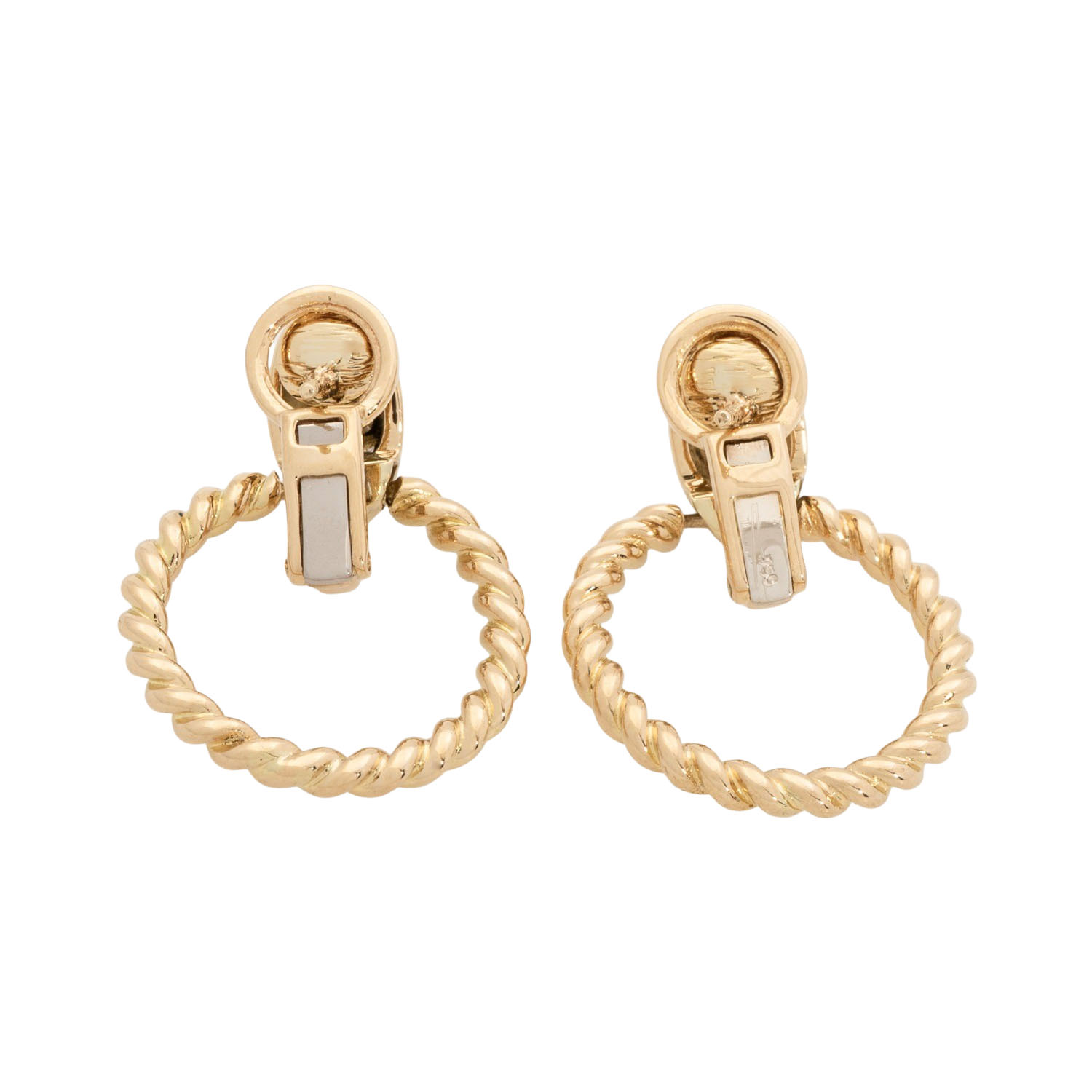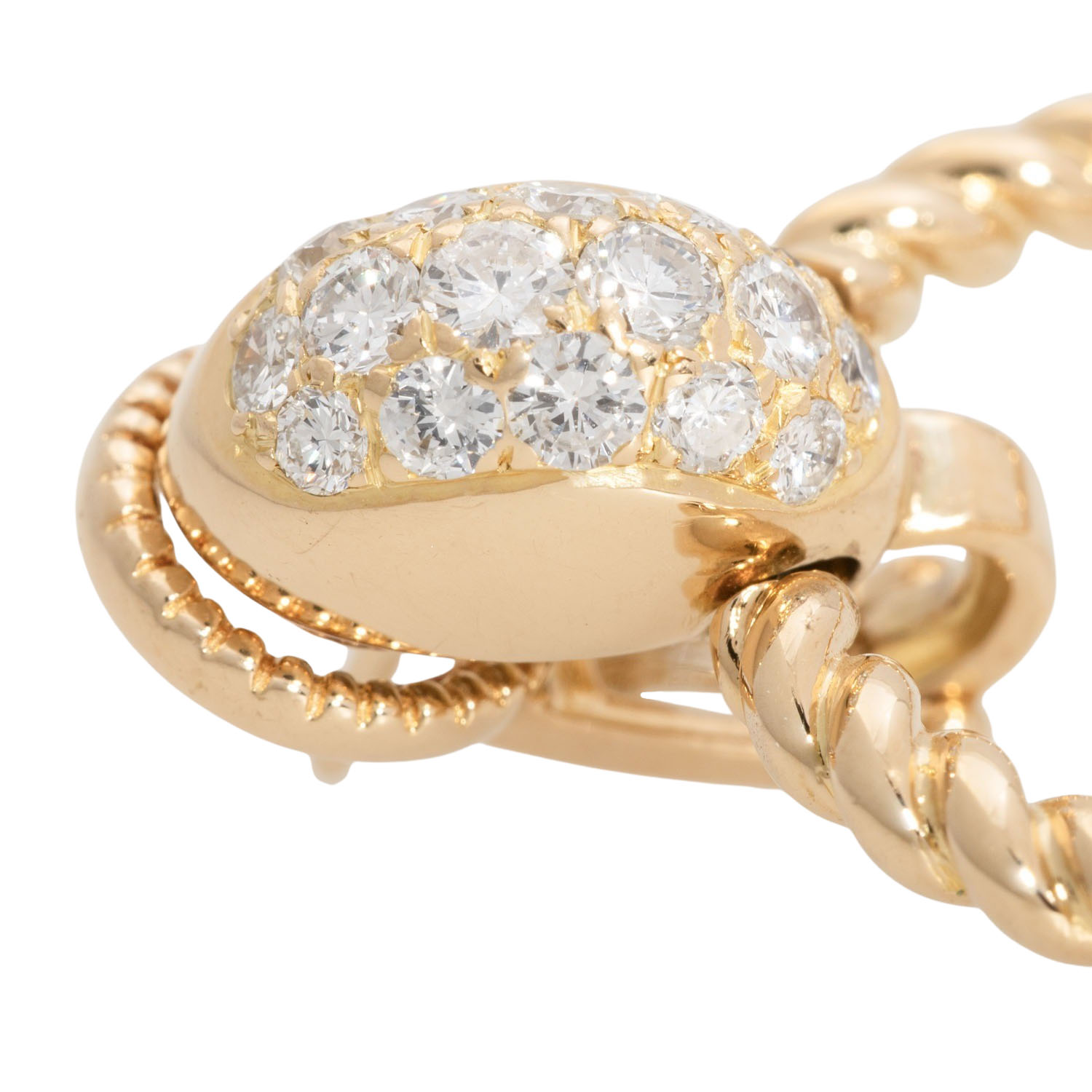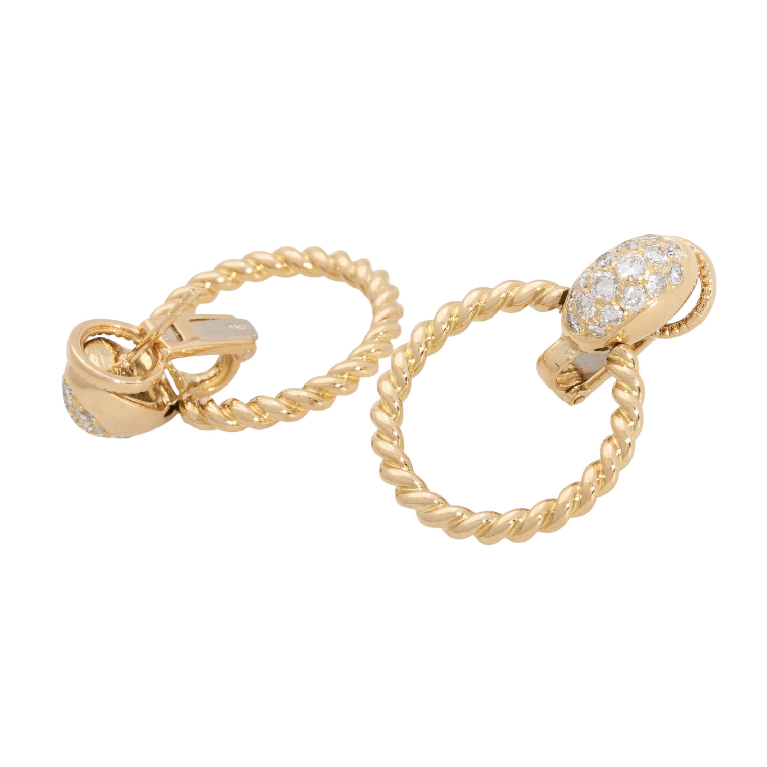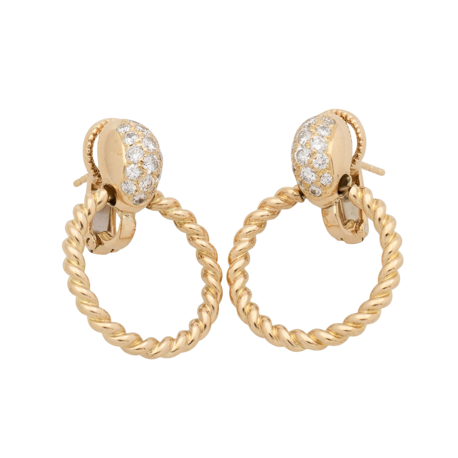 Pair of stud clip earrings with 32 brilliant-cut diamonds totalling approx. 0.78 ct, WHITE (H)/VS, pavé set, 1 stone chipped, 18K yellow gold, 14.3 g, L: approx. 30.3 mm, W: approx. 7.3 - 21.6 mm, 21st century, minimal signs of wear.
