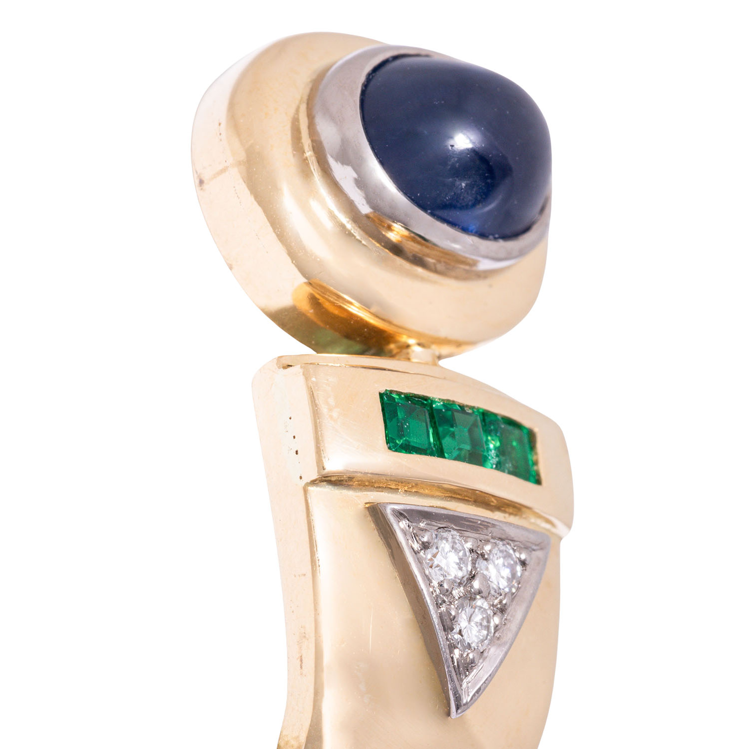 Pair of clip earrings with 2 oval sapphire cabochons,