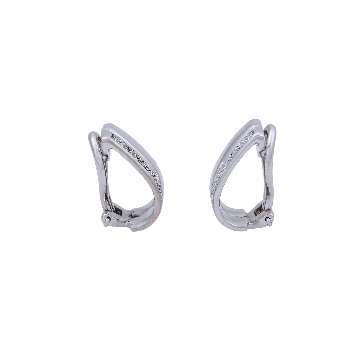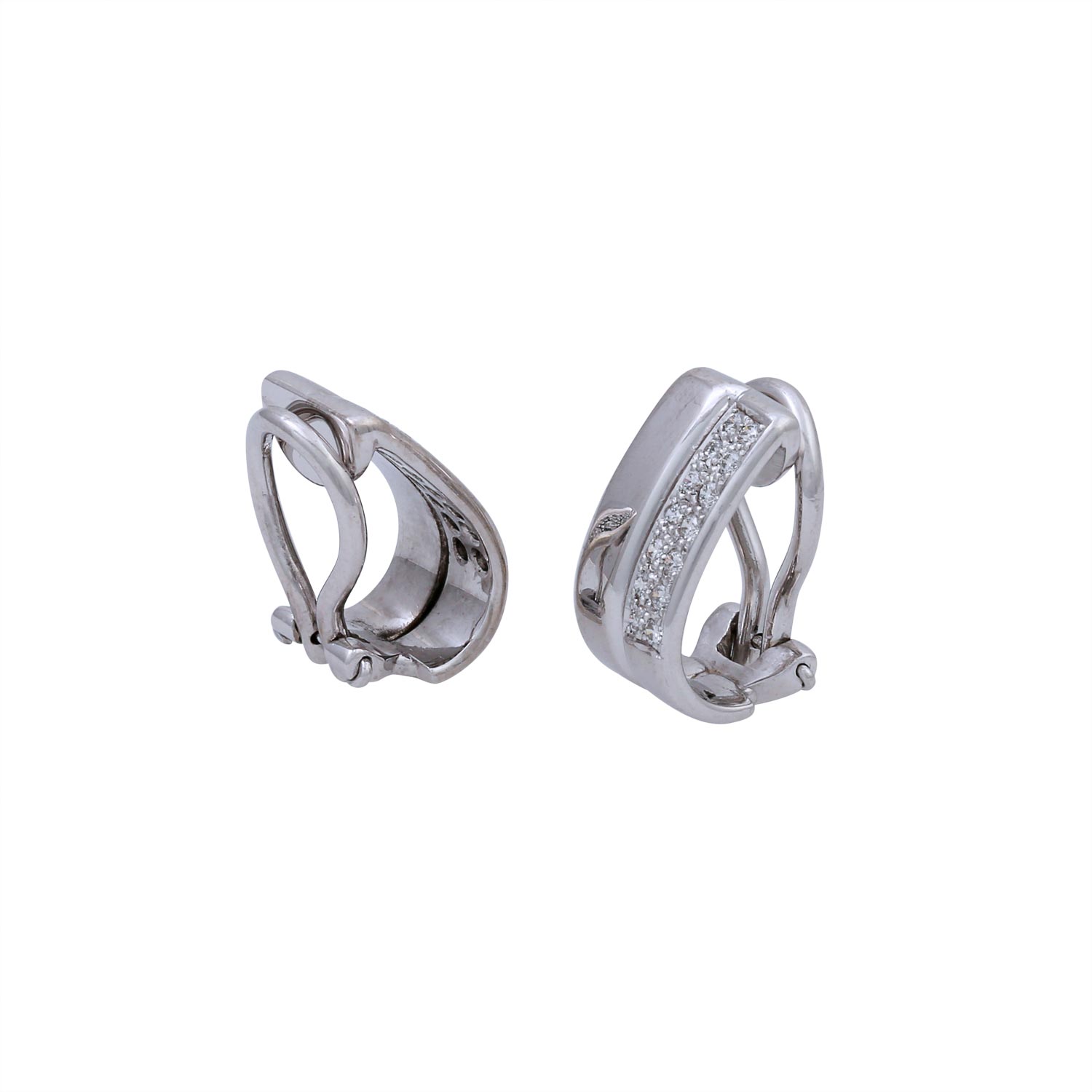 Pair of hoop earclips with 28 brilliant-cut diamonds totall. ca. 0.14 ct, good colour and clarity, 18K WG, 7 g, L: ca. 1.5 cm, W: ca. 8 mm, end of 20th century, minimal signs of wear.