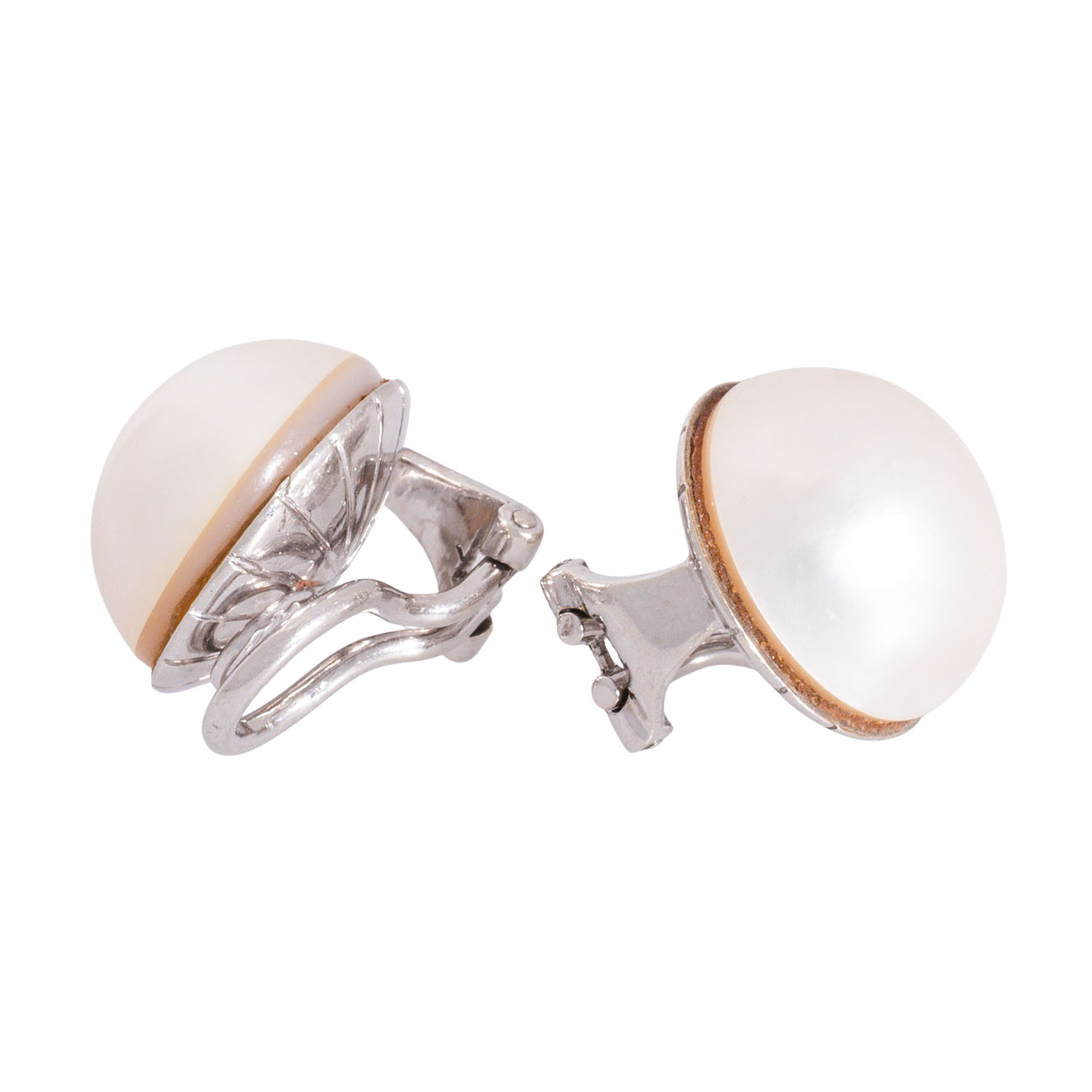 Pair of stud earrings with clip, 2 Mabe pearls,