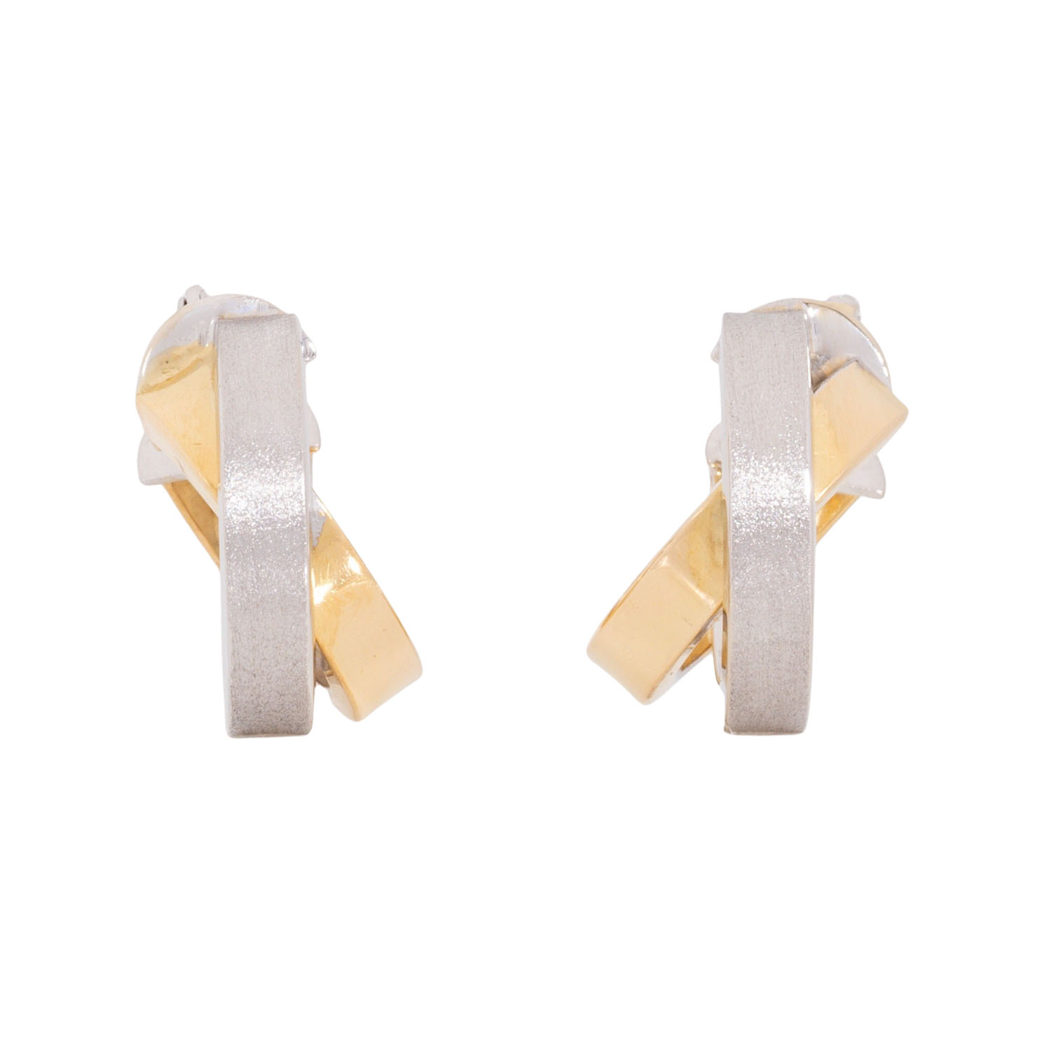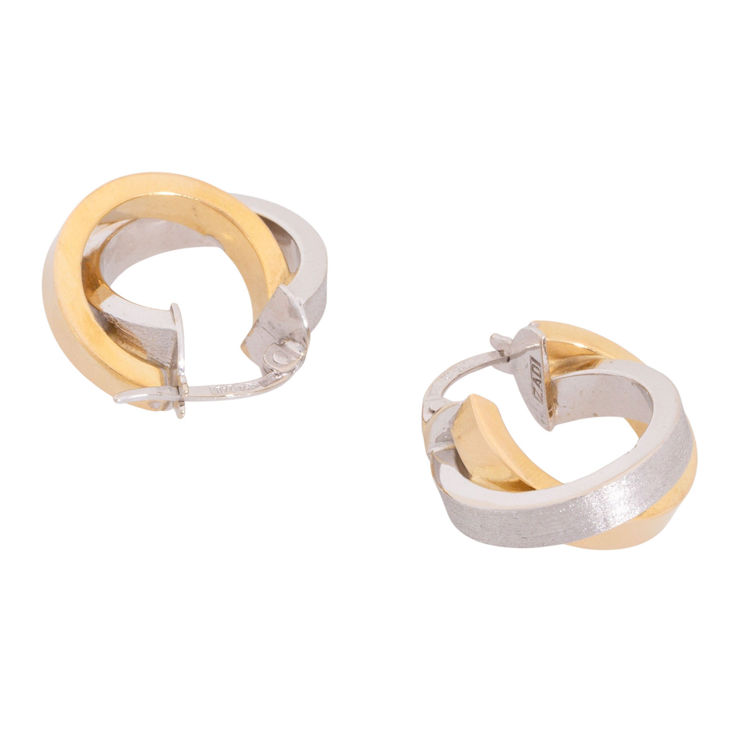 Pair of hoop earrings, 18Kyellow and white gold, 6.6 g, D: ca. 2 cm, W: ca. 9 mm, late 20th century, minimal signs of wear.