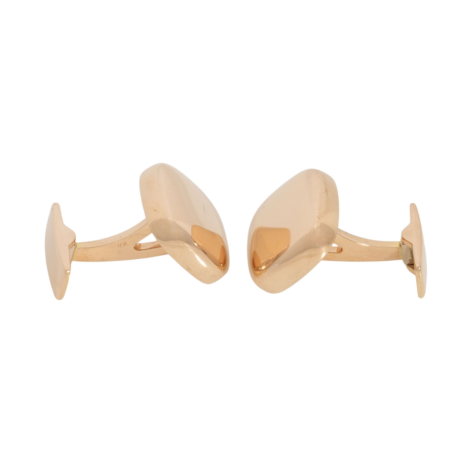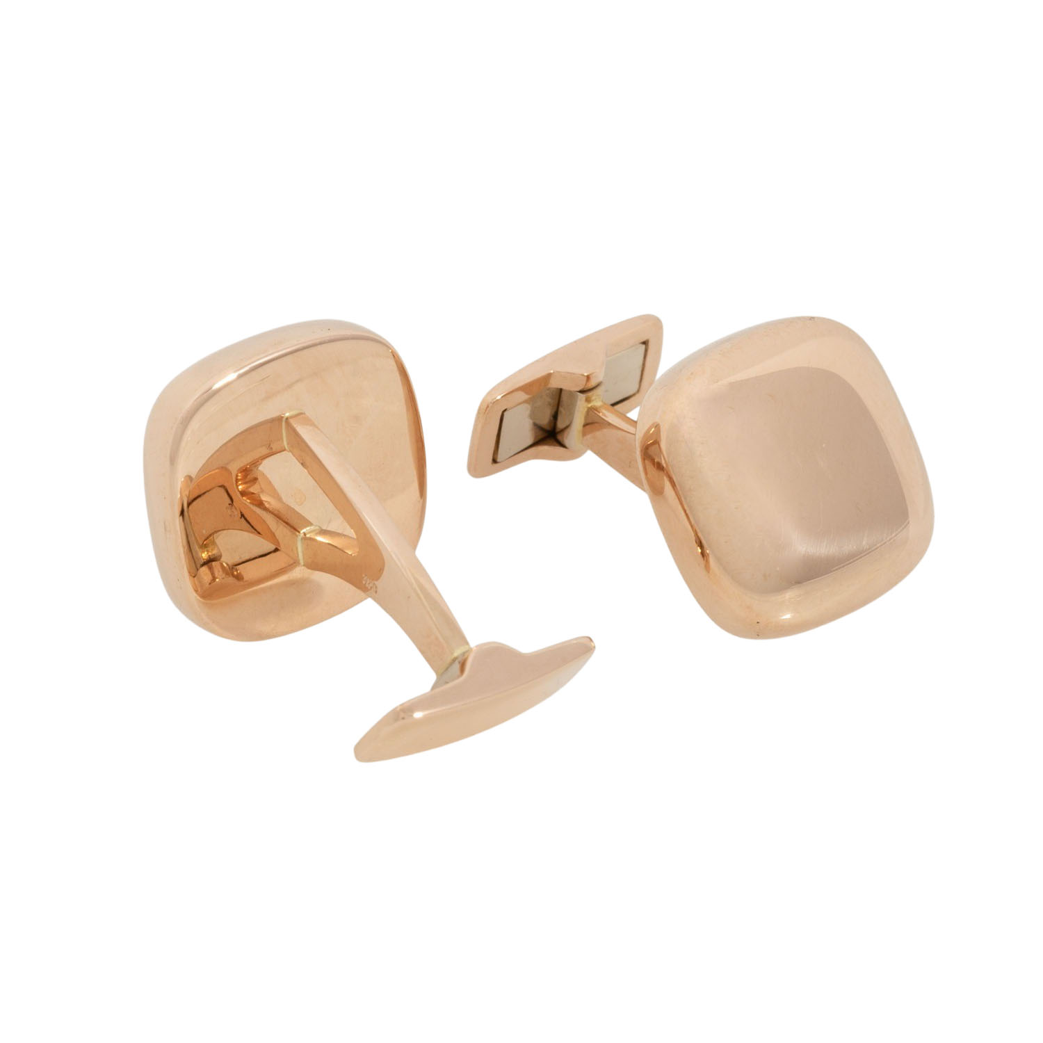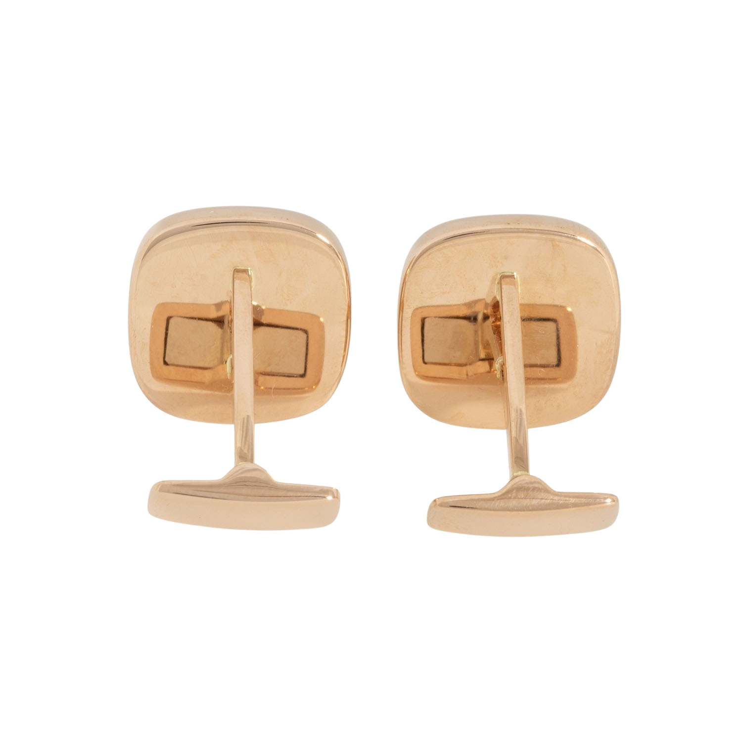Pair of cuff links, 18K yellow gold, 14.1 g, square antique, 16 x 16 mm, slightly convex surface, high polished, 20th/21st century, minimal signs of wear.