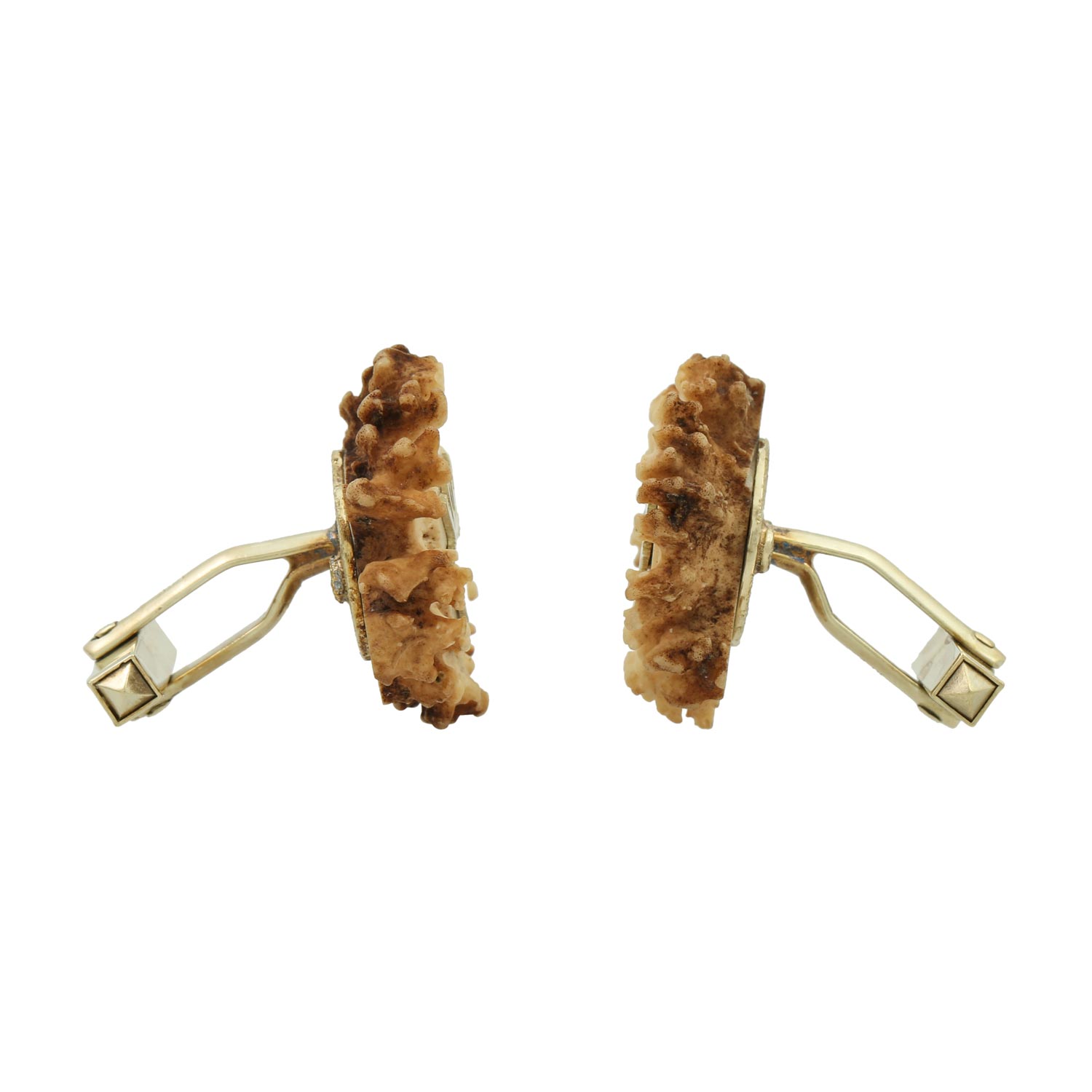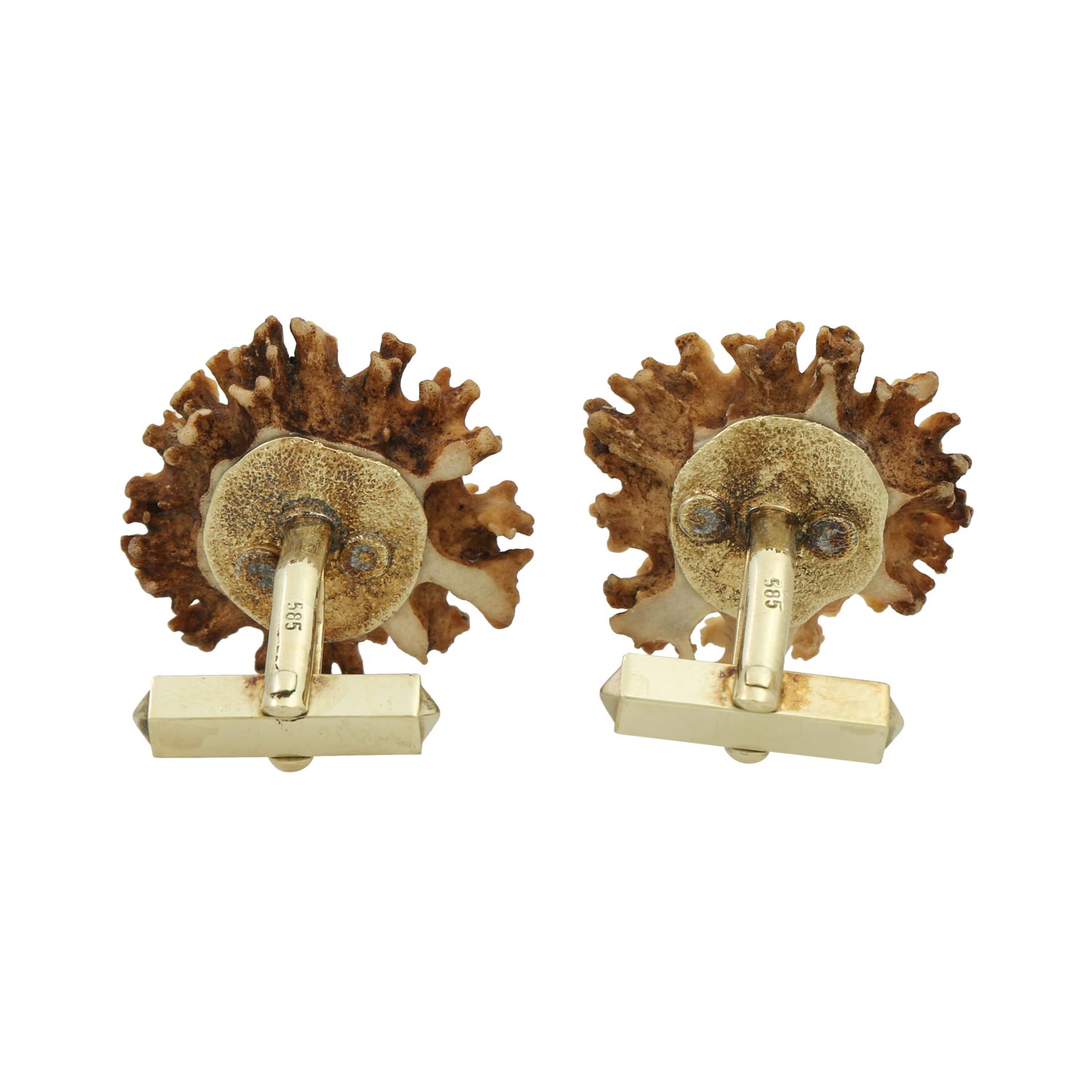Pair of cuff links with deer horn discs, 14K yellow gold, total weight 16 g, D: 2.5 cm, mid 20th century, minor signs of wear.