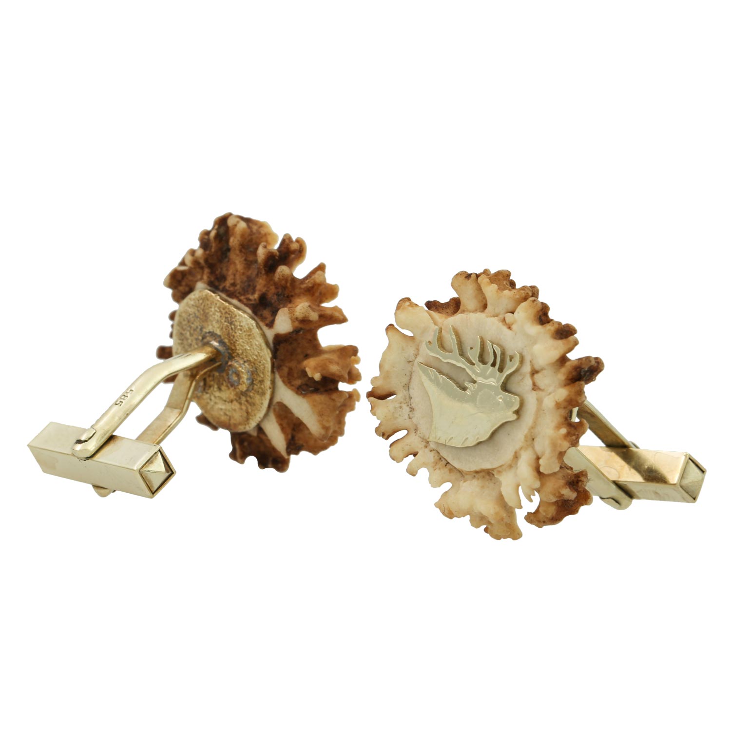 Pair of cufflinks 'roaring stag' made from horn slices,
