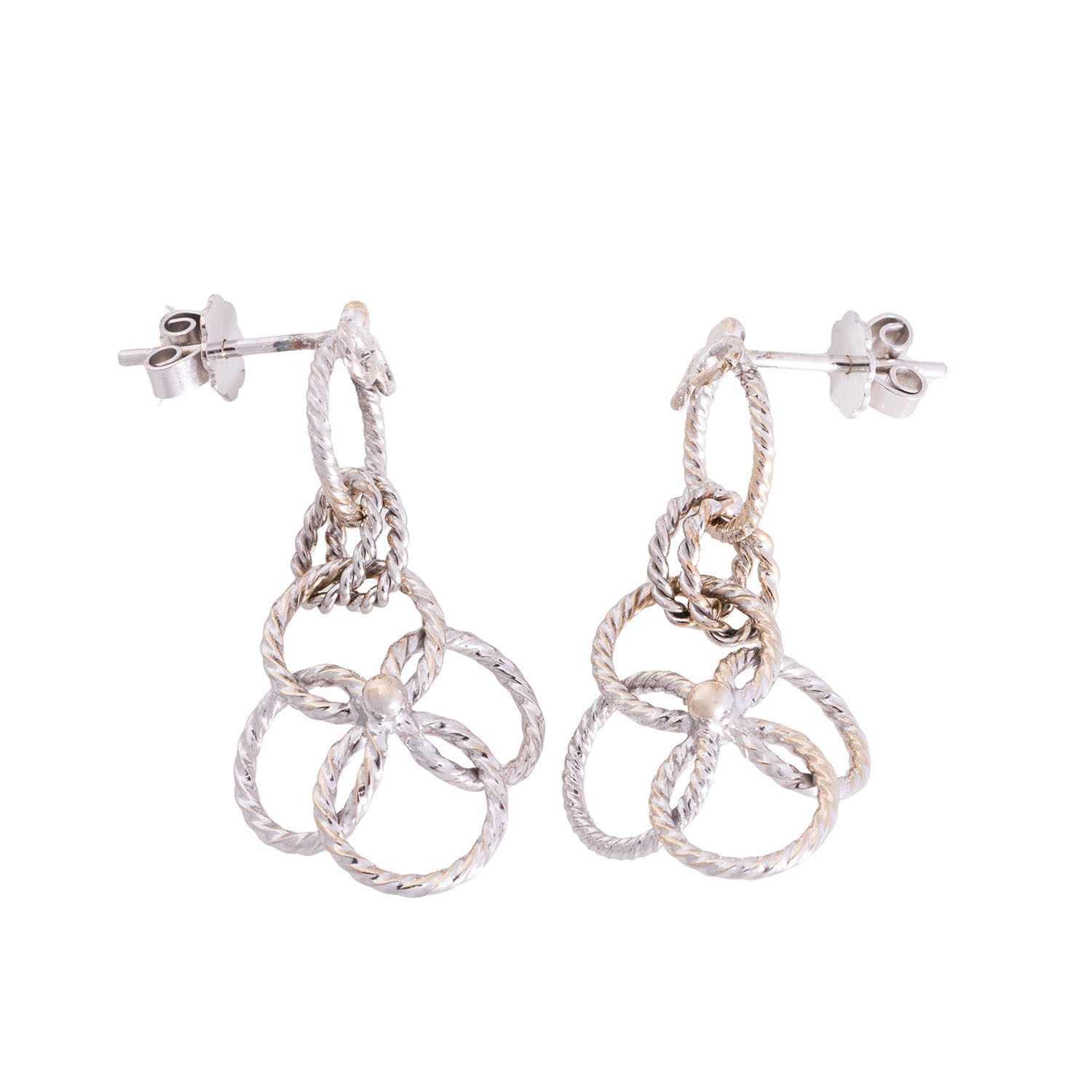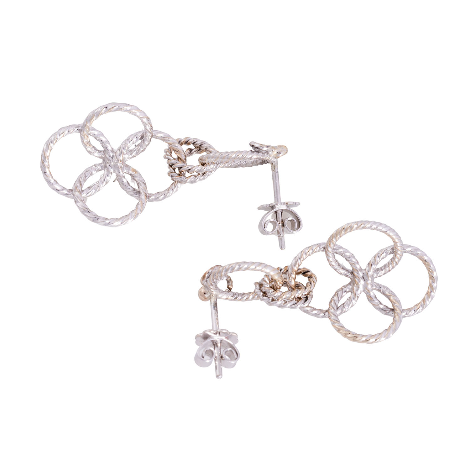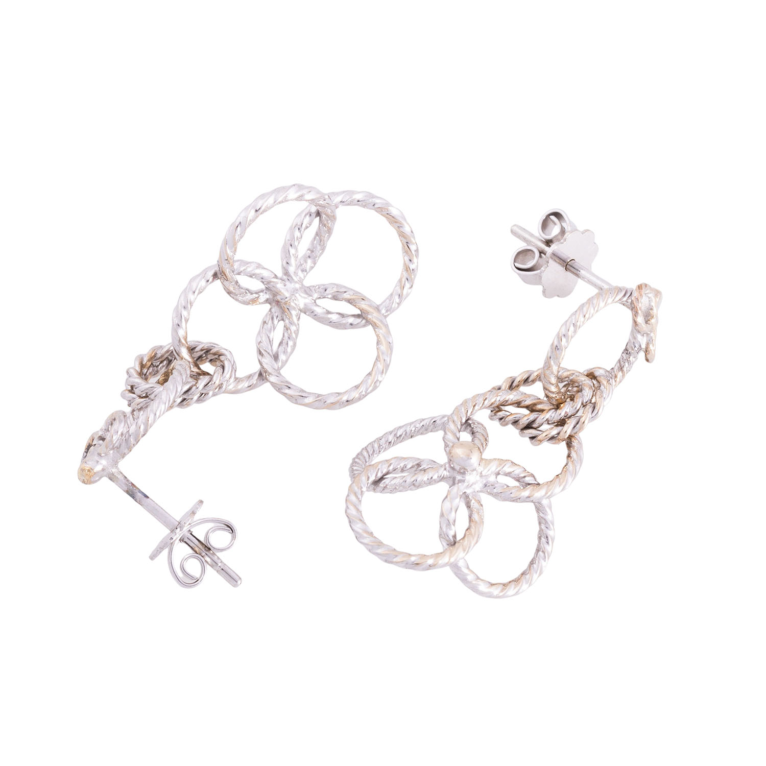 Pair of earstuds with corded eyelets, 18K white gold, 8.5 g, L x W: 38 x 18 mm, late 20th century, minimal signs of wear.