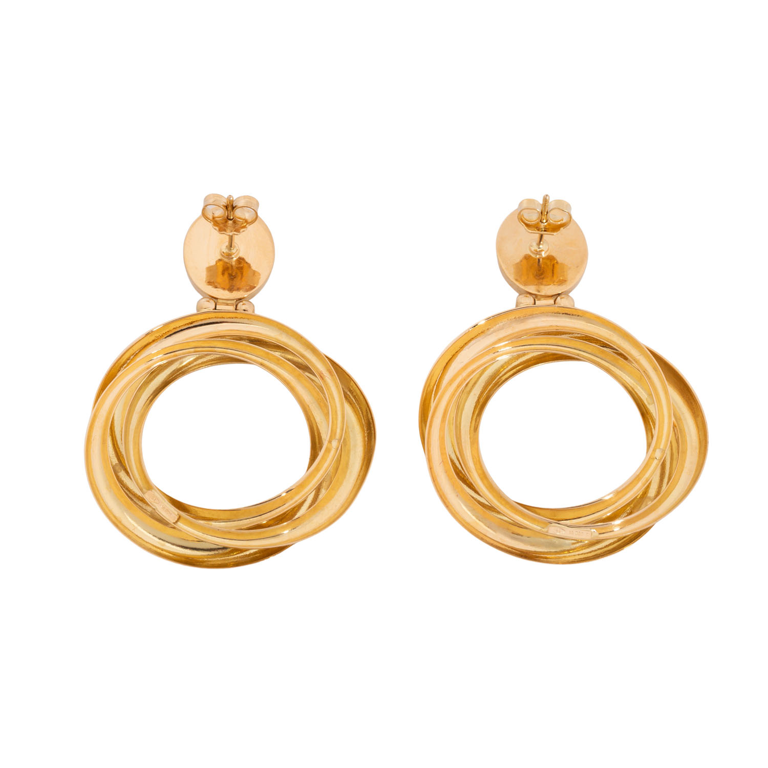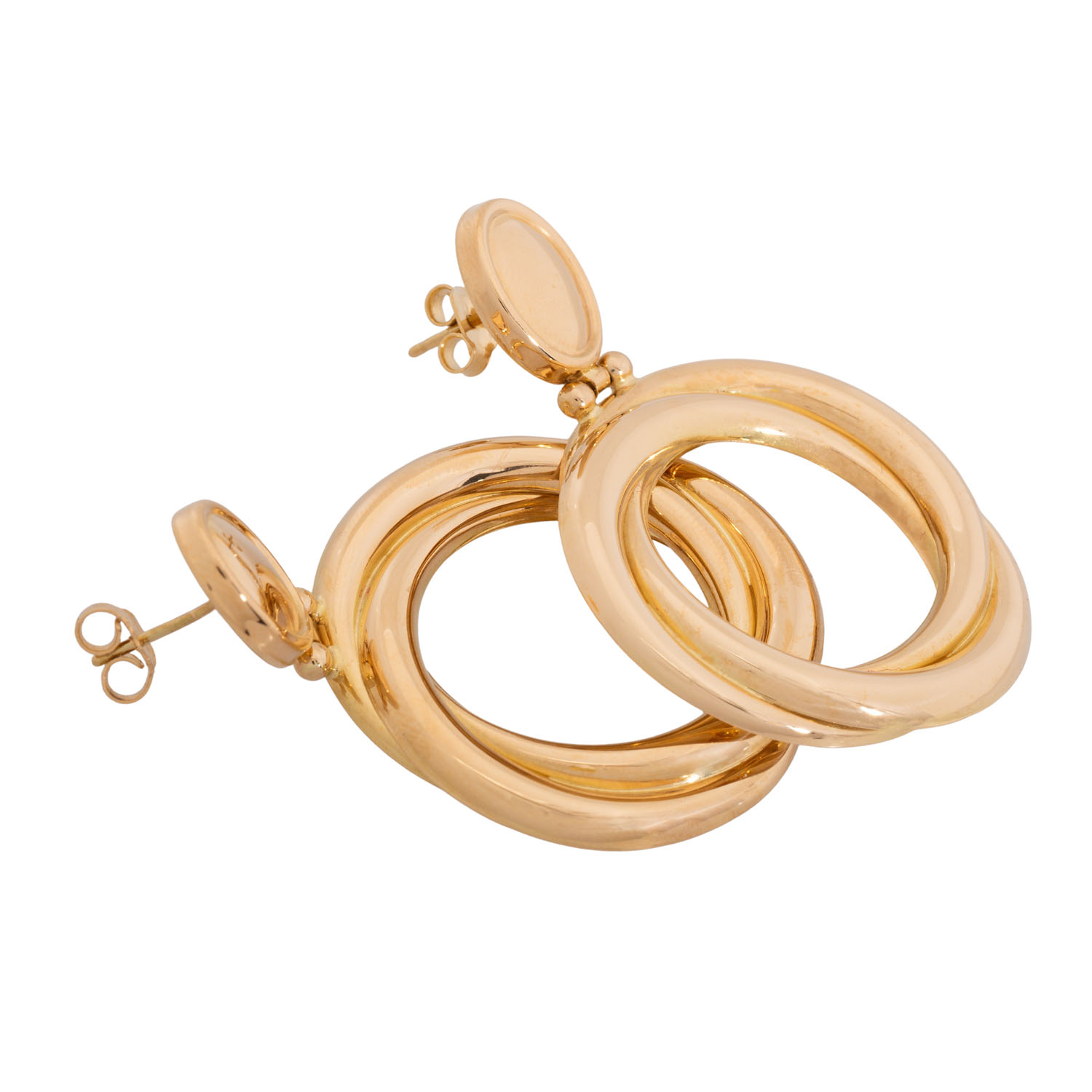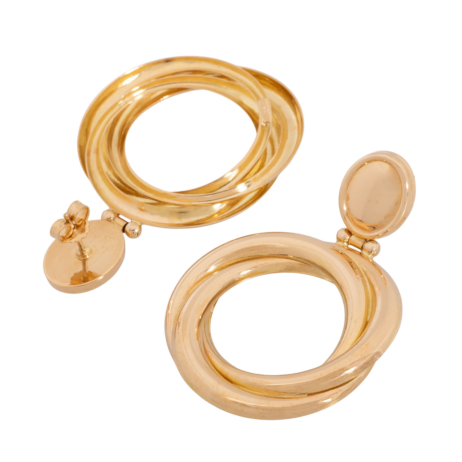 Drop earings, 18K YG, 11.7 g, L: ca. 5 cm, W: ca. 3,5 cm, late 20th century, minor signs of wear.