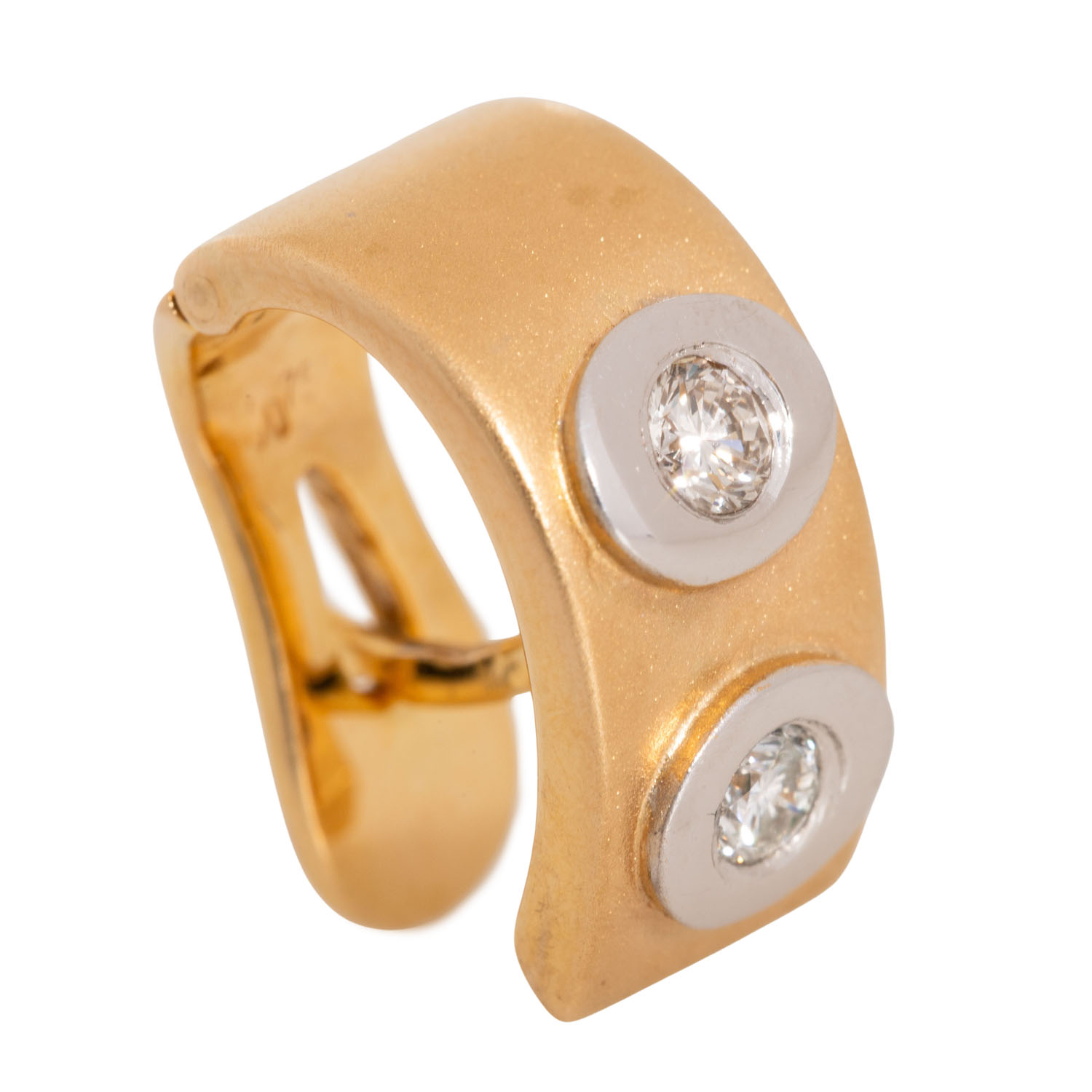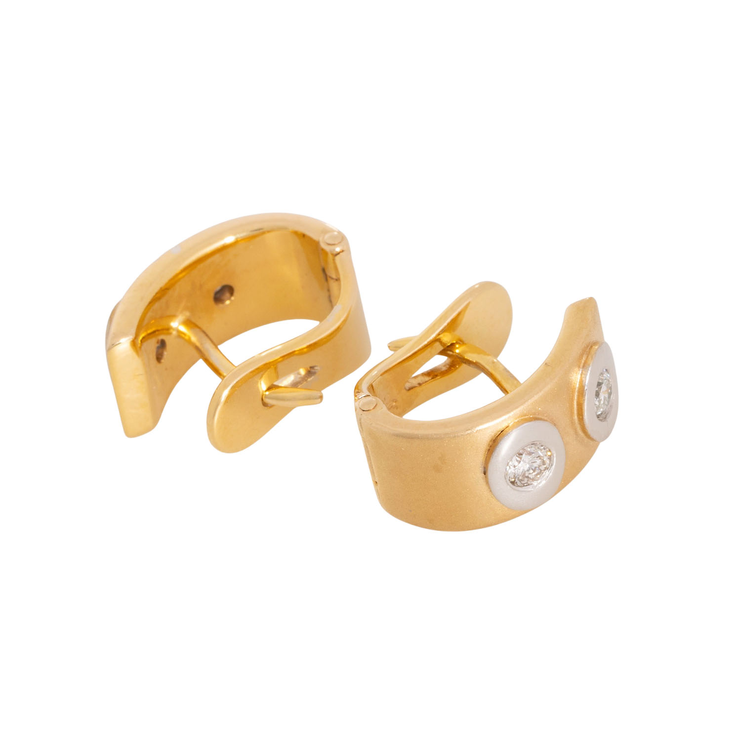 Pair of Earrings with 4 brilliant-cut diamonds totalling ca. 0.40 ct, RW- WHITE (G-H)/VS-SI, YG/WG 18K, 11.2 g, 21st century, good condition.