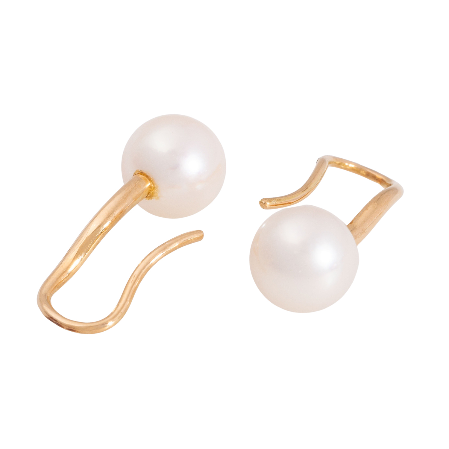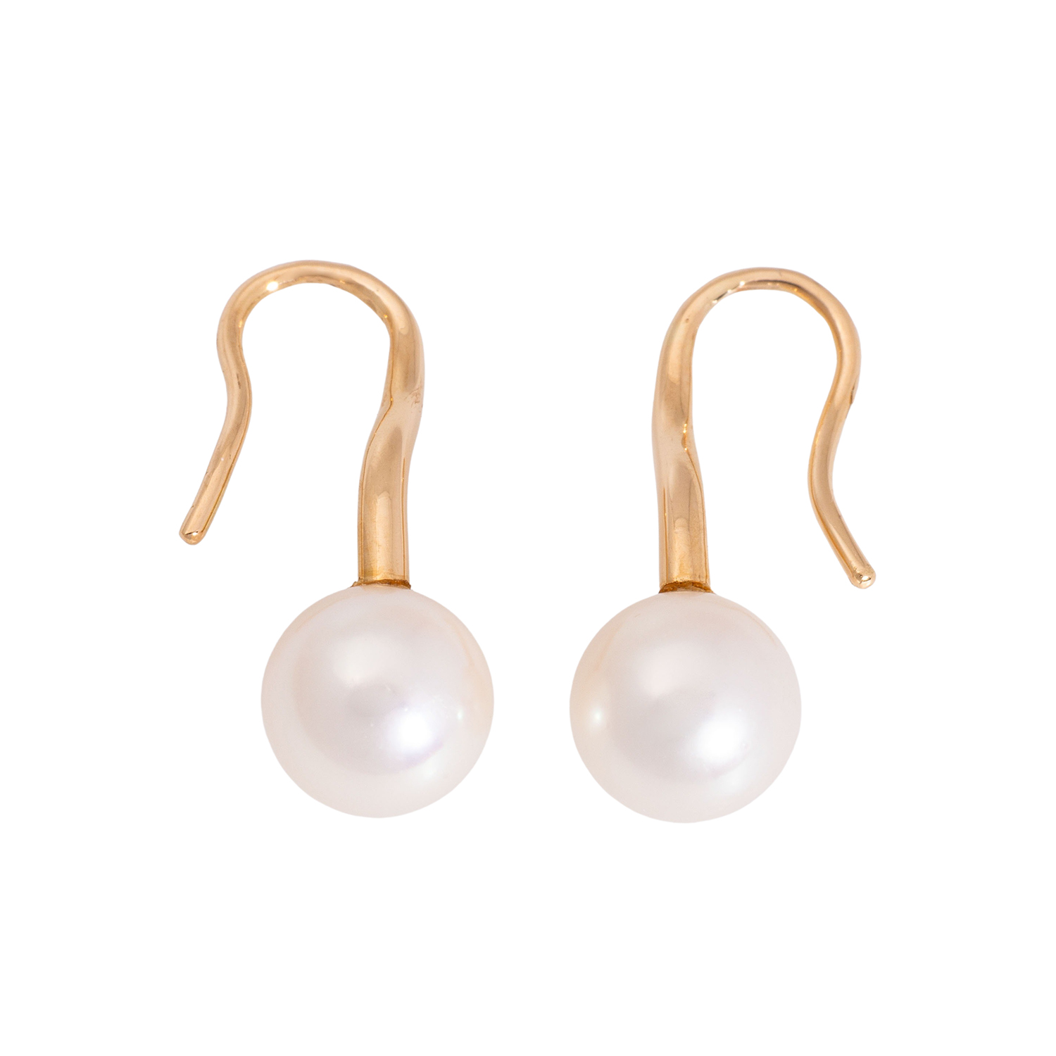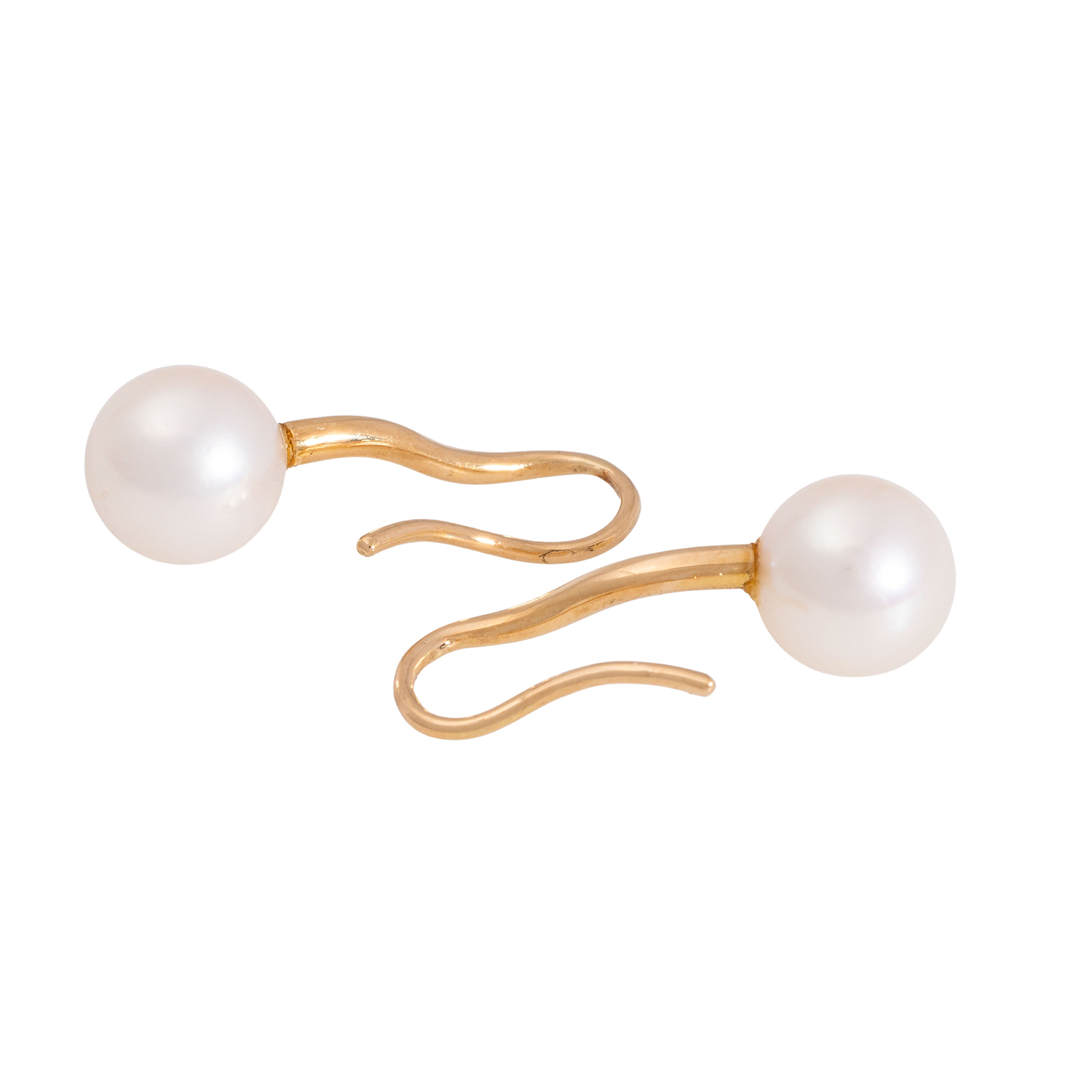 Pair of drop earrings with cultured akoya pearls ca. 8,5 mm, very nice lustre,18K yellow gold, 3 g, late 20th century, minimal signs of wear, factory price 850 €.