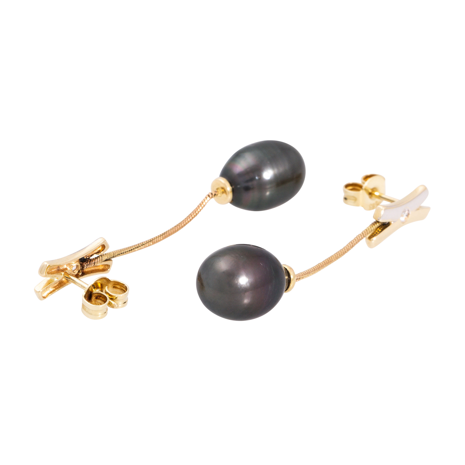 Pair of earrings with Tahitian pearls,
