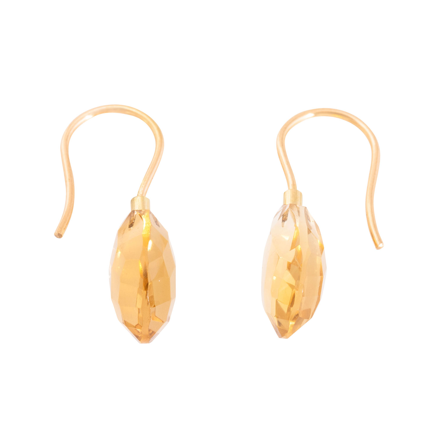 Pair of pendant earrings with citrines totalling ca. 11.06 ct, YG 18K, 3.0 g, L: 26 mm, 21st century, mint condition.