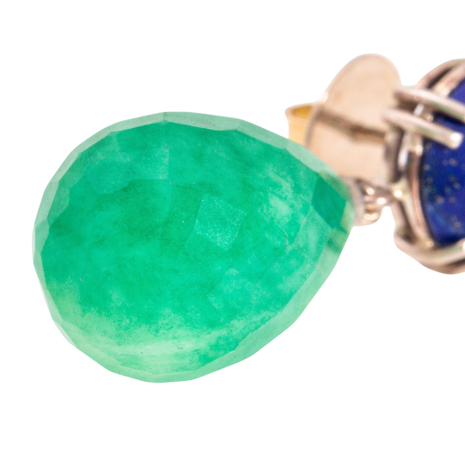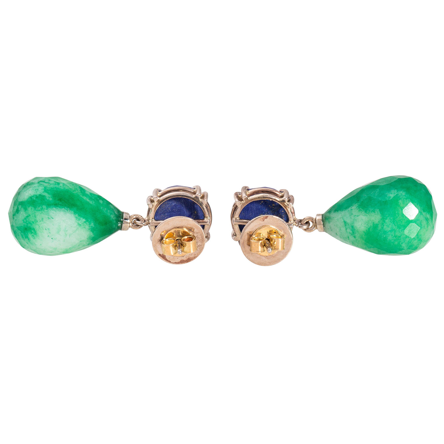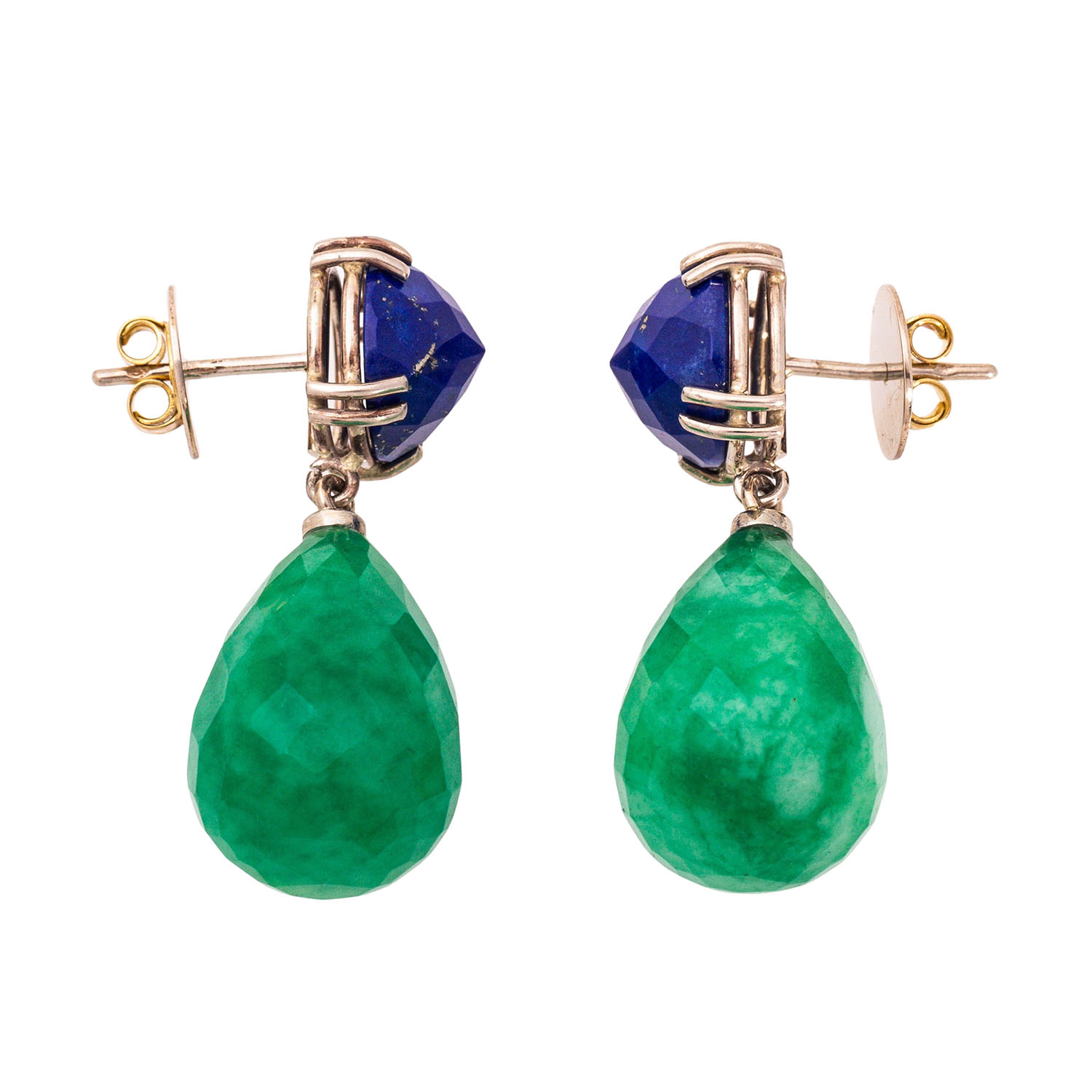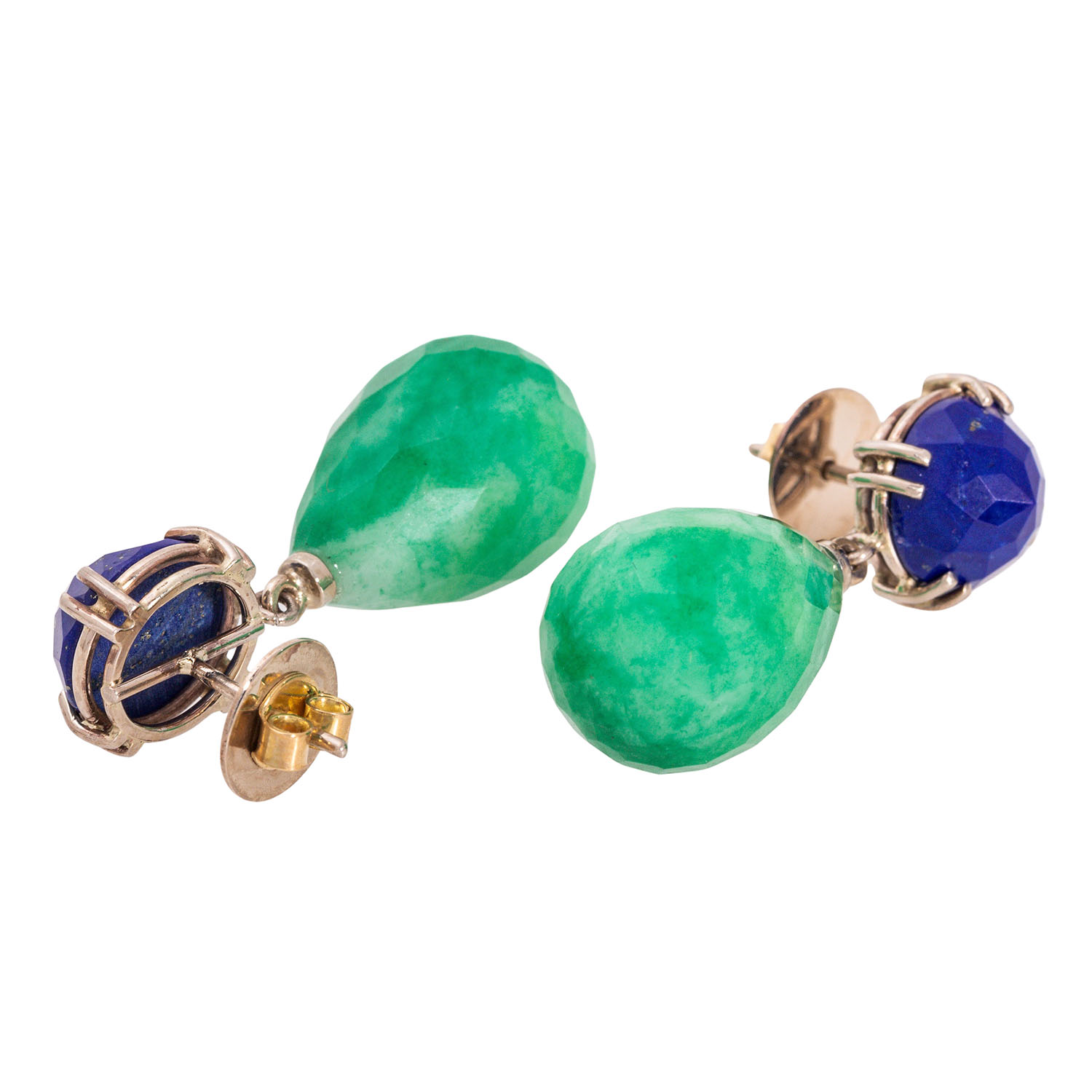 Pair of ear hangers with lapis lazuli and jade (treated), 14K WG, 12.4 gr, L: ca. 3 cm, 20th/21st century, minimal signs of wear.