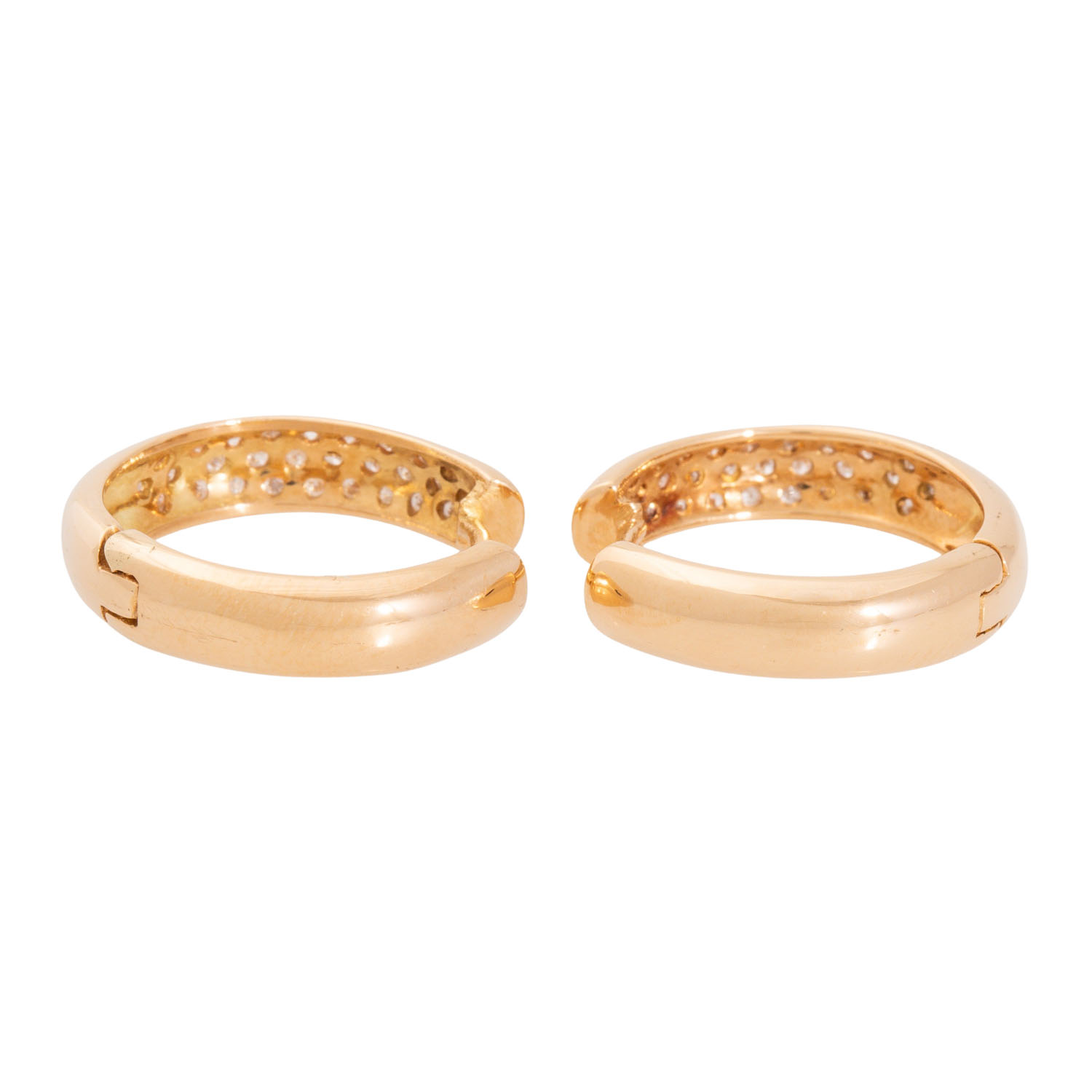 Pair of hinged hoop earrings with 56 brilliant-cut diamonds,