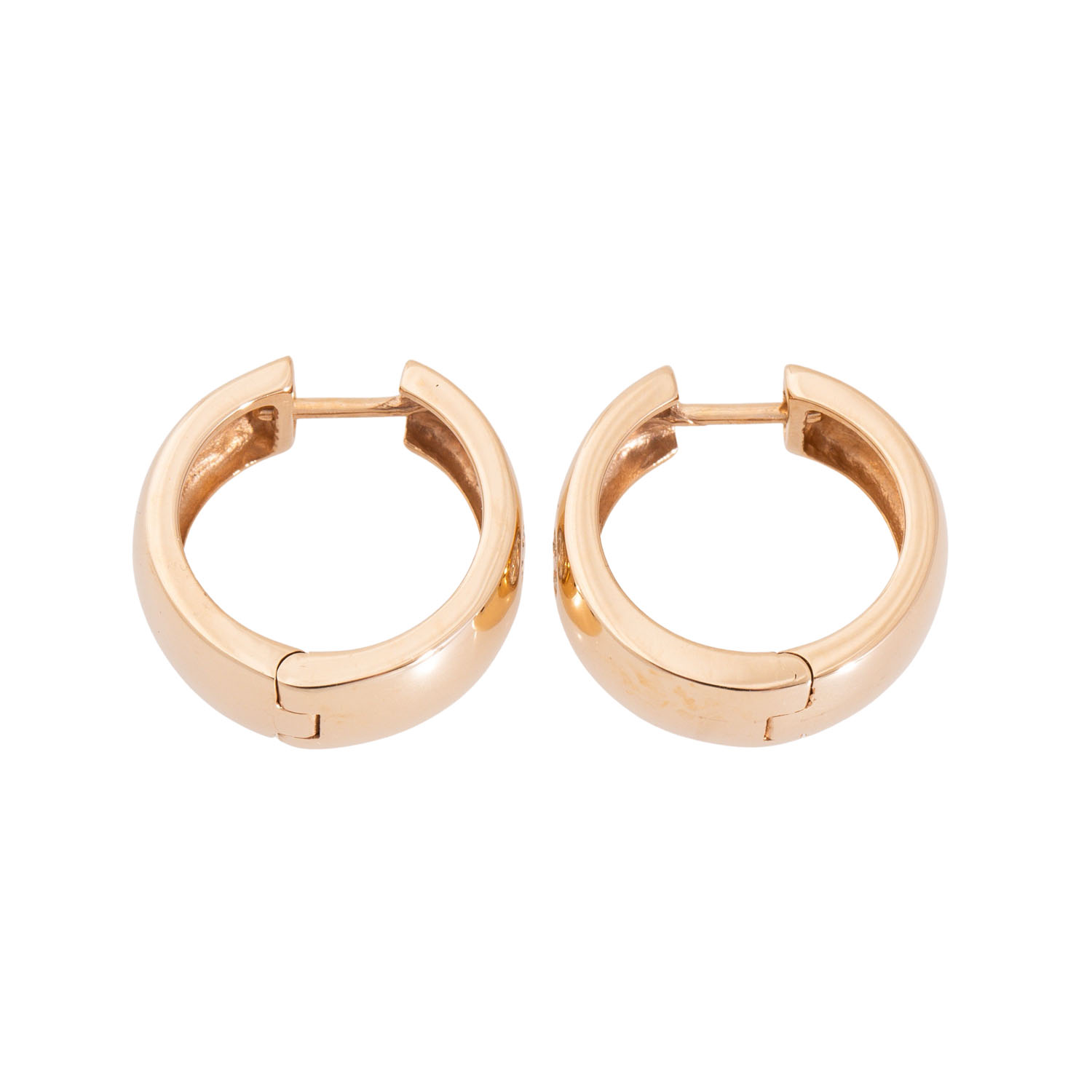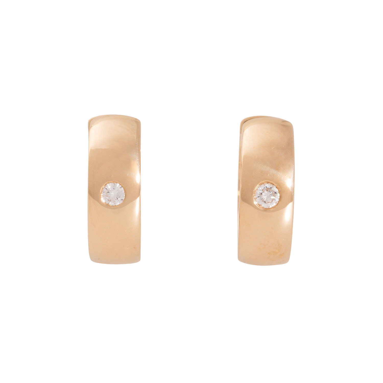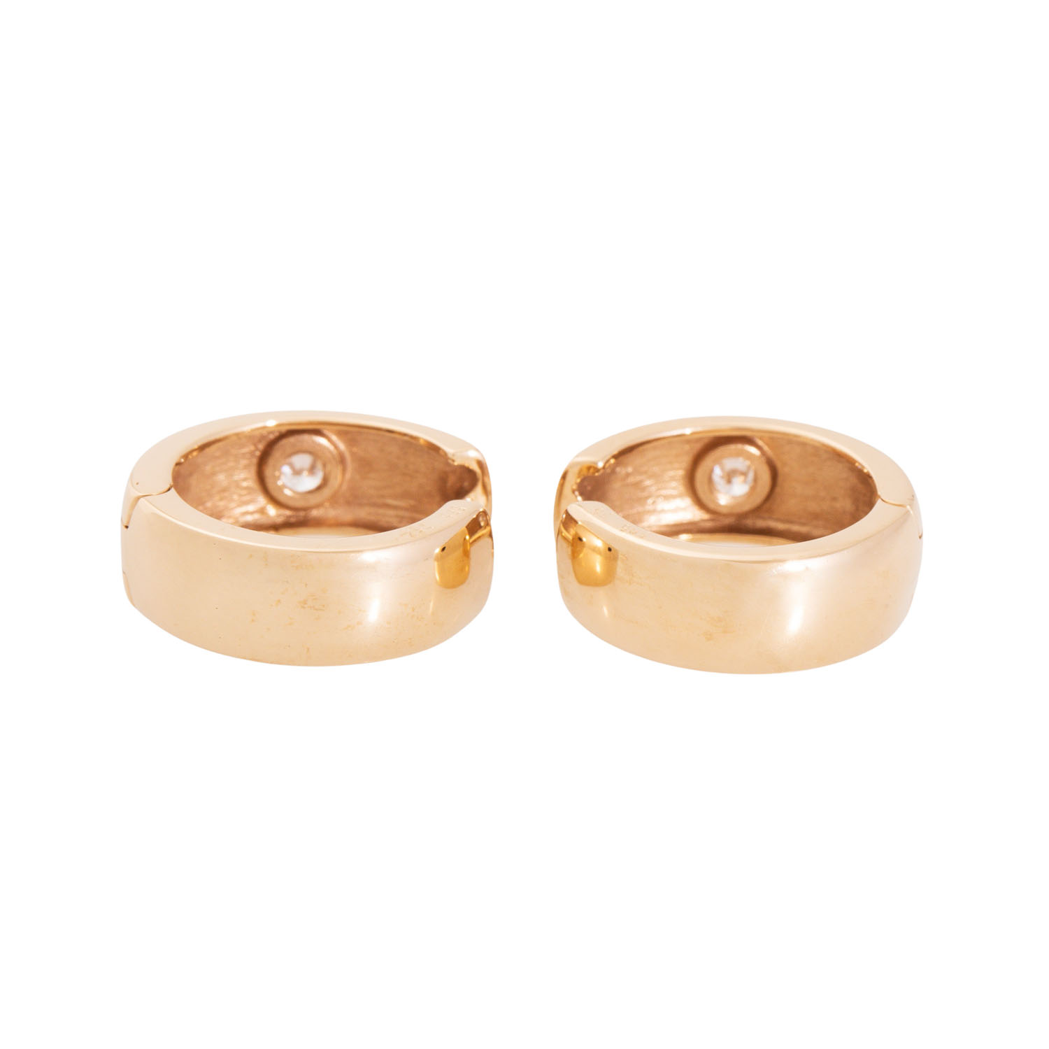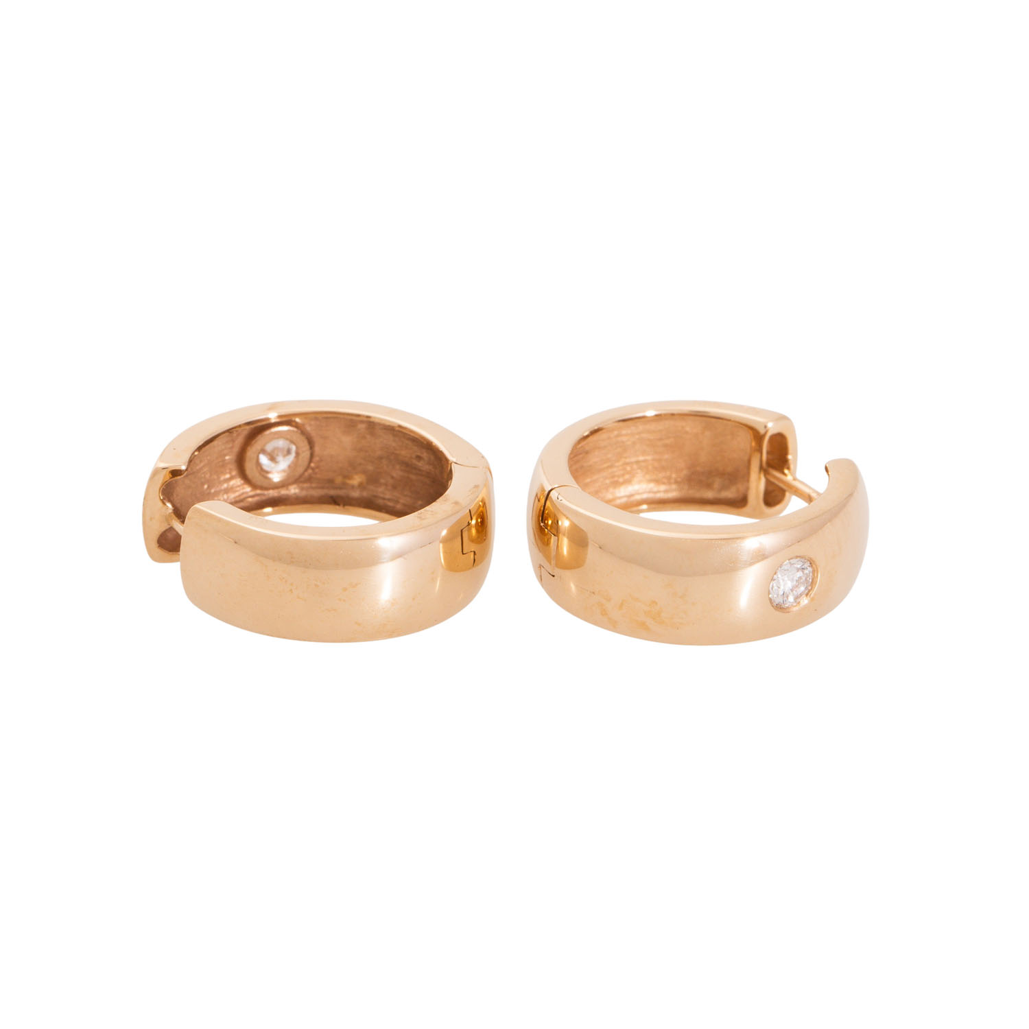 Pair of hoop earrings with 2 brilliant-cut diamonds totalling approx. 0.14 ct, WHITE-STW (H-J)/SI, 14K yellow gold, 5.7 g, D: approx. 13.2 mm, W: approx. 6.1 mm, 21st century, minimal signs of wear.