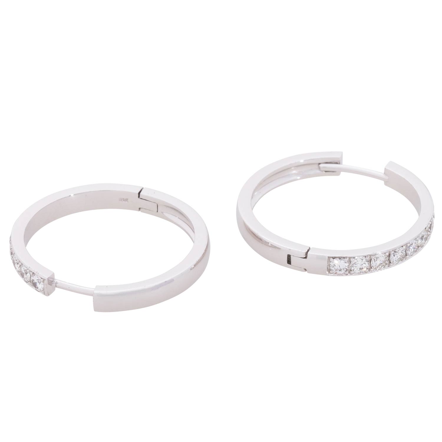 Pair of hoop earrings with brilliant-cut diamonds totalling ca. 1.19 ct, RW (G)/VS-SI, WG 18K, 8.6 g, D: 25 mm, 21st century, mint condition.