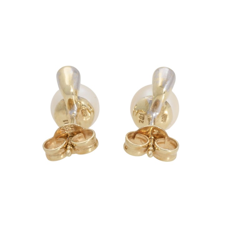 Pair of stud earrings with 2 Akoya cultured pearls,