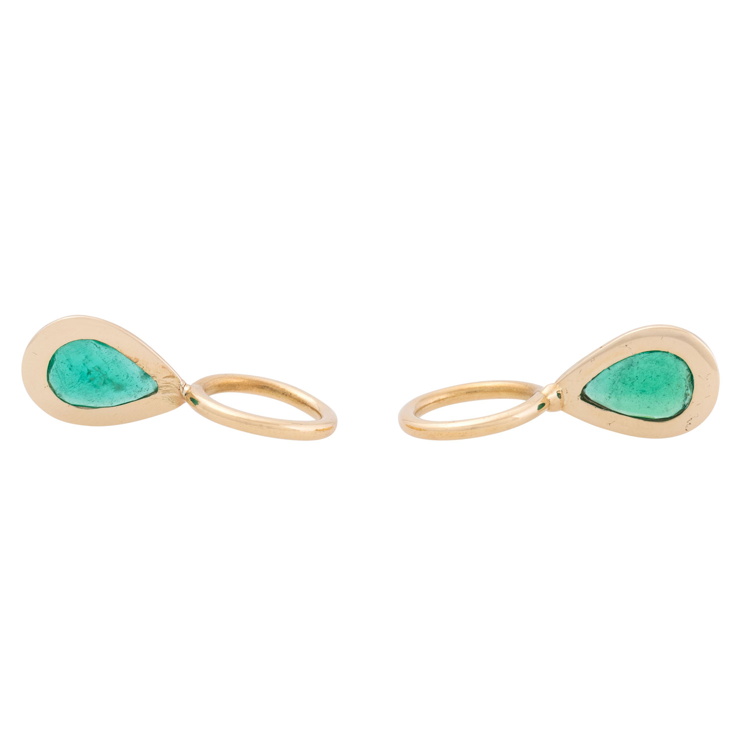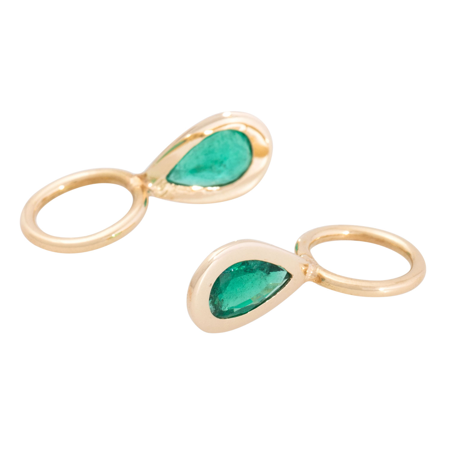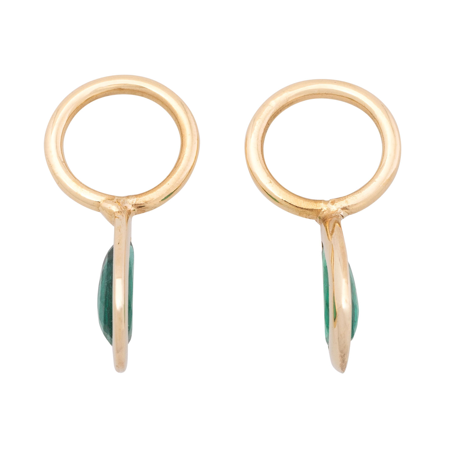 Pair of ear hangers with emeralds totalling ca. 1.2 ct for hoop earrings, 18K YG, 2.9 gr, L: ca. 2.5 cm, 20th/21st century, minor signs of wear.