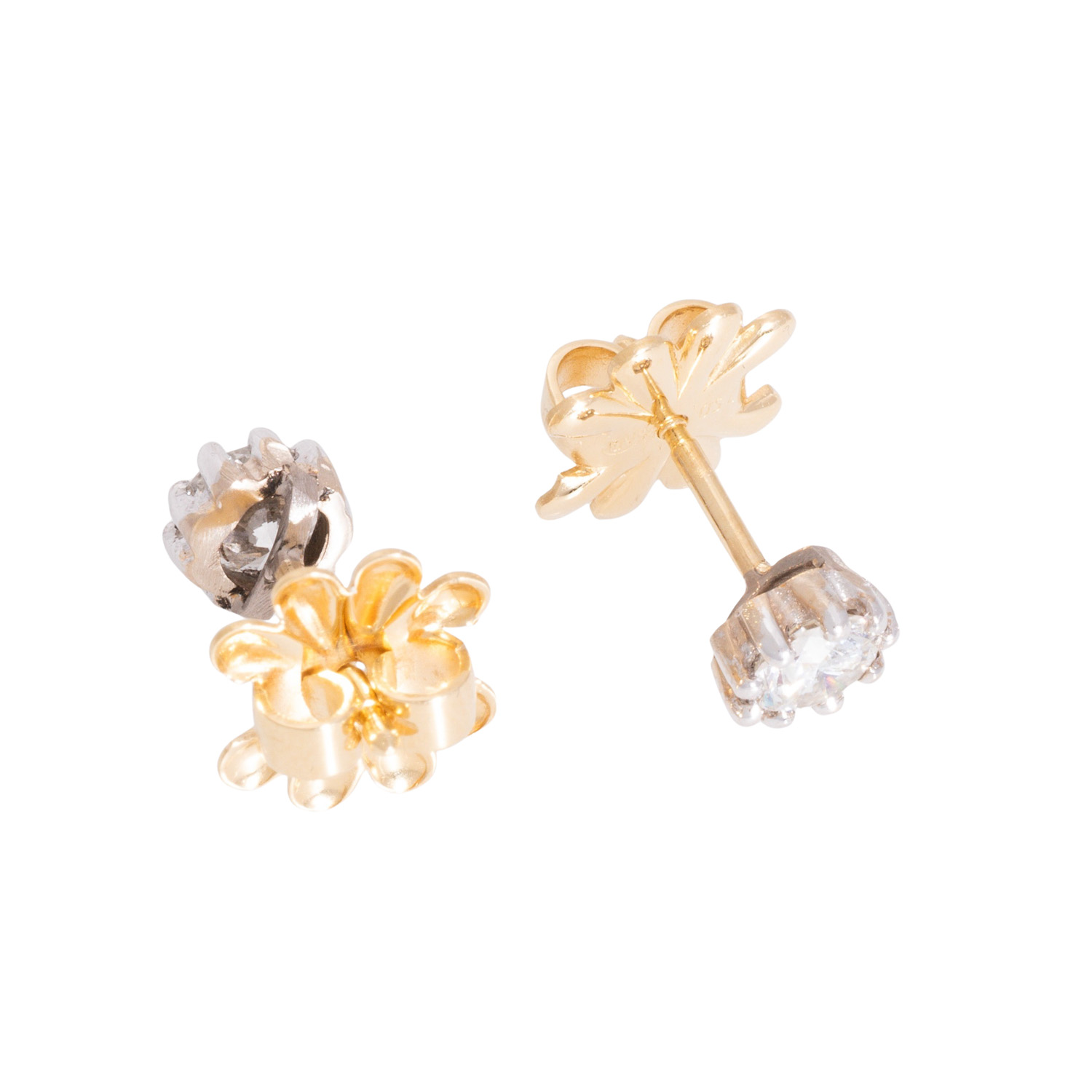 Pair of stud earrings with 2 brilliant-cut diamonds totalling ca. 0.9 ct, WHITE (H)/VS, YG/WG 18K, 2.2 g, 21st century, good condition.