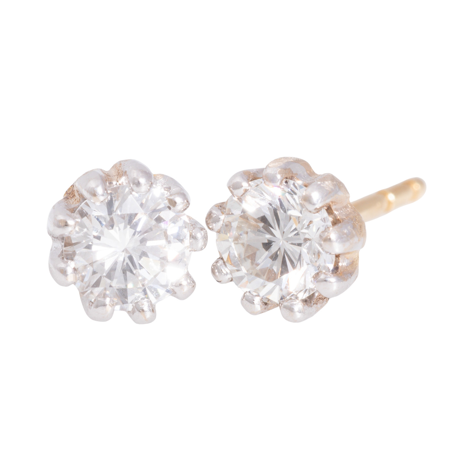 Pair of solitaire ear studs with 2 brilliant-cut diamonds totaling ca. 1.2 ct.