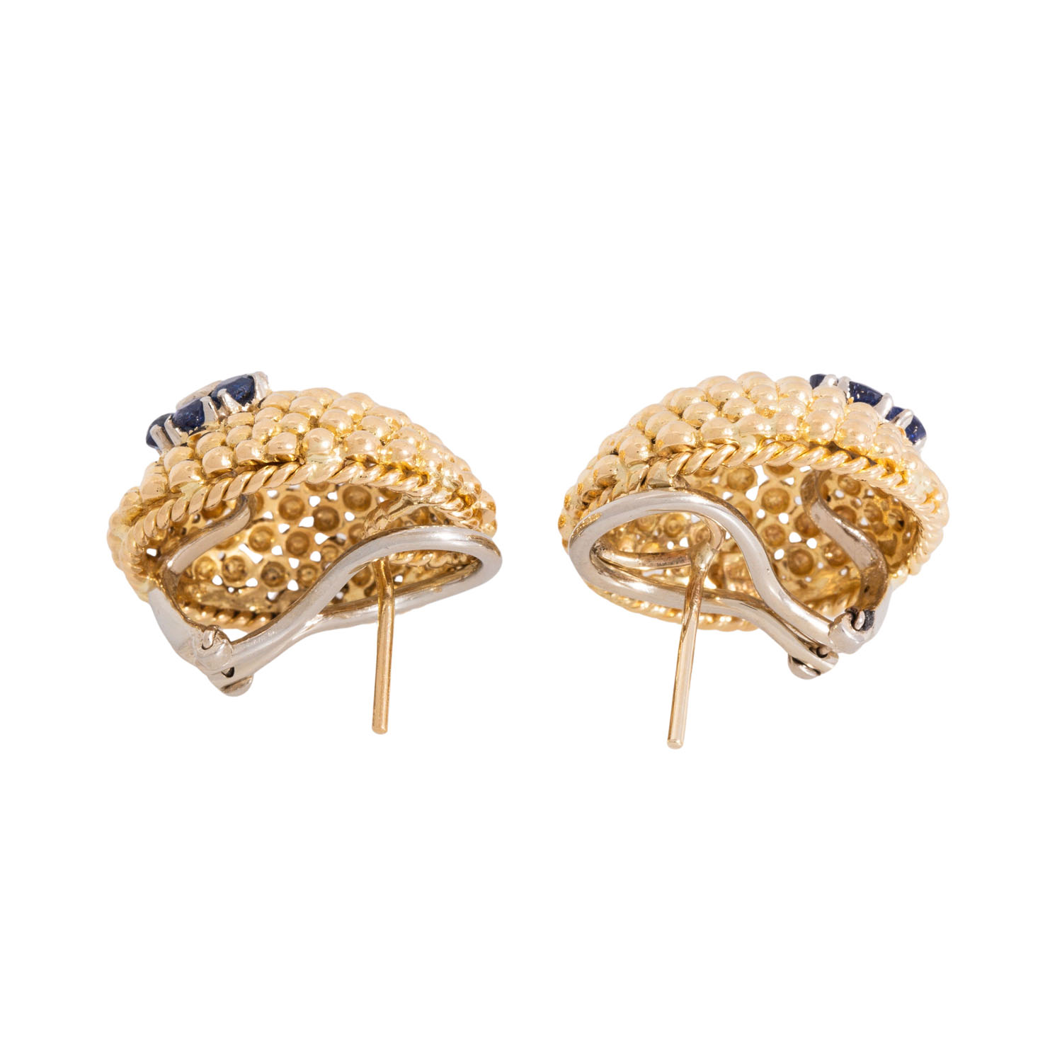 Pair of clip earrings with 2 oval sapphire cabochons,