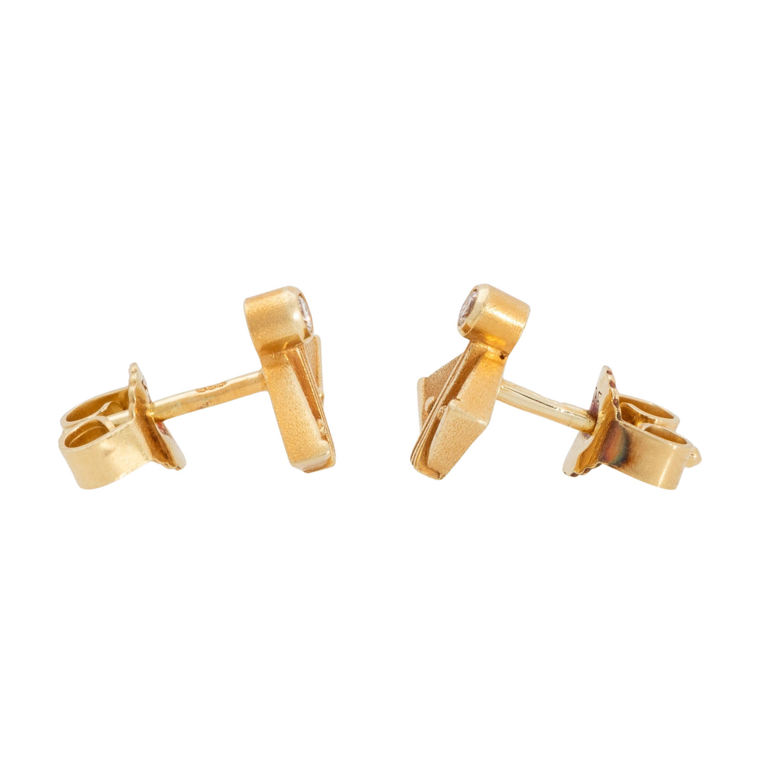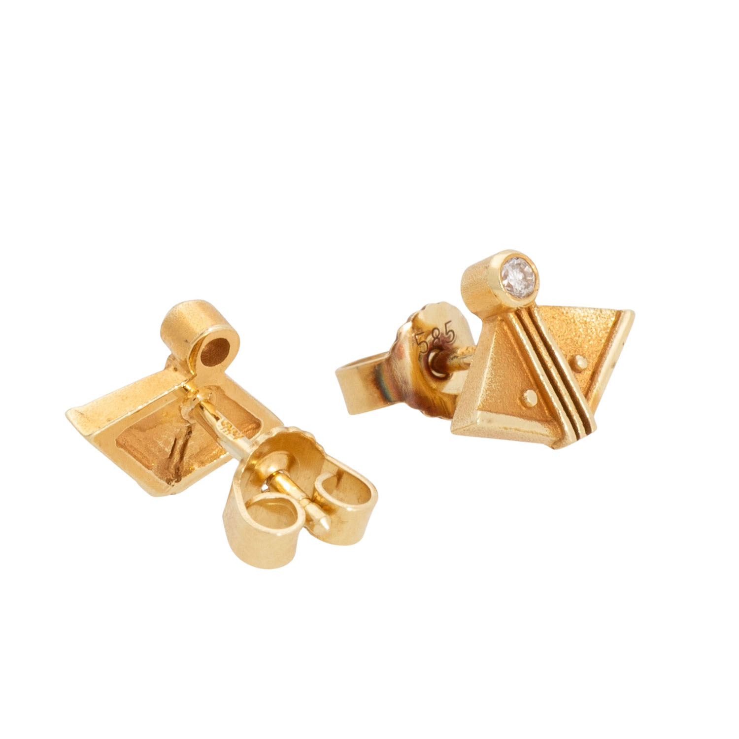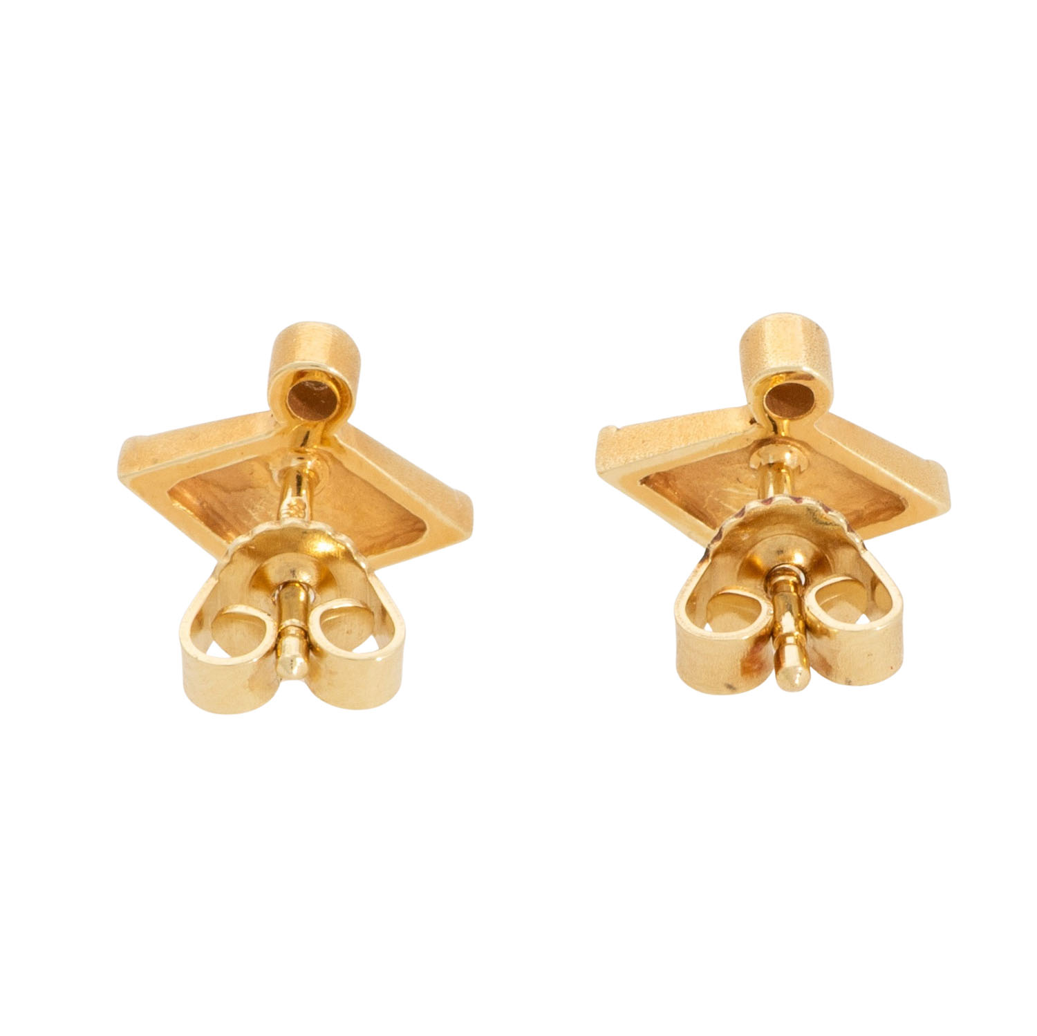 Pair of earstuds with 2 brilliant cut diamonds, totalling ap. 0.06 ct, 14K yellow gold, 2.0 g, L x W: 10 x 8.5 mm, late 20th century, minimal signs of wear.