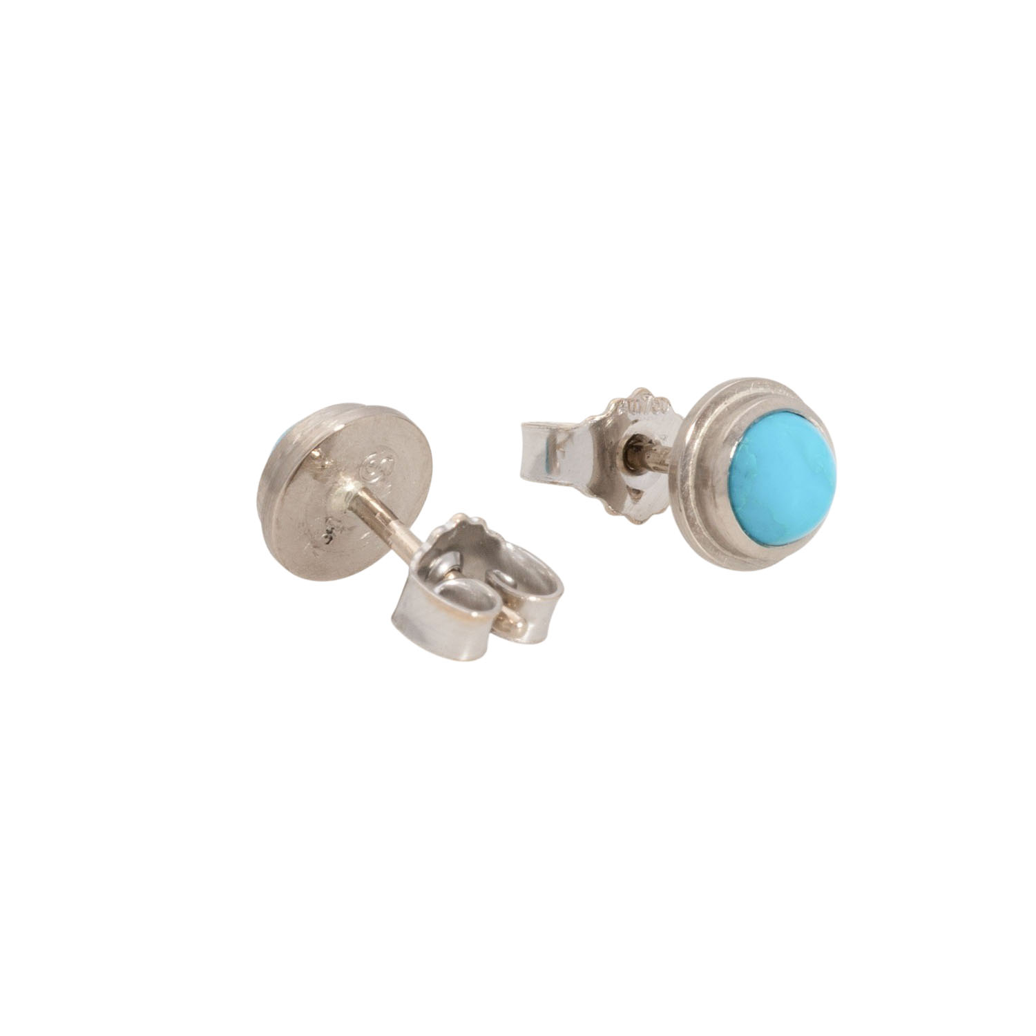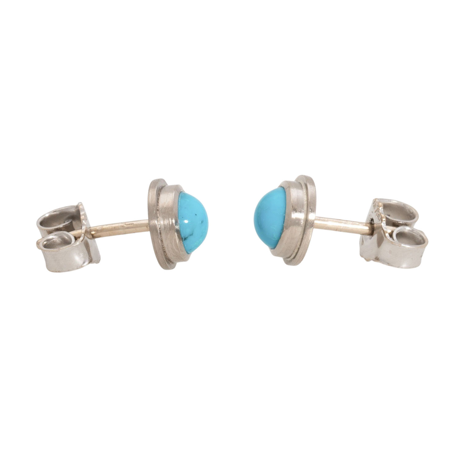 Pair of earstuds with 2 tourquoise cabochons, round, ap. 4.8 mm, 18K white gold, 2.2 g, D: 7 mm, late 20th century, minor signs of wear.